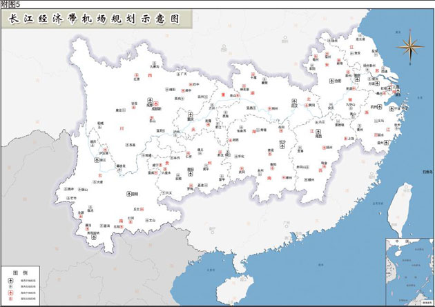 ——建成发达的航空网络。形成以上海国际航空枢纽和重庆、成都、昆明、贵阳、长沙、武汉、南京、杭州等区域航空枢纽为核心的民用航空网。