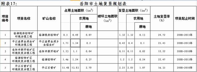 岳阳市矿山环境恢复治理重点工程规划一览表