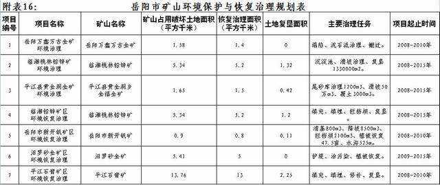 | 附表16 | 岳阳市矿山环境保护与恢复治理规划表 |