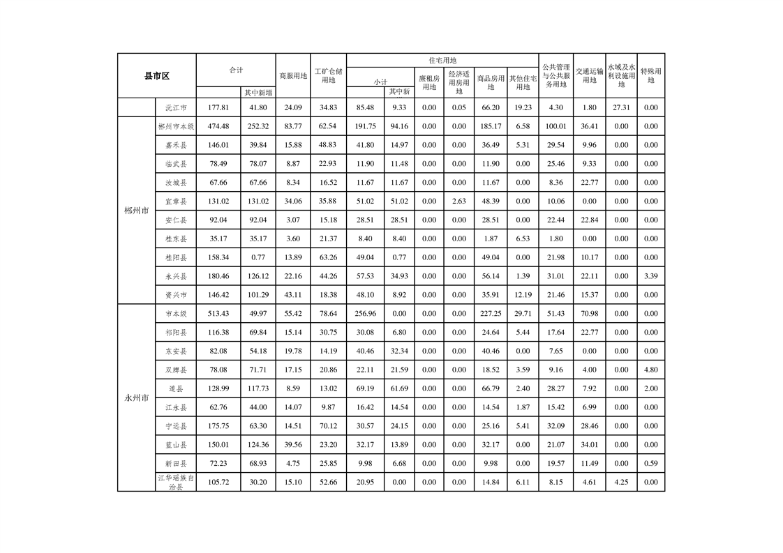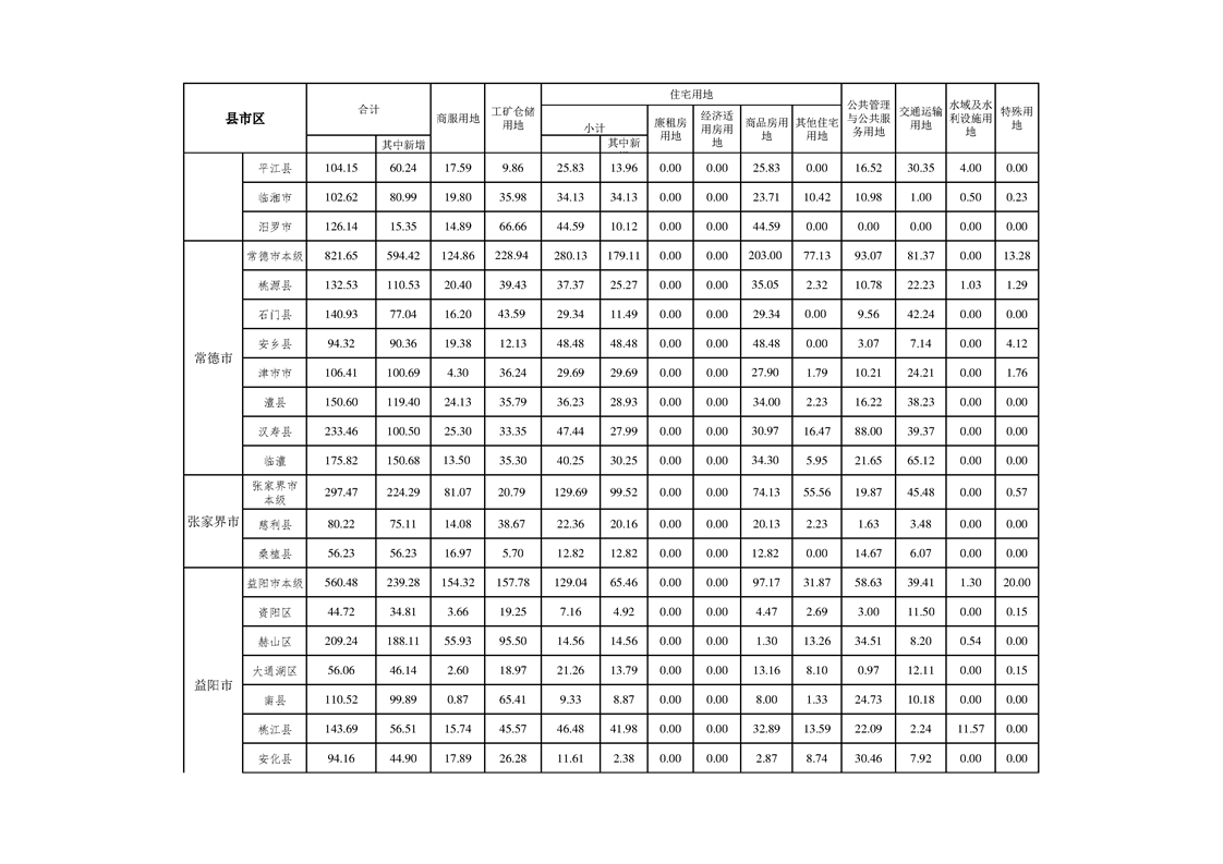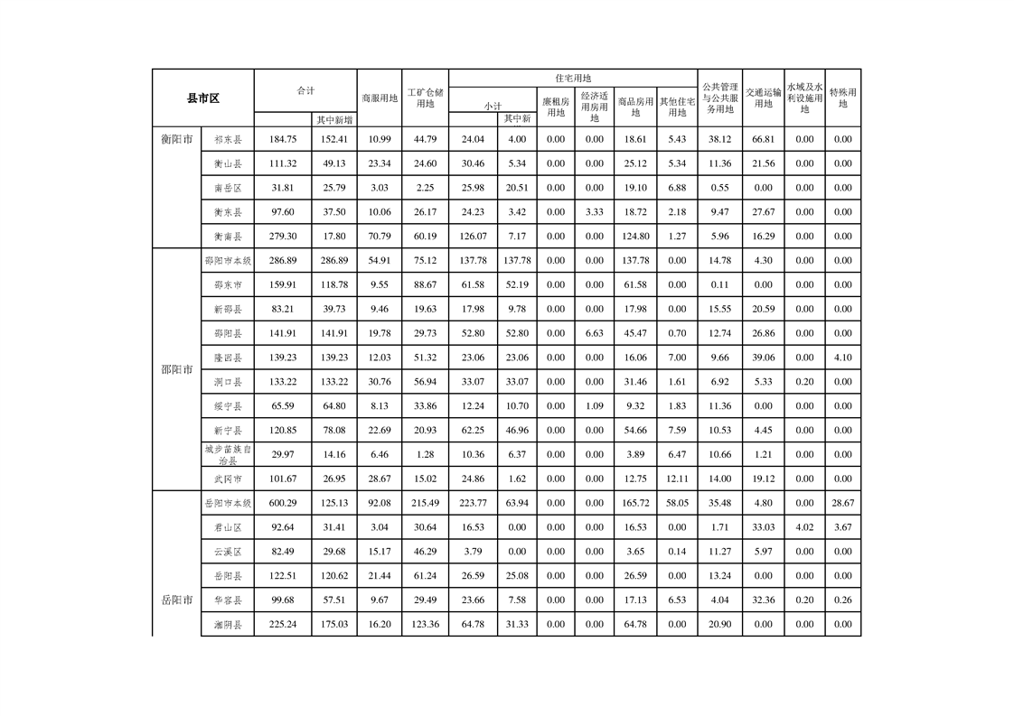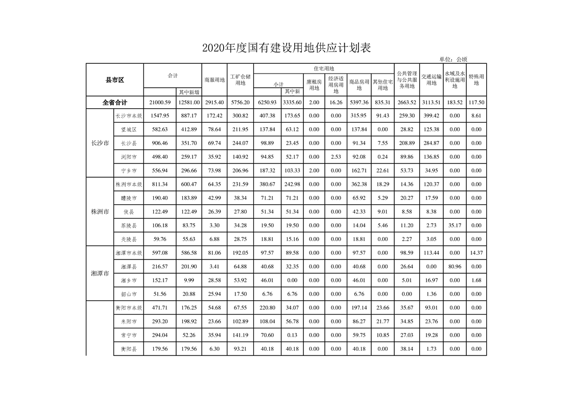 湖南省2020年度国有建设用地供应计划表