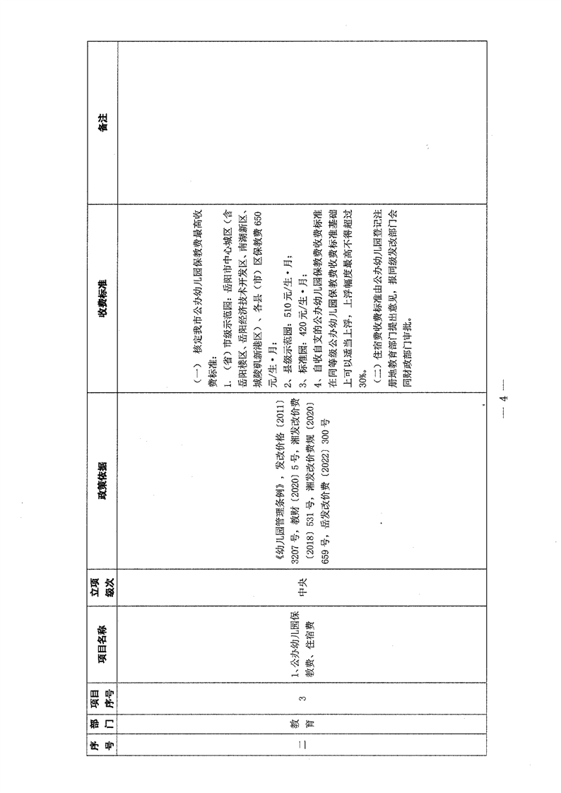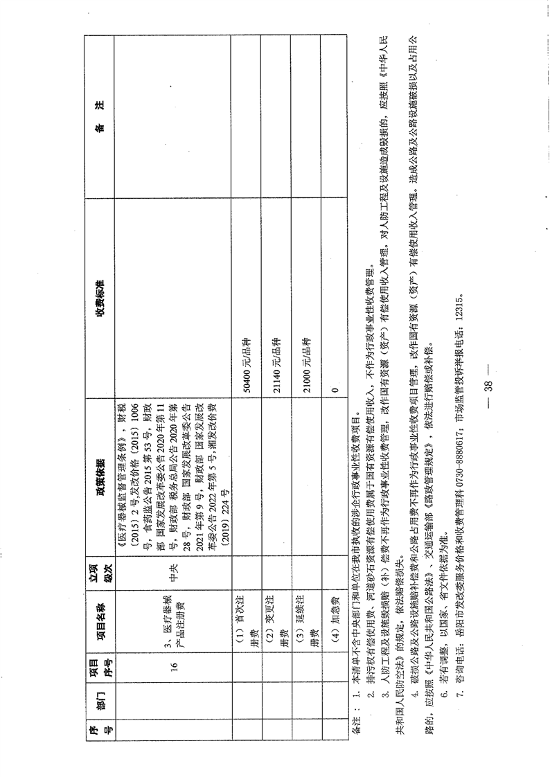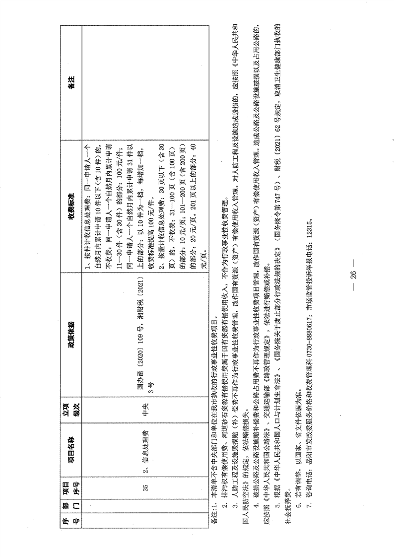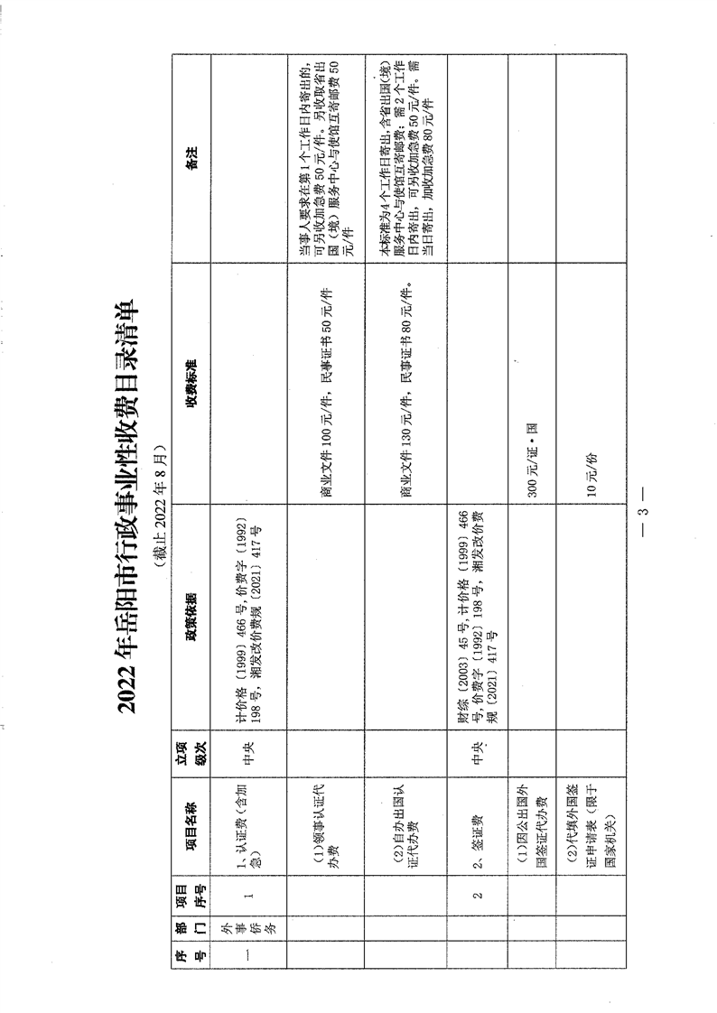 2022年岳阳市行政事业性收费和涉企行政事业性收费目录清单
