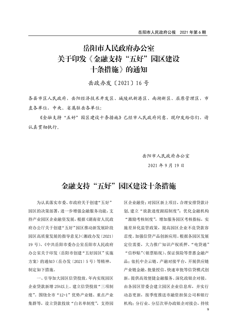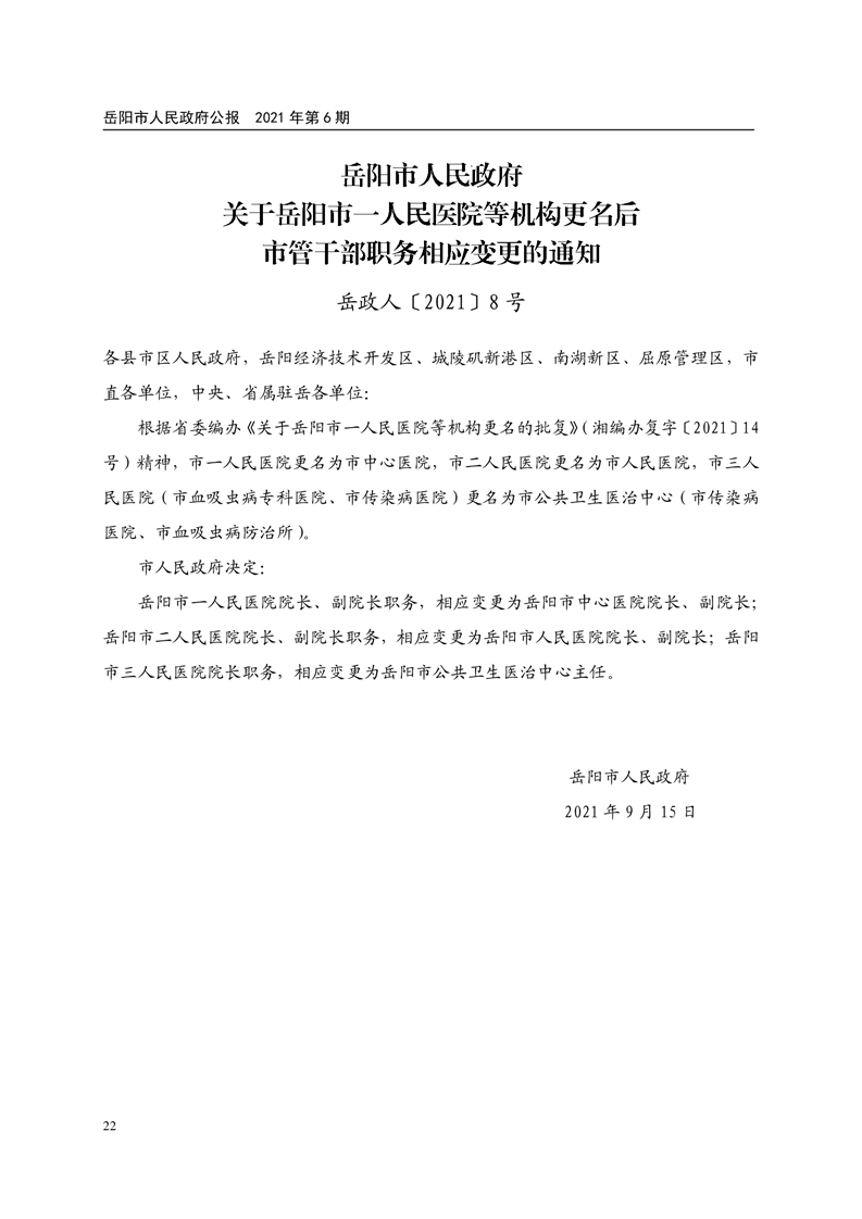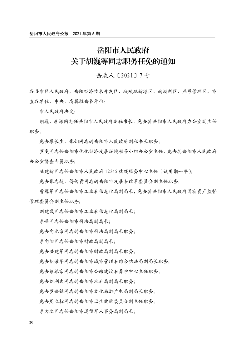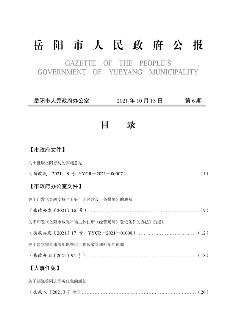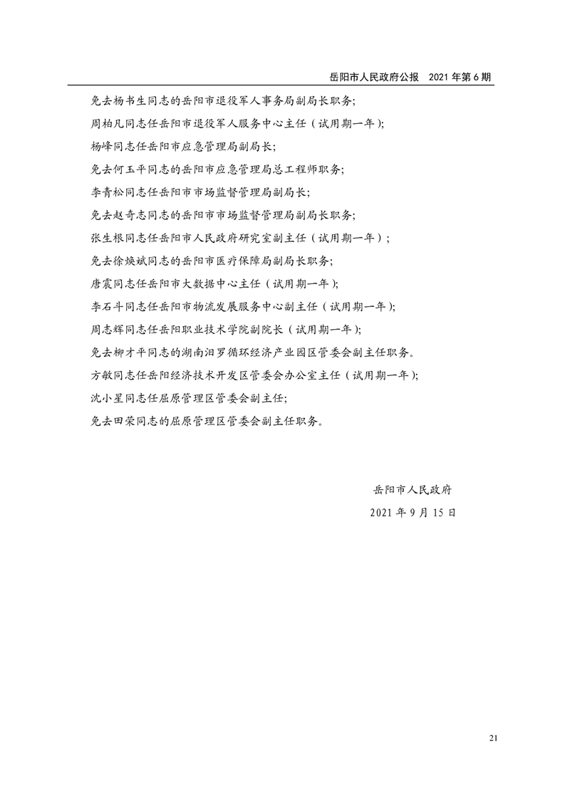 岳阳市人民政府公报2021年第六期