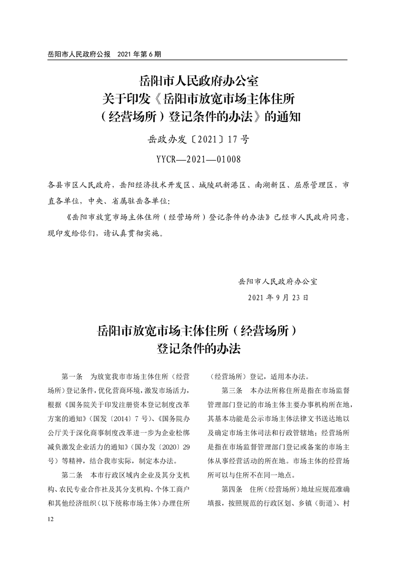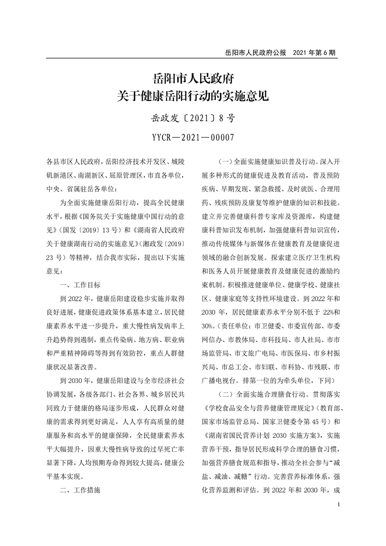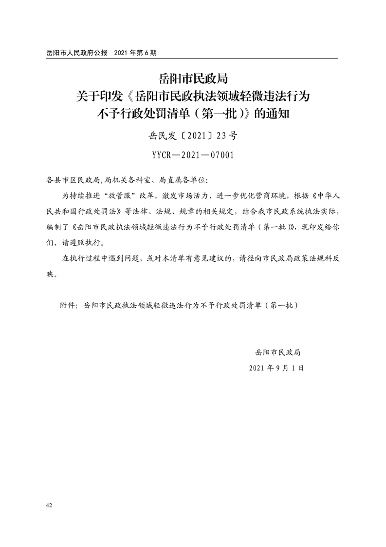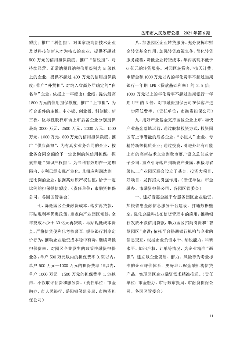 岳阳市人民政府公报2021年第六期