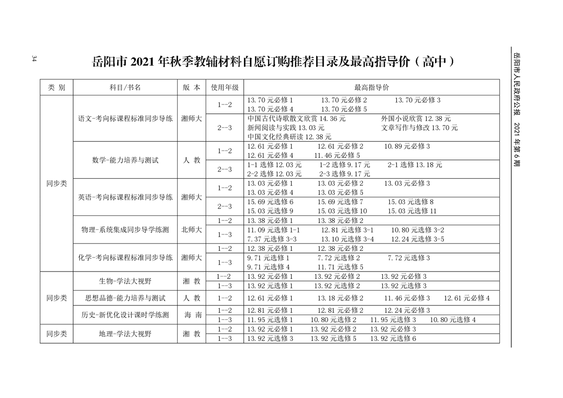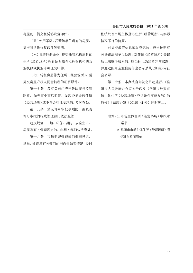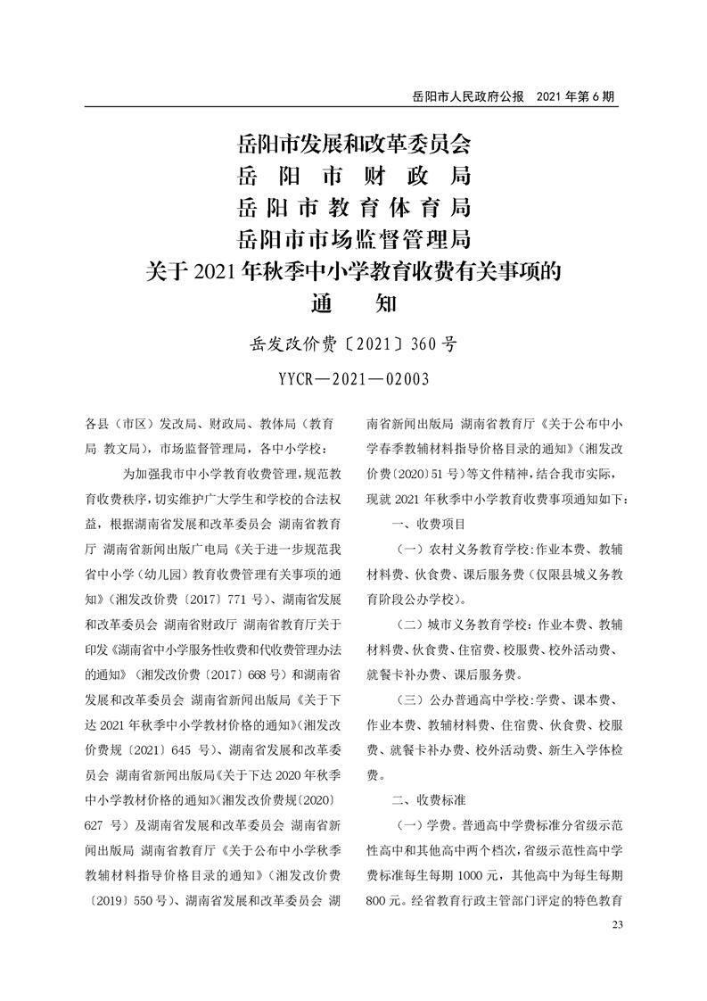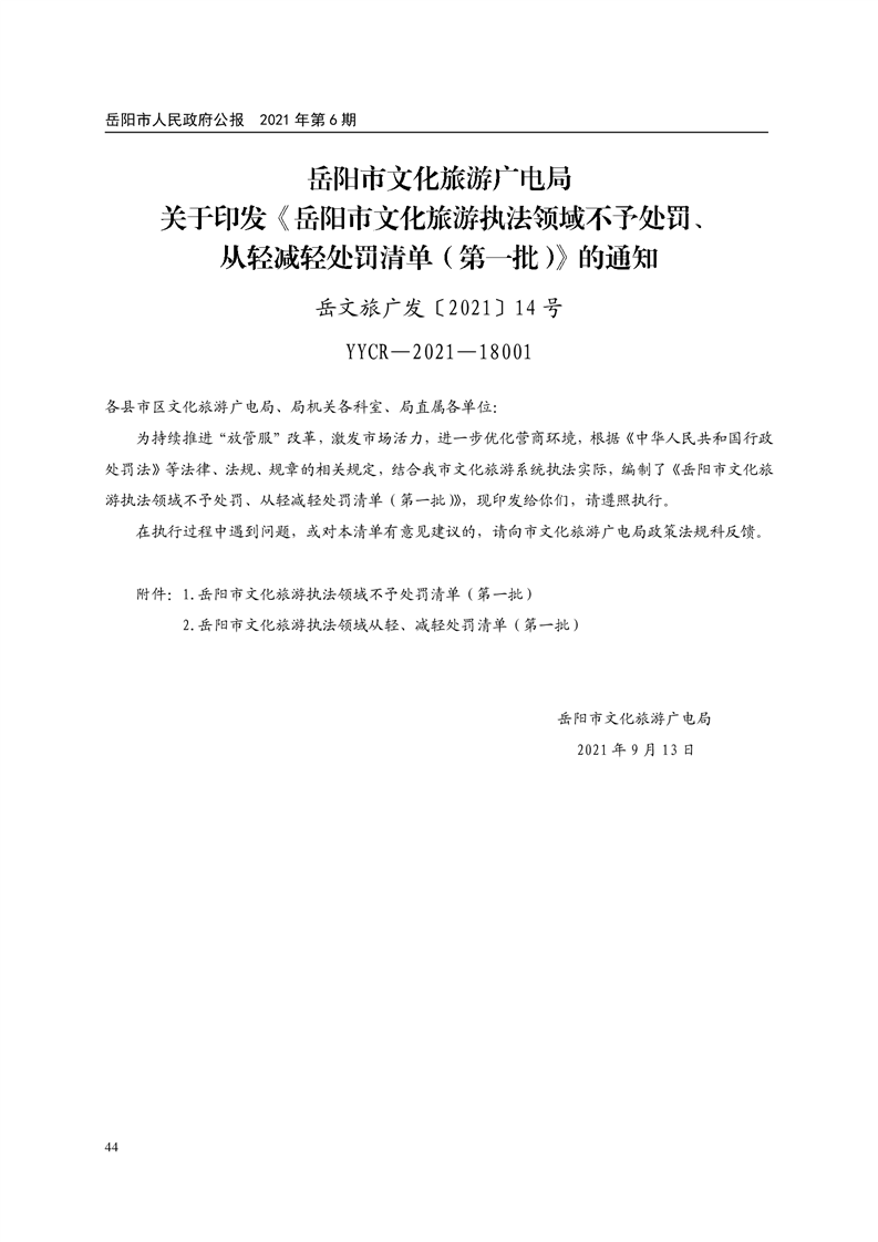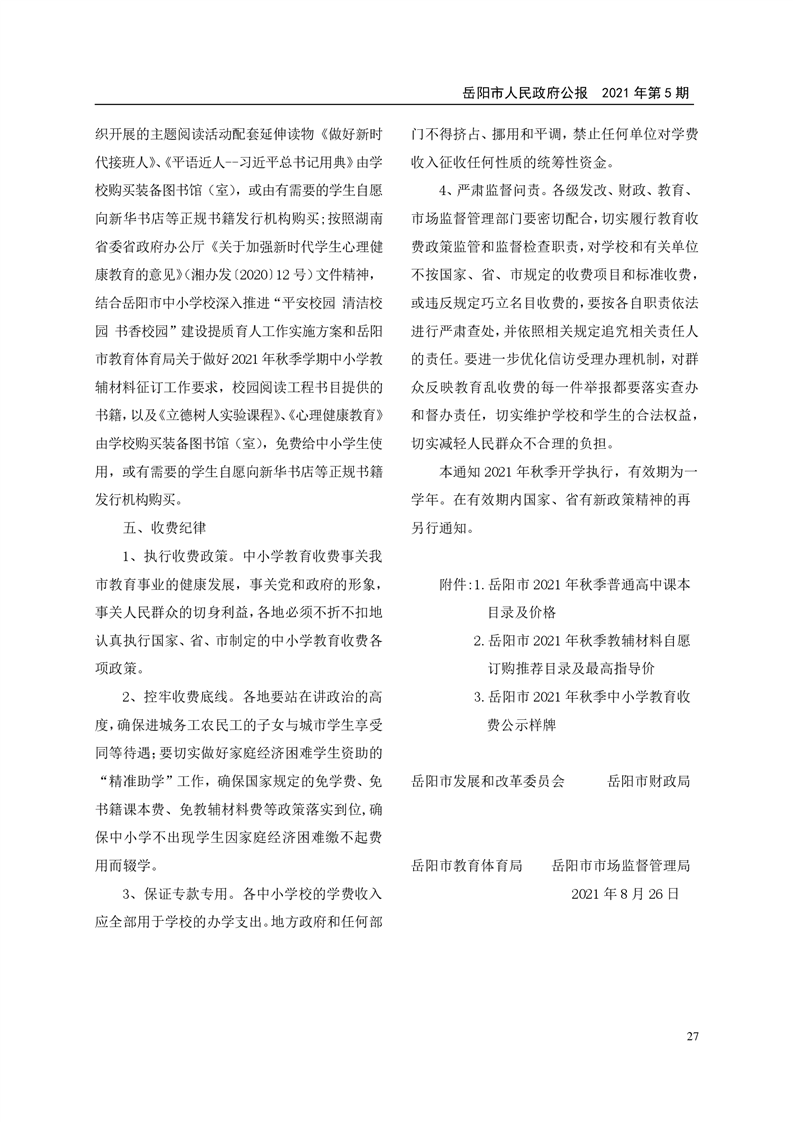 岳阳市人民政府公报2021年第六期