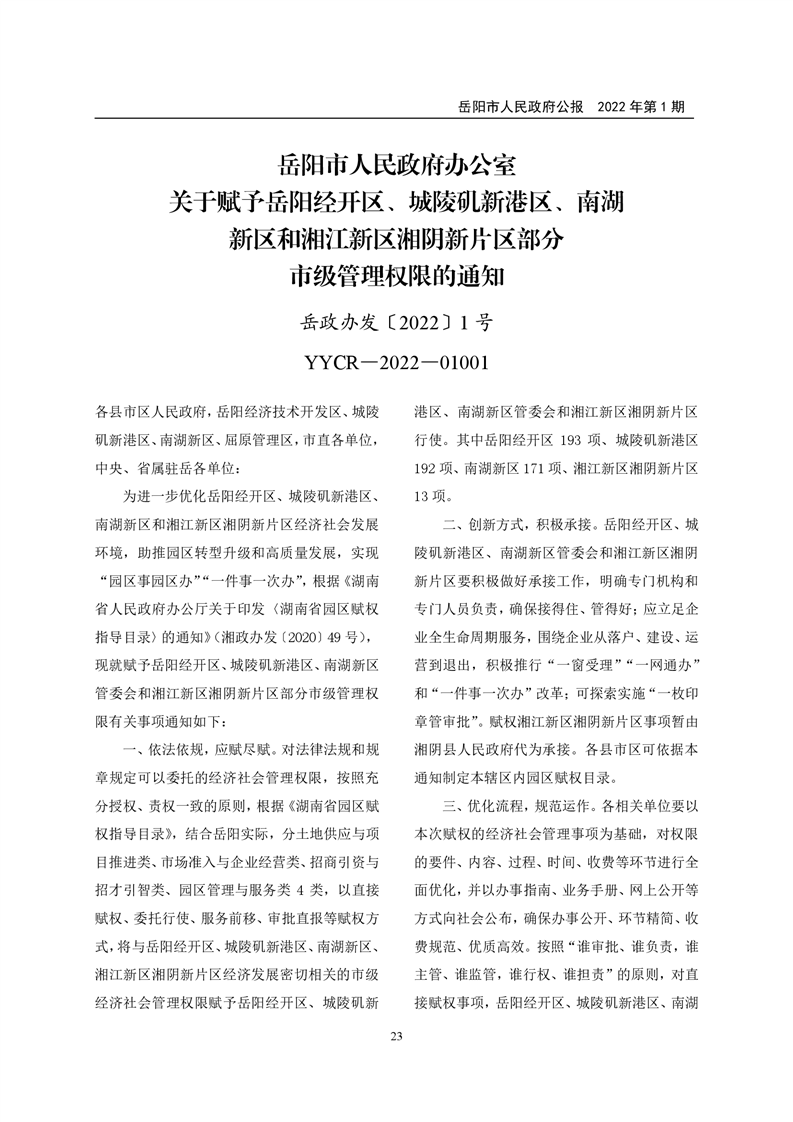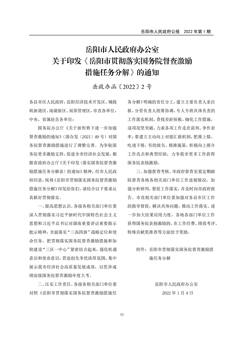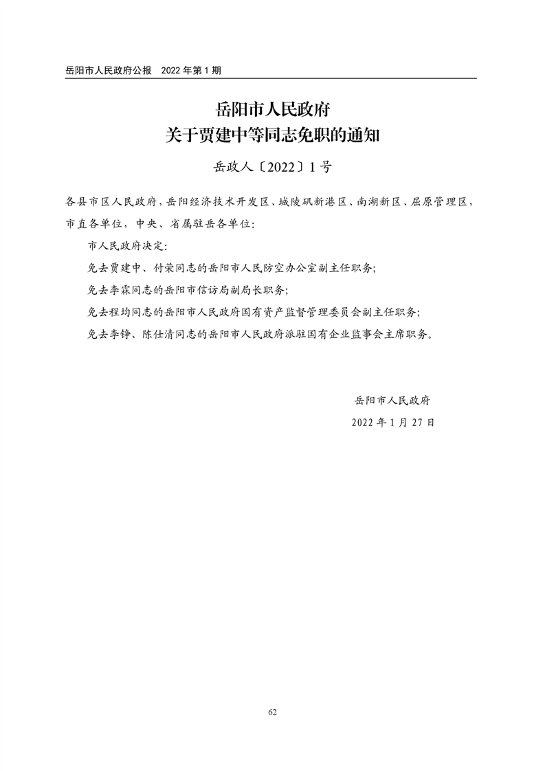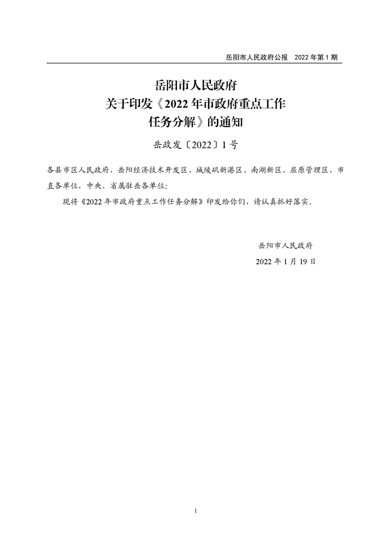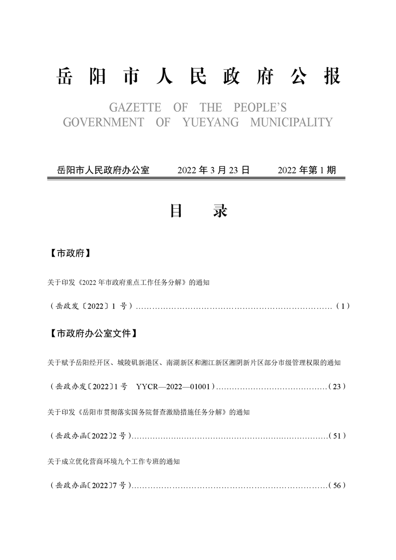 岳阳市人民政府公报2022年第1期
