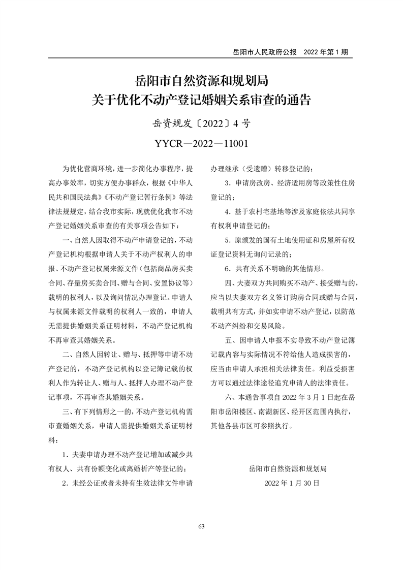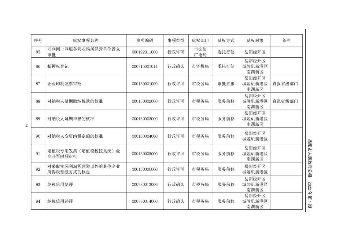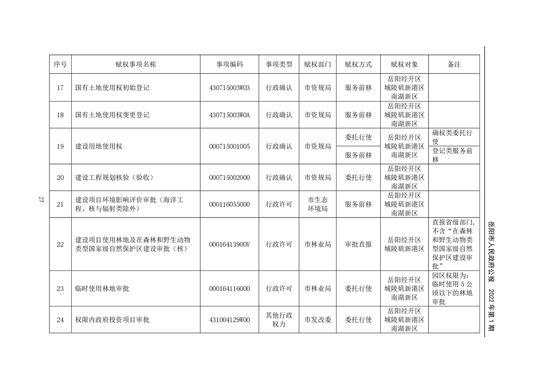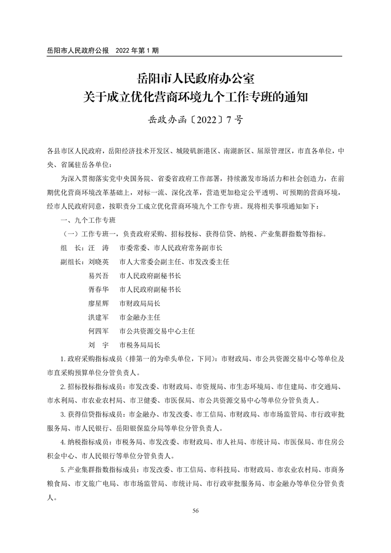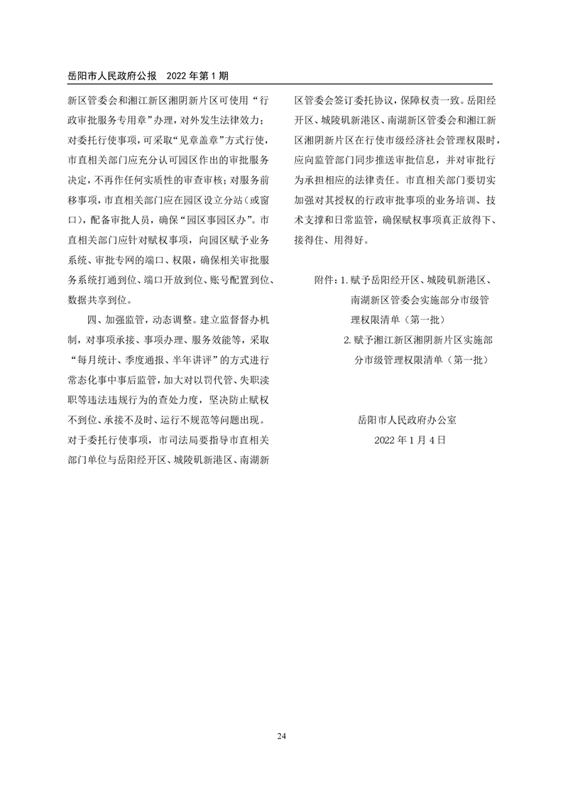 岳阳市人民政府公报2022年第1期