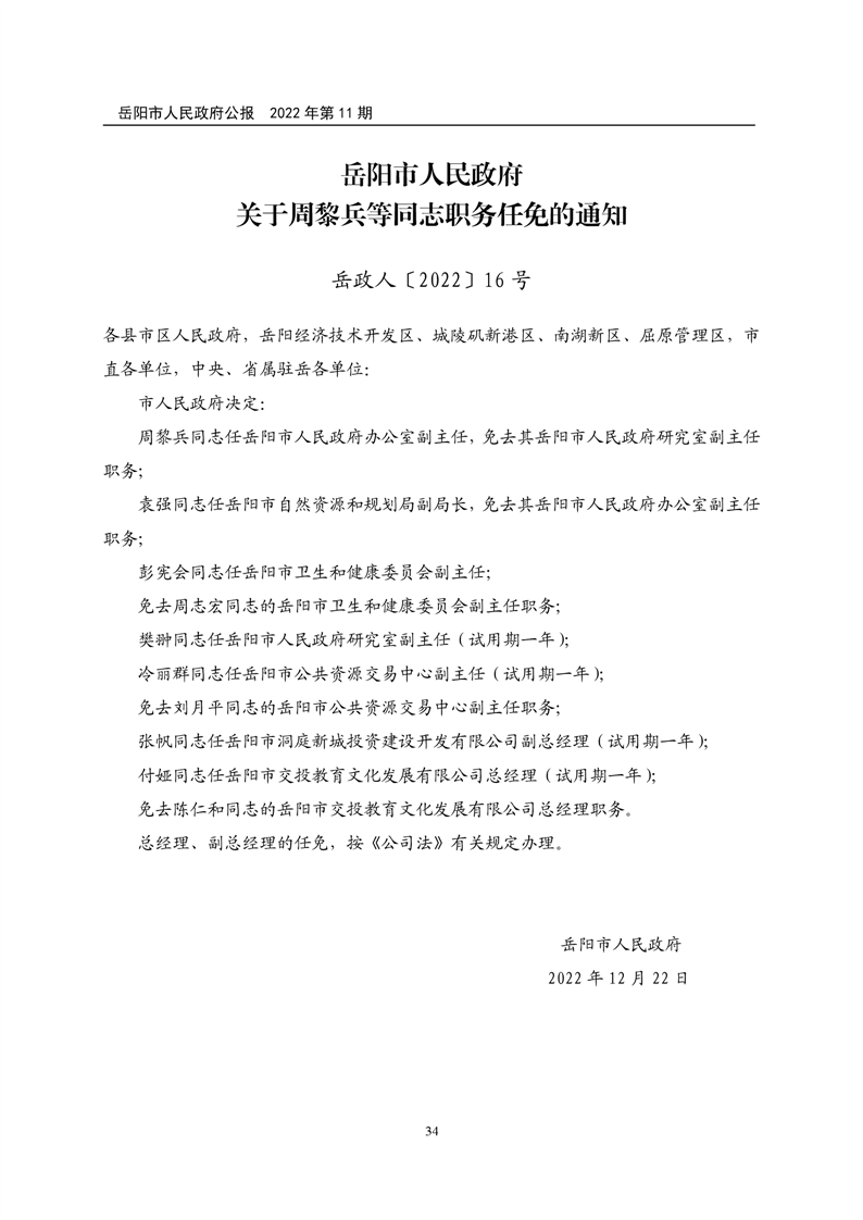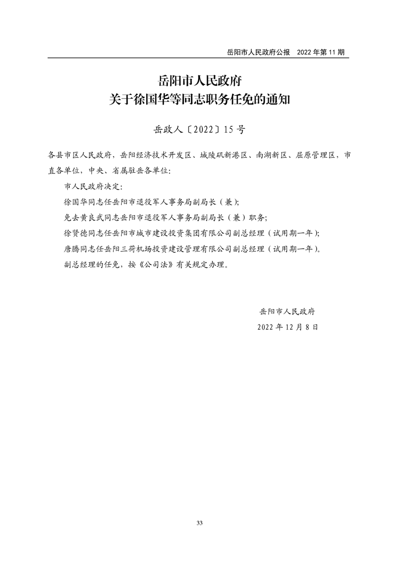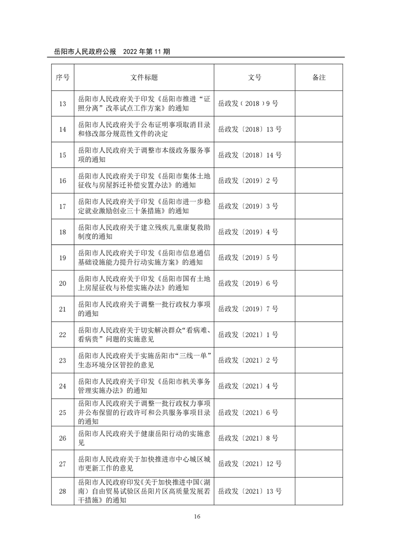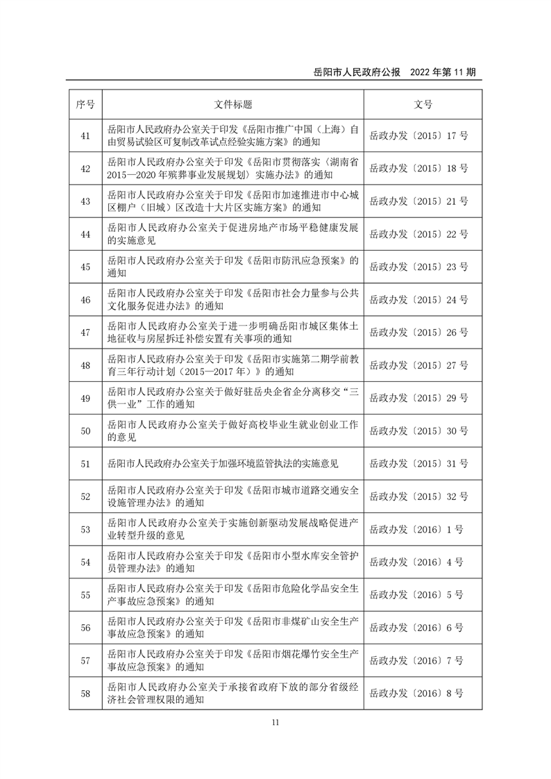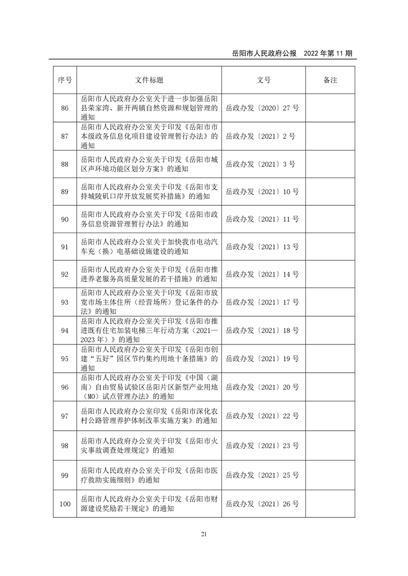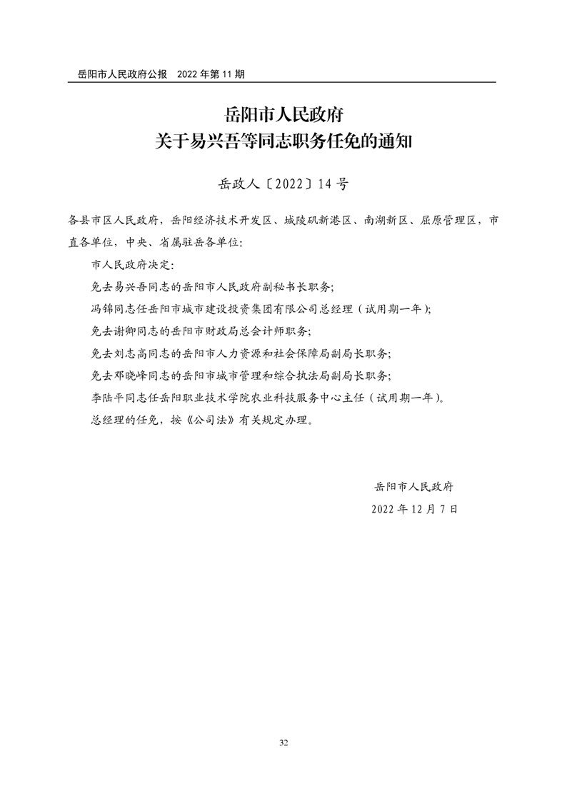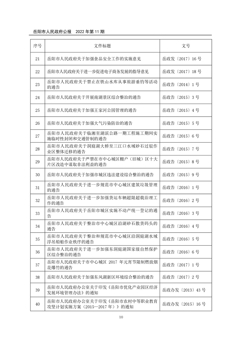 岳阳市人民政府公报2022年第11期