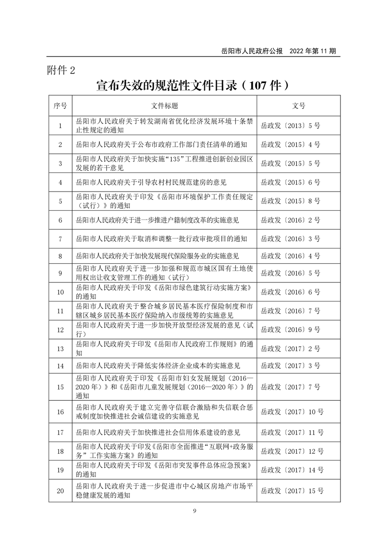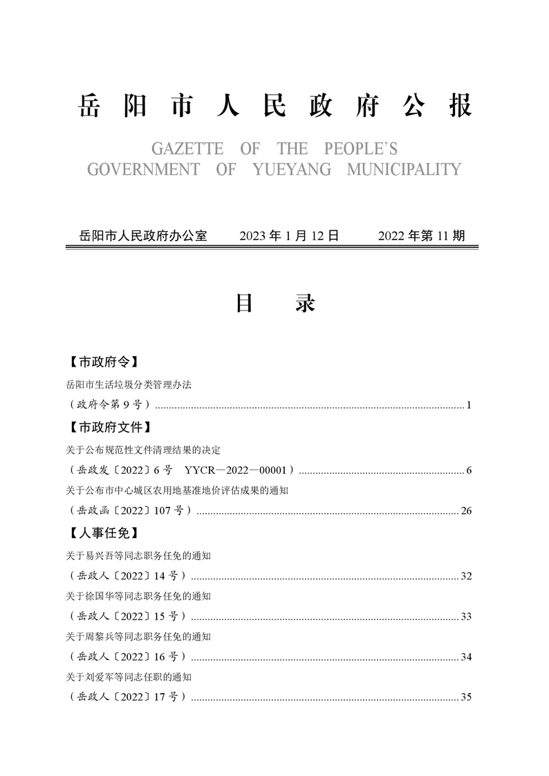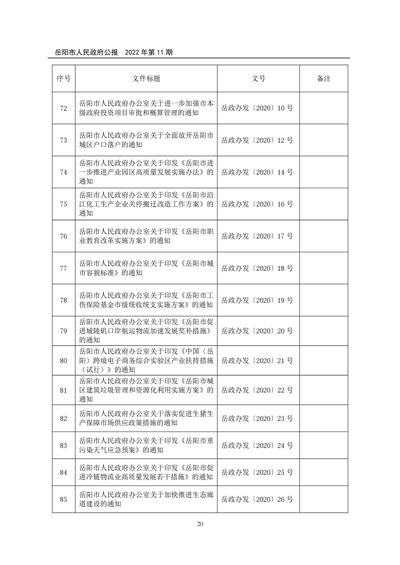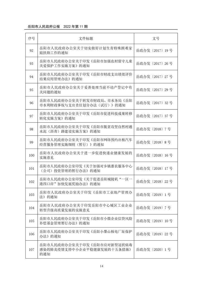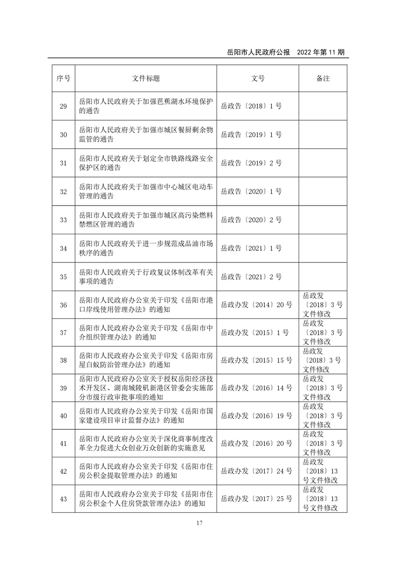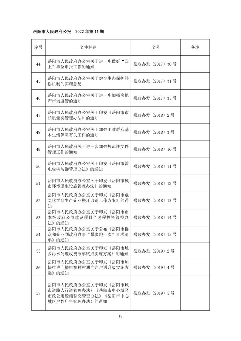 岳阳市人民政府公报2022年第11期