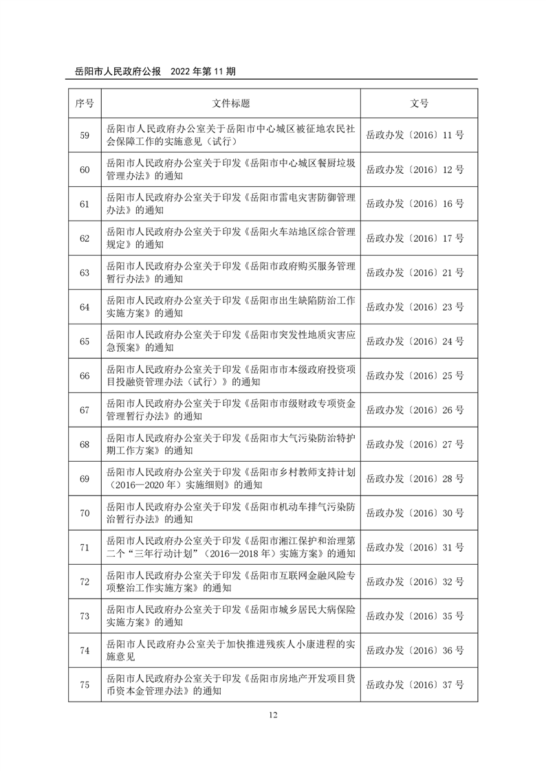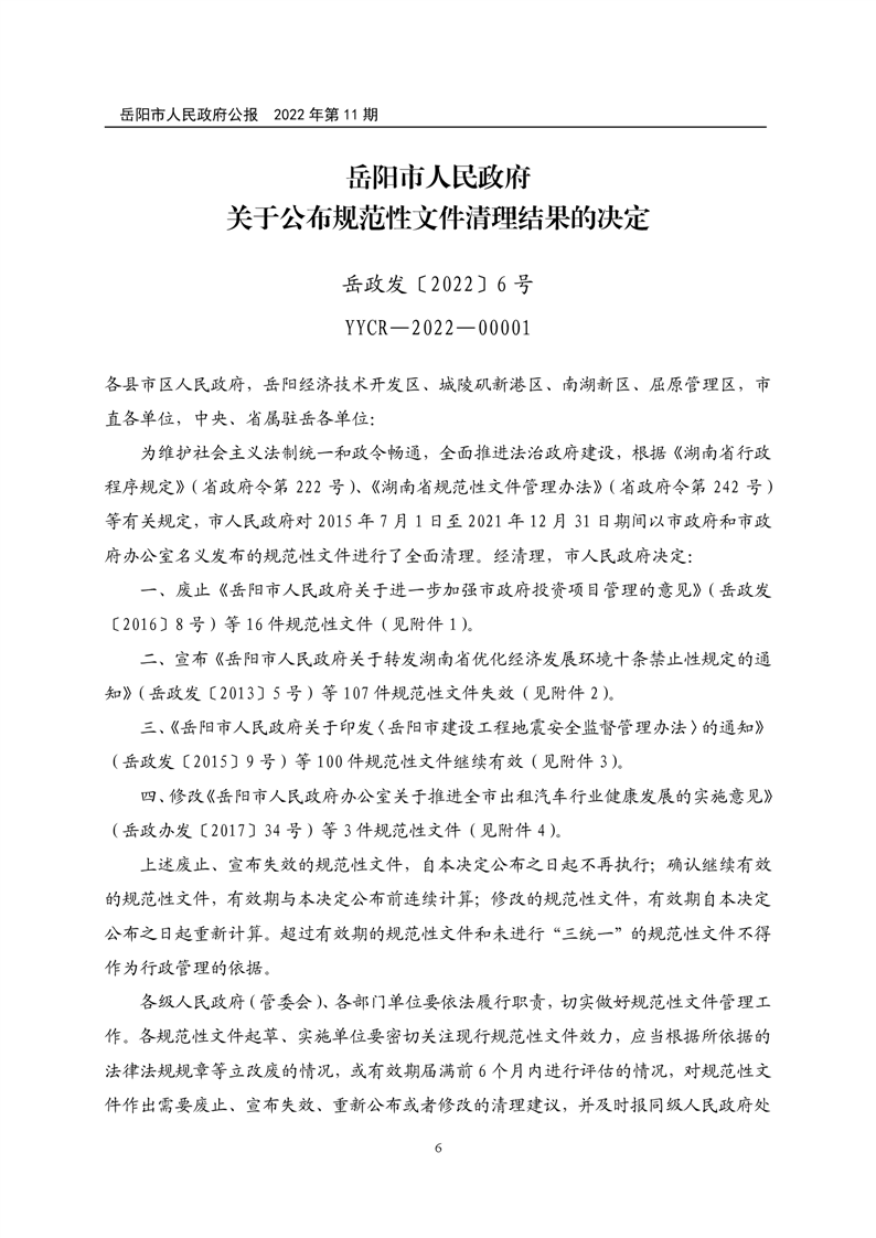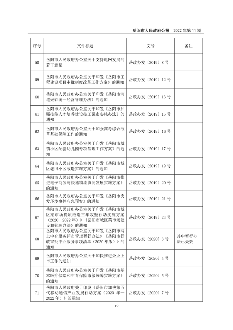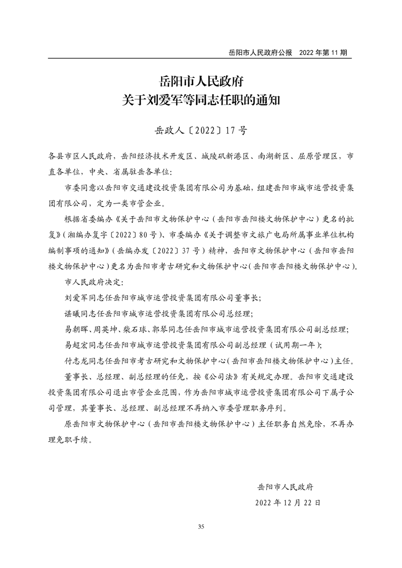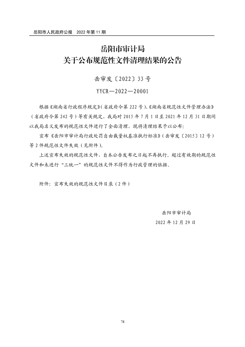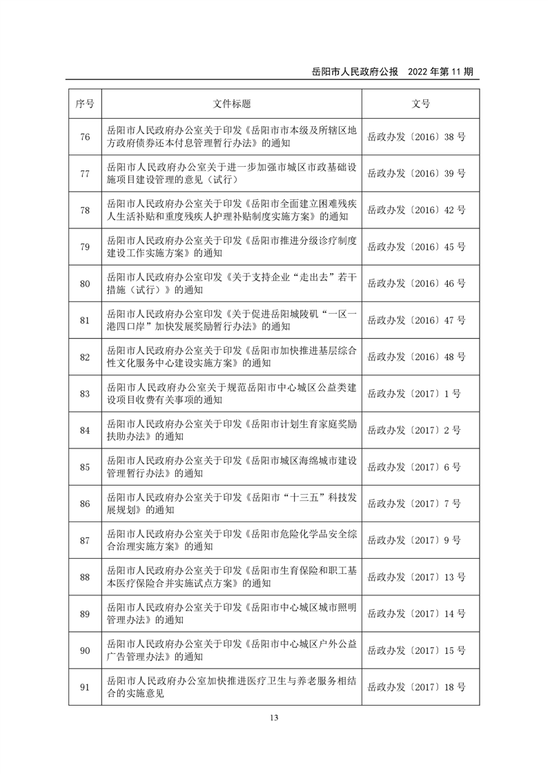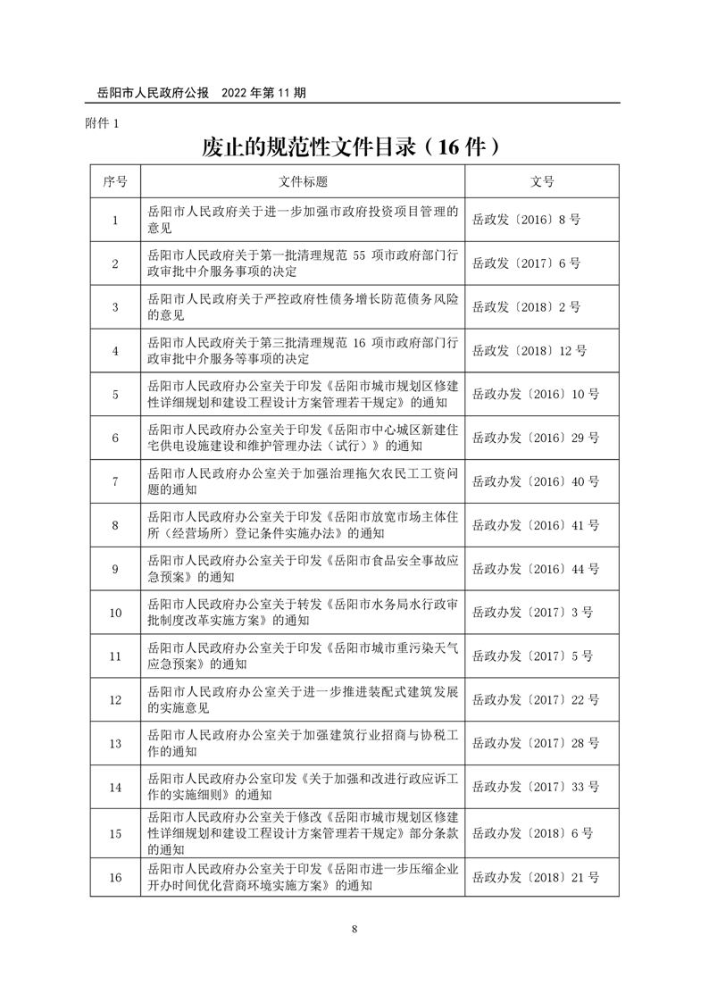 岳阳市人民政府公报2022年第11期