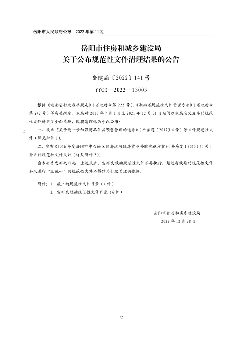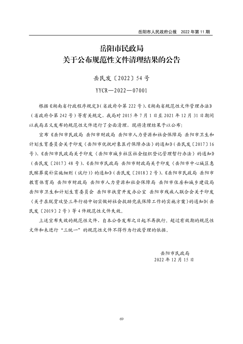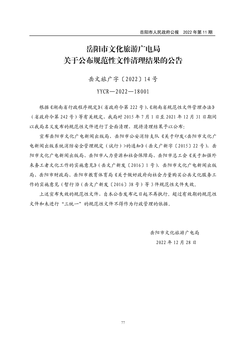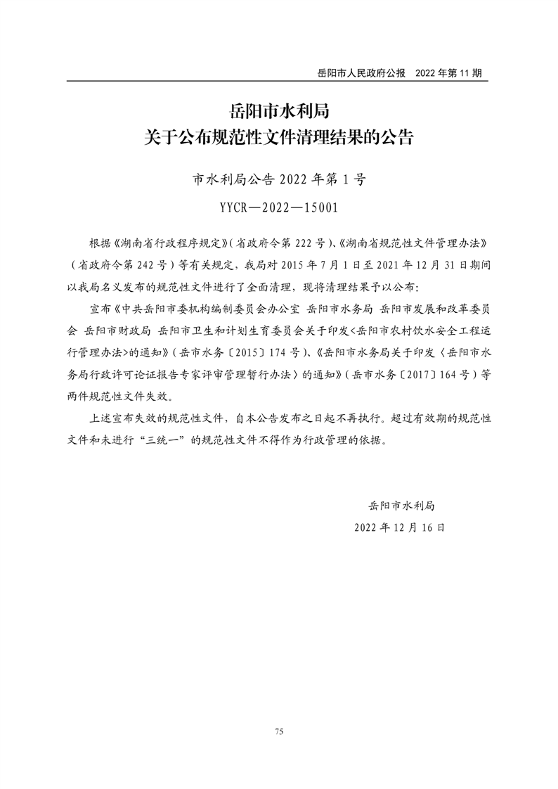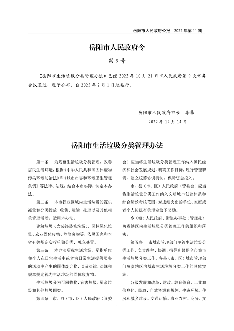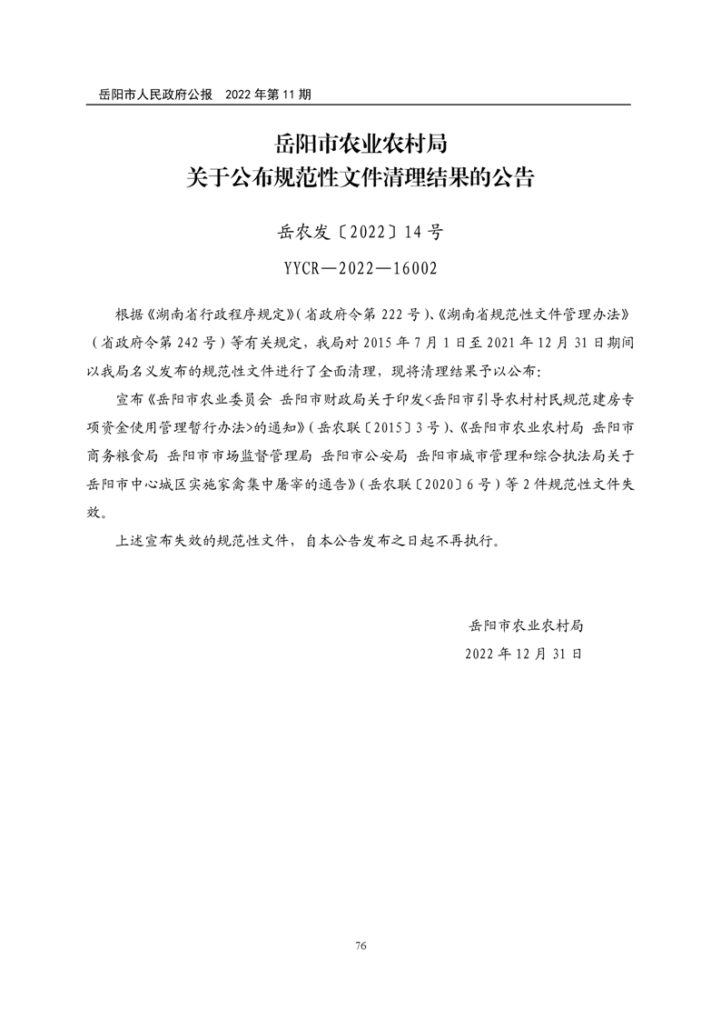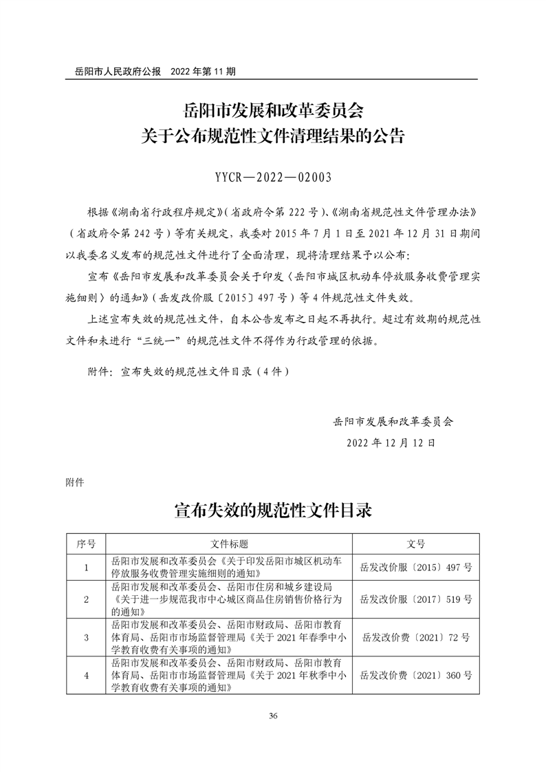 岳阳市人民政府公报2022年第11期