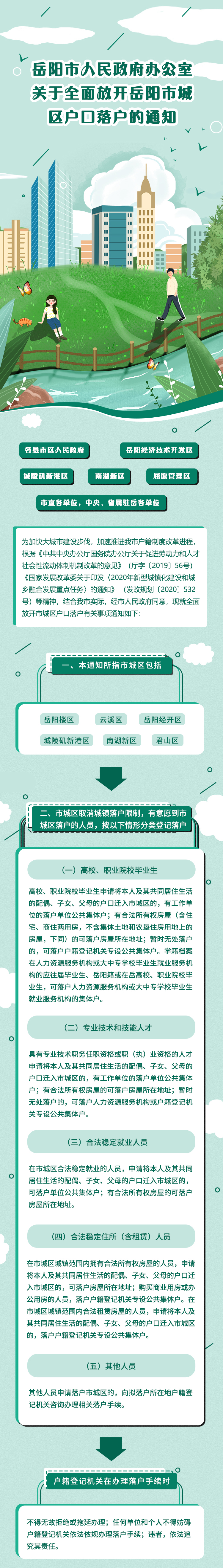 岳阳市人民政府办公室关于全面放开岳阳市城区户口落户的通知(岳政办发〔2020〕12号)