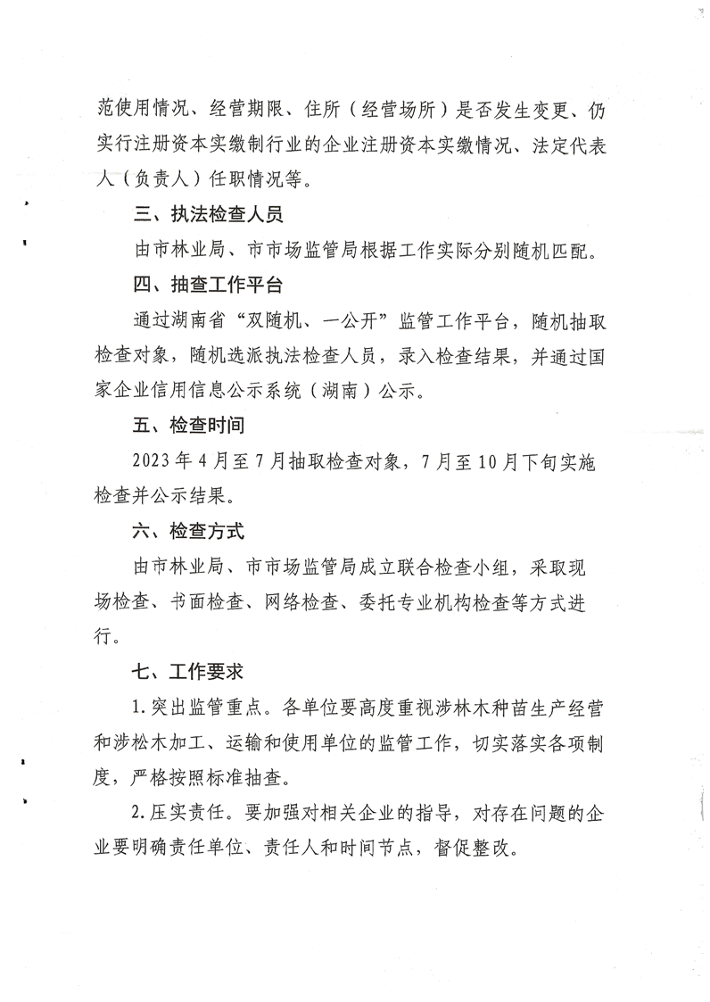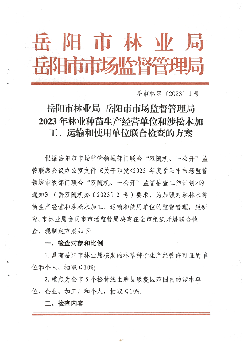 市林业局 市市场监督管理局2023年林业种苗生产经营单位和涉松木加工、运输和使用单位联合检查的方案