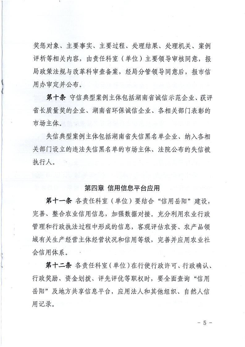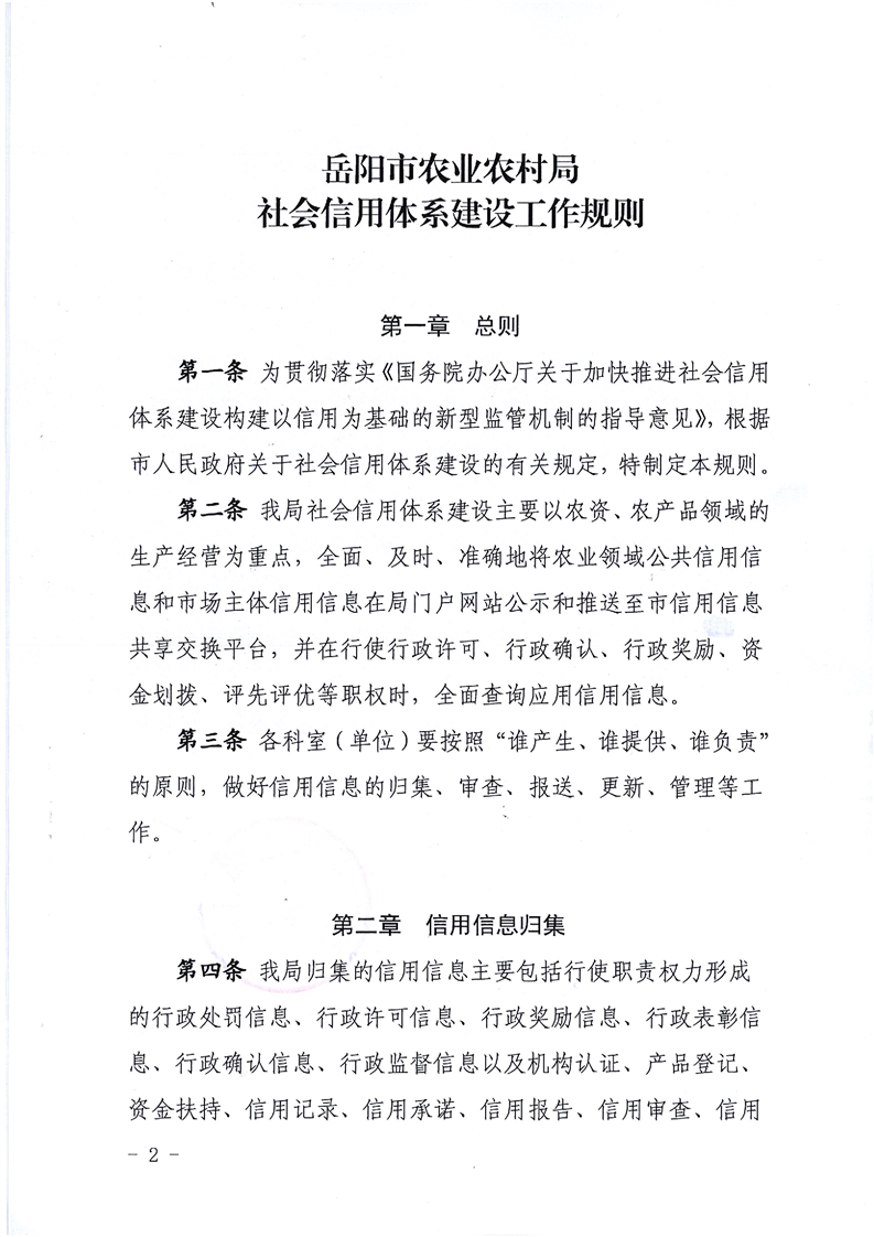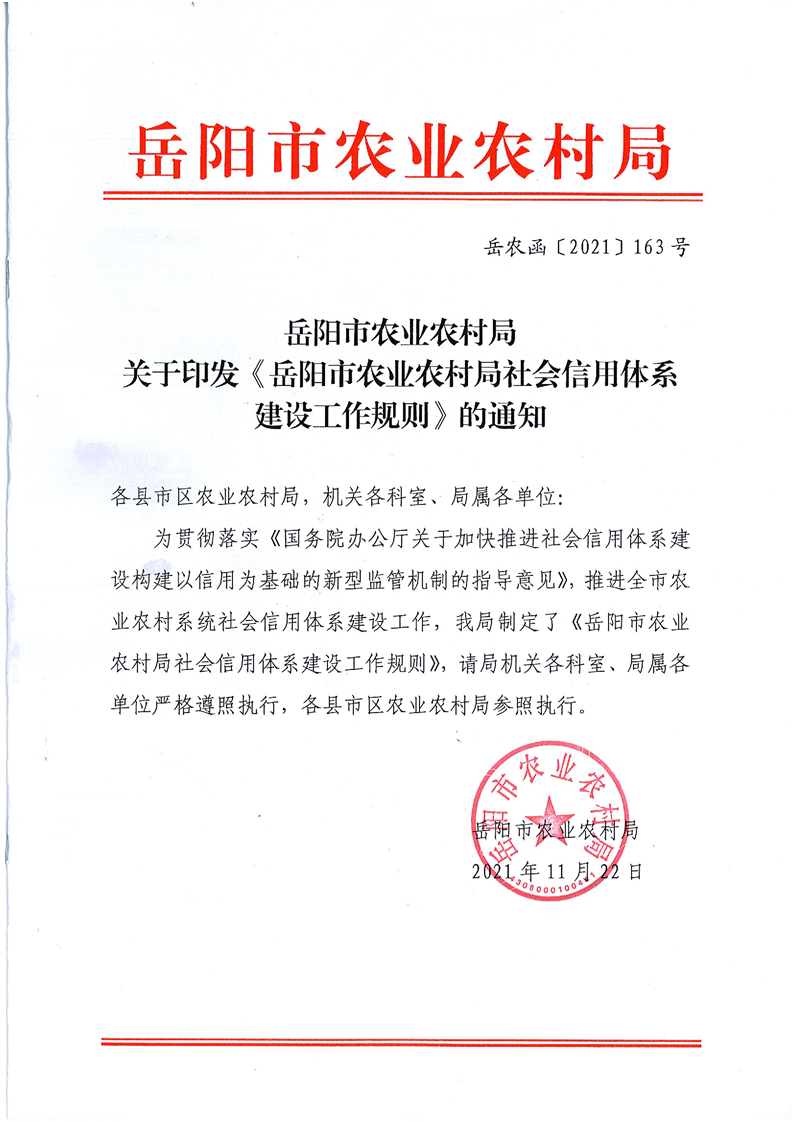 岳阳市农业农村局关于印发《岳阳市农业农村局社会信用体系建设工作规则》的通知