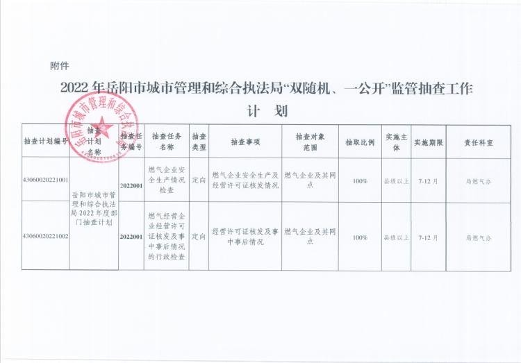 2022年岳阳市城市管理和综合执法局“双随机、一公开”监管抽查工作计划