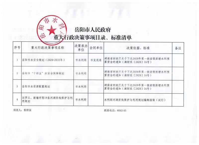 岳阳市人民政府重大行政决策事项目录、标准清单