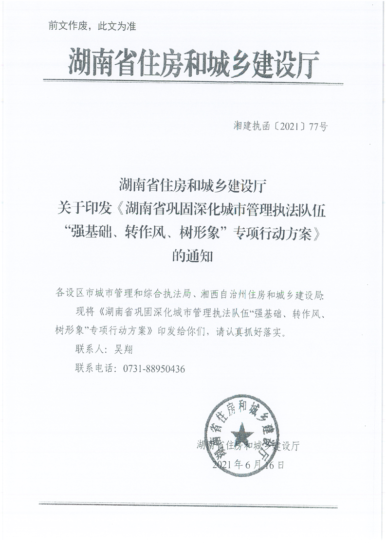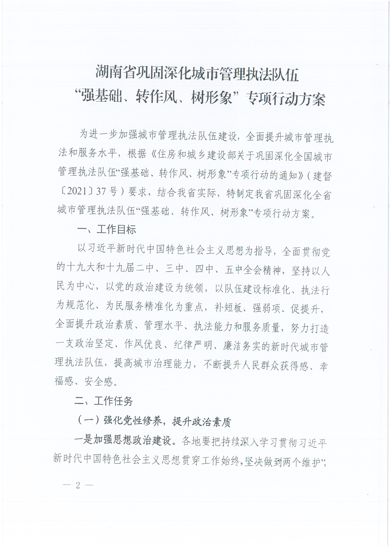 关于印发《湖南省巩固深化城市管理执法队伍“强基础、转作风、树形象”专项行动方案》的通知