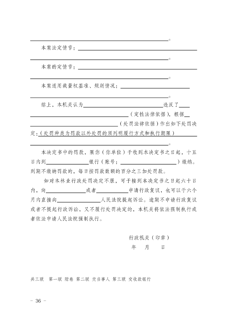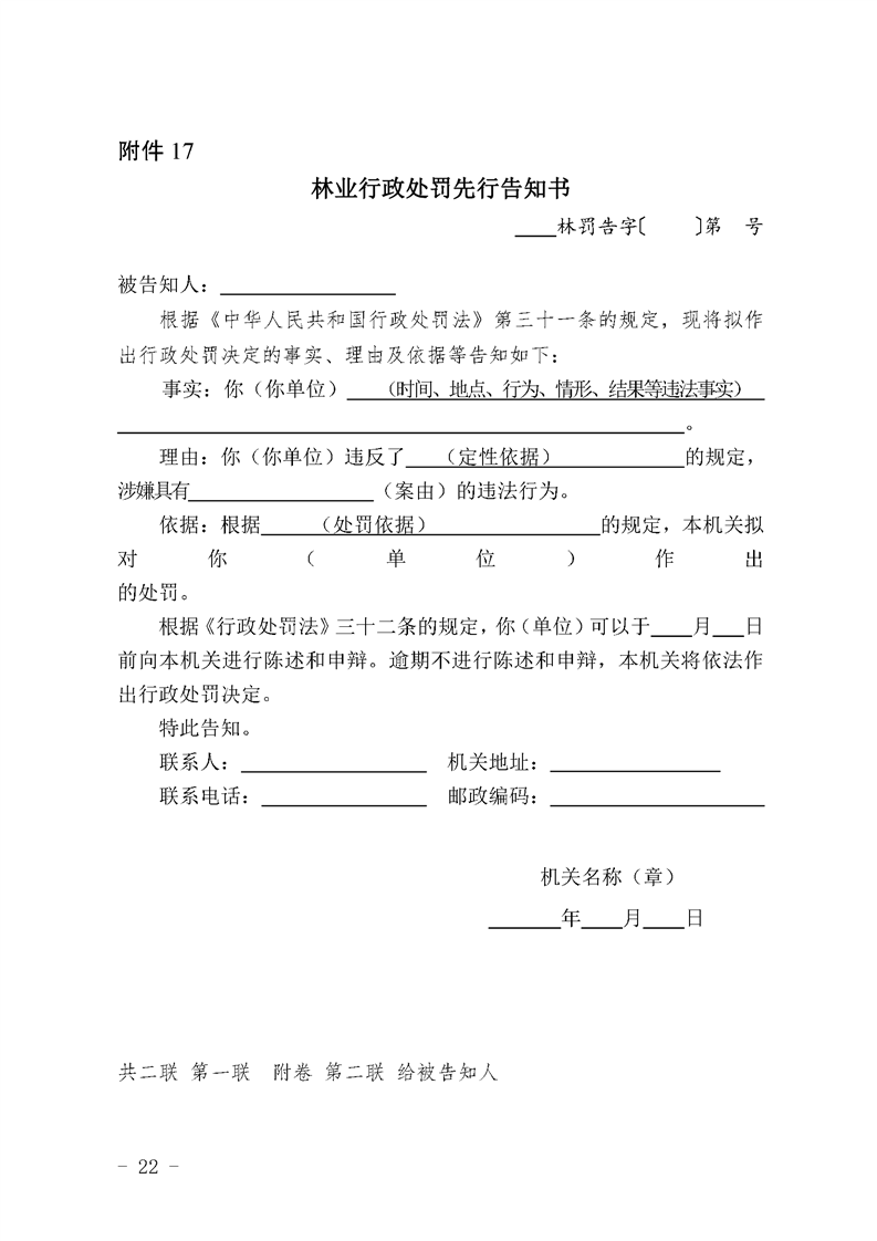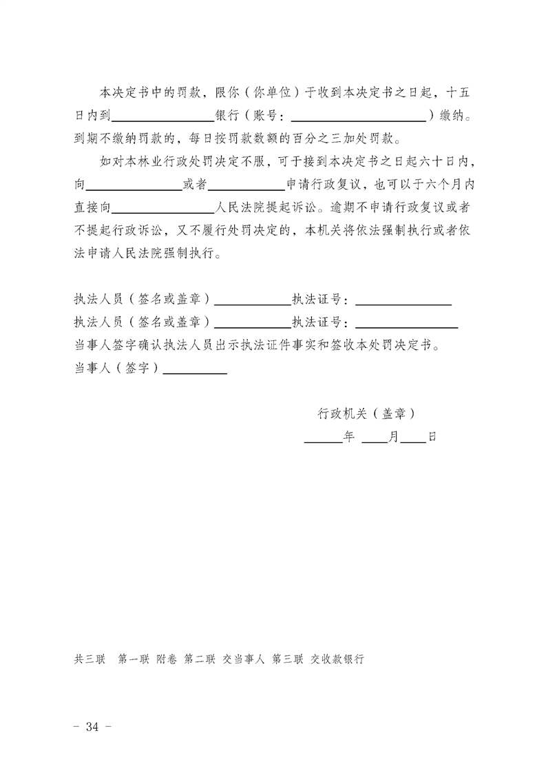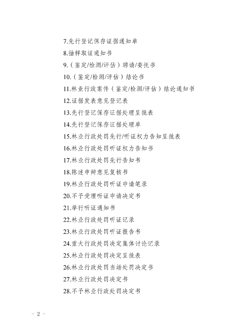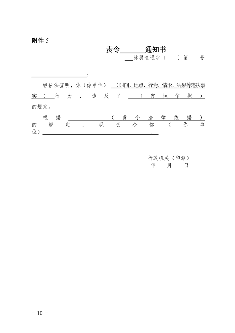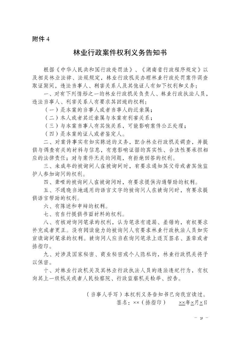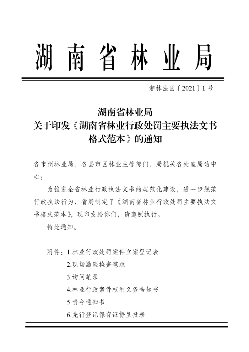 关于印发《湖南省林业行政处罚主要执法文书格式范本》的通知