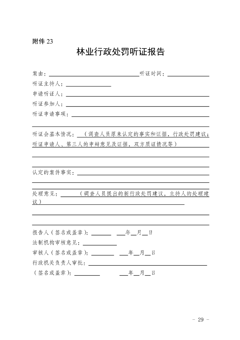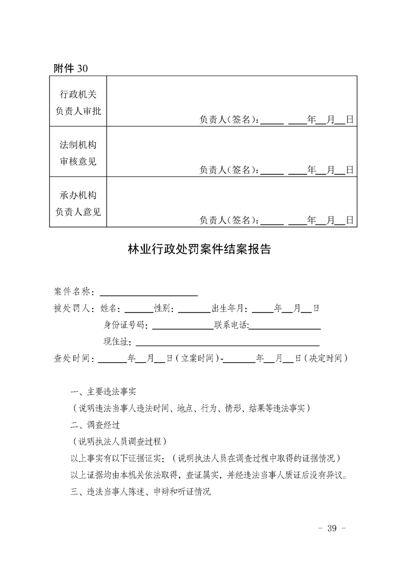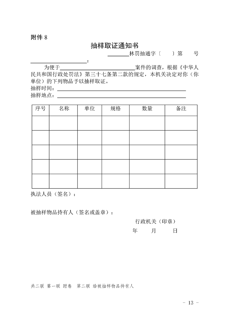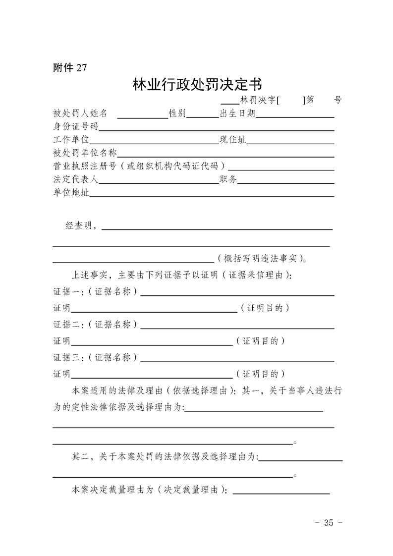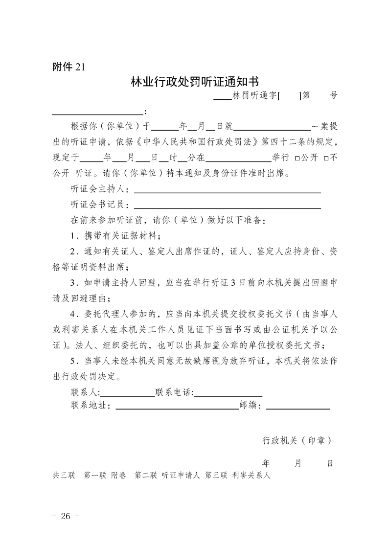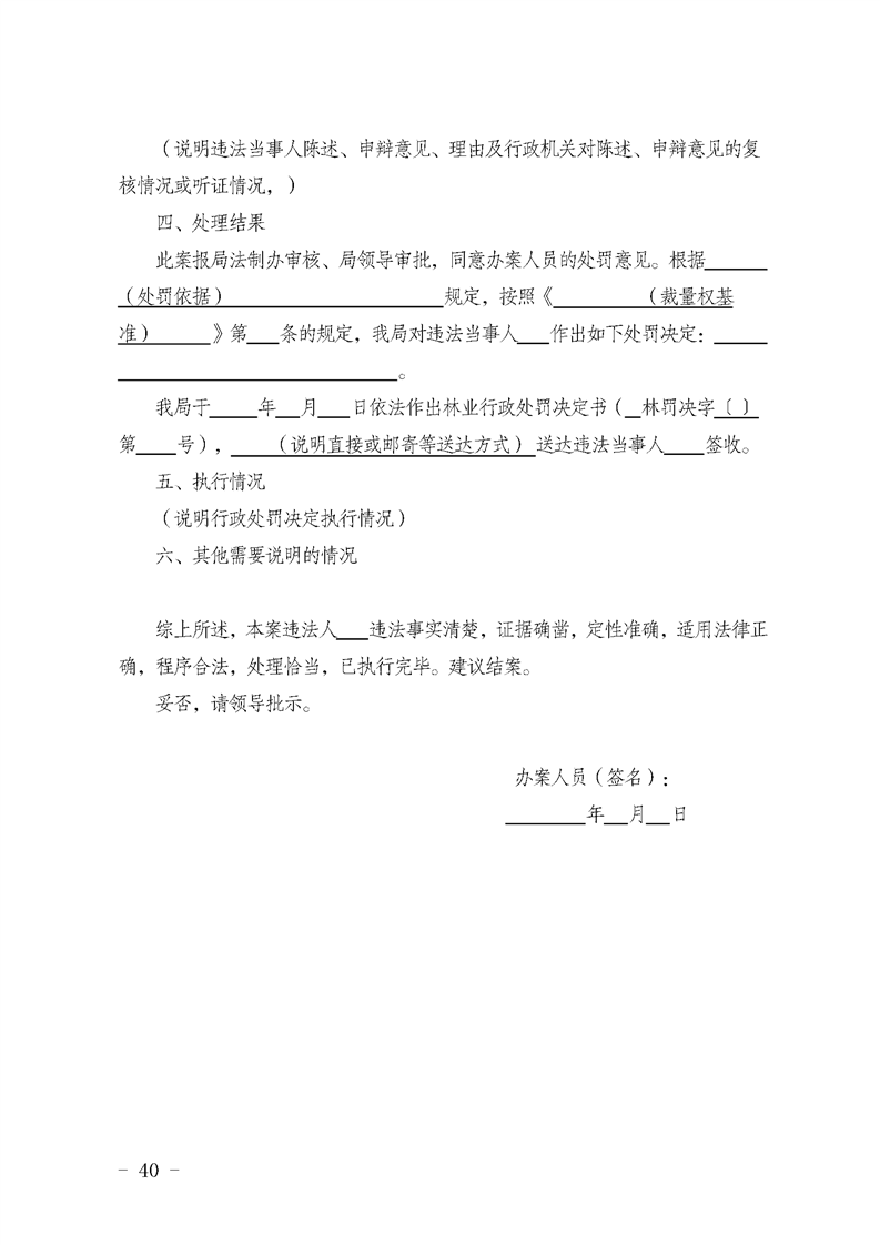 关于印发《湖南省林业行政处罚主要执法文书格式范本》的通知