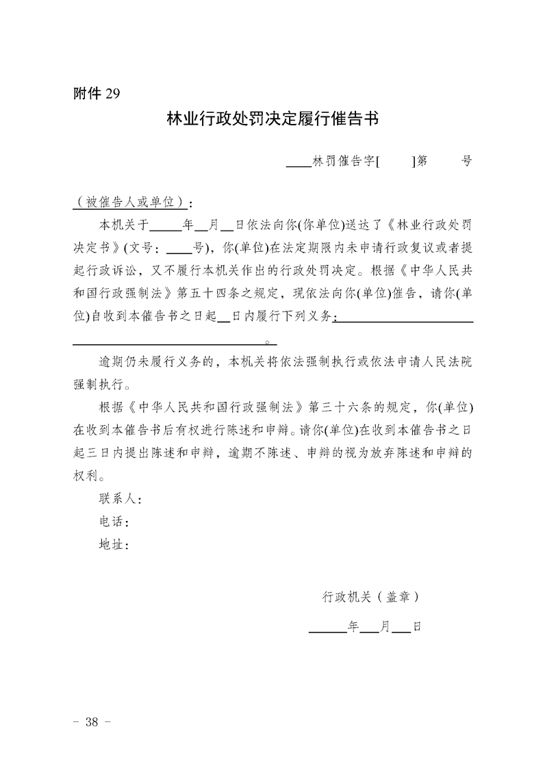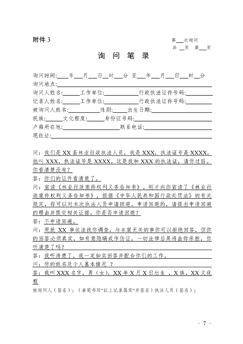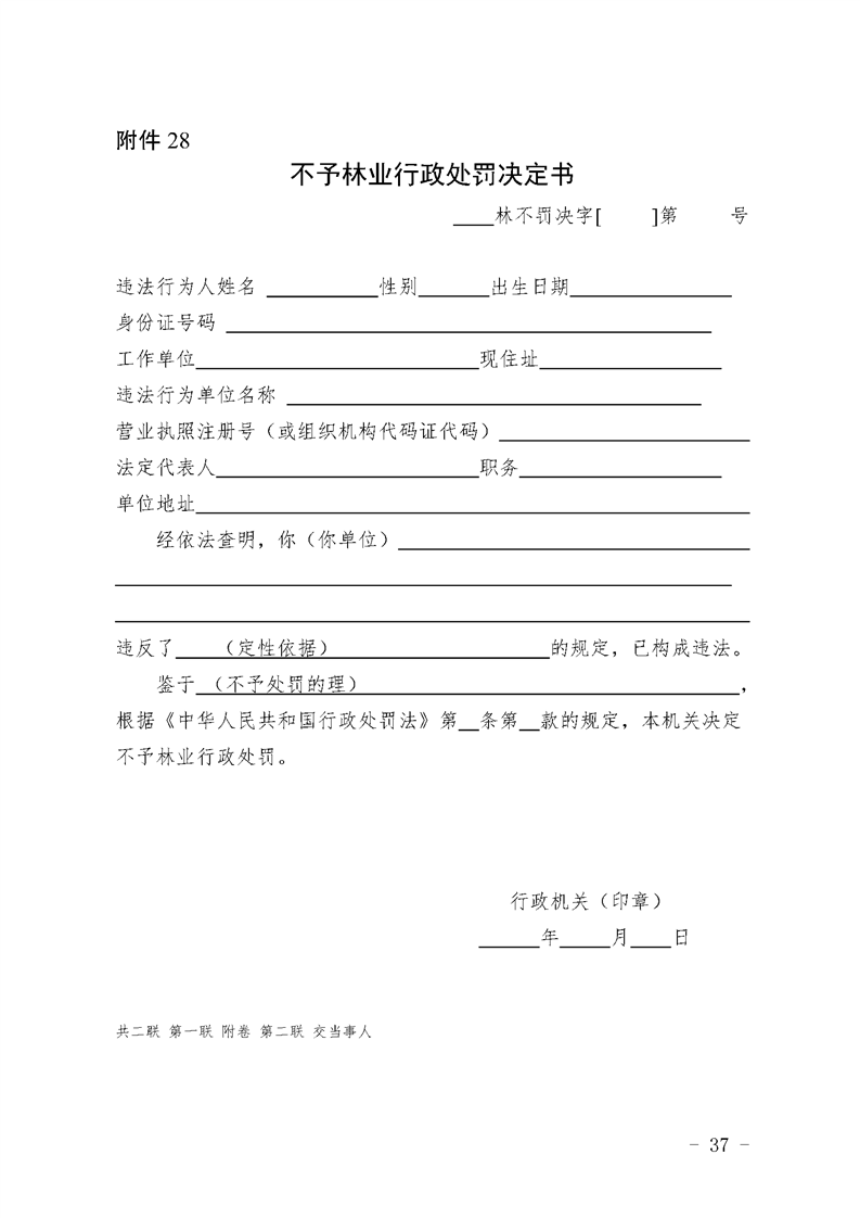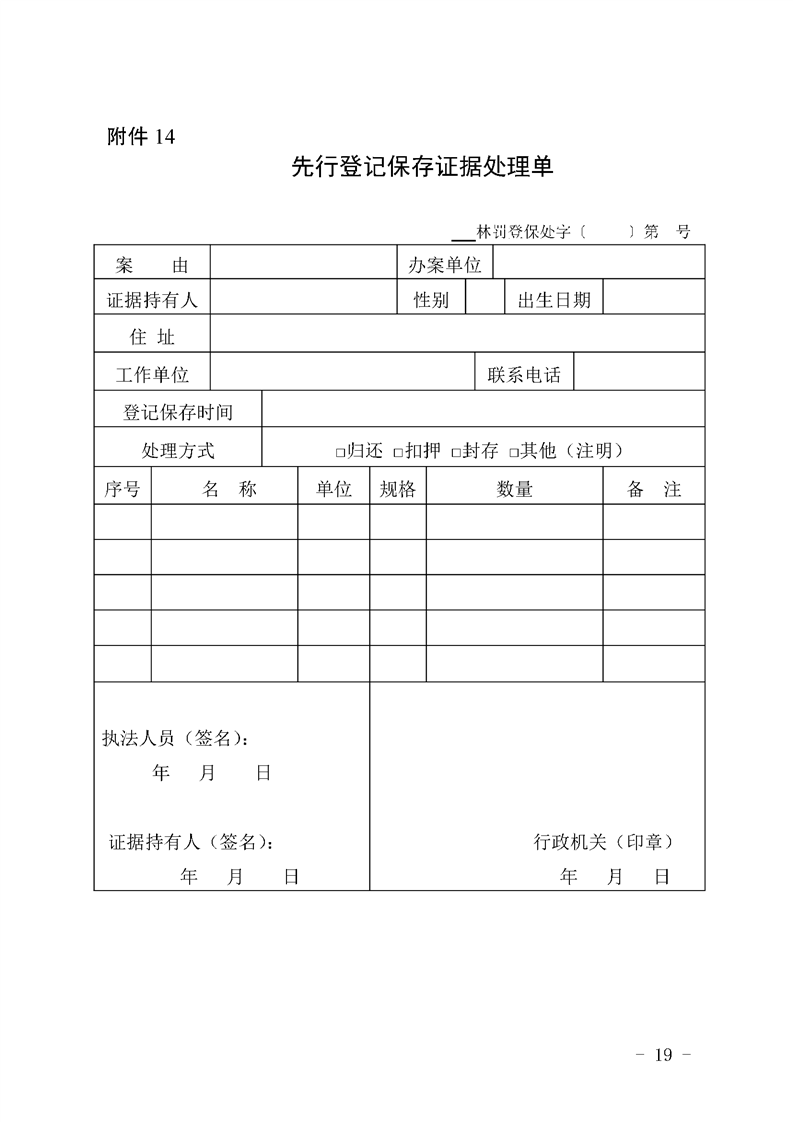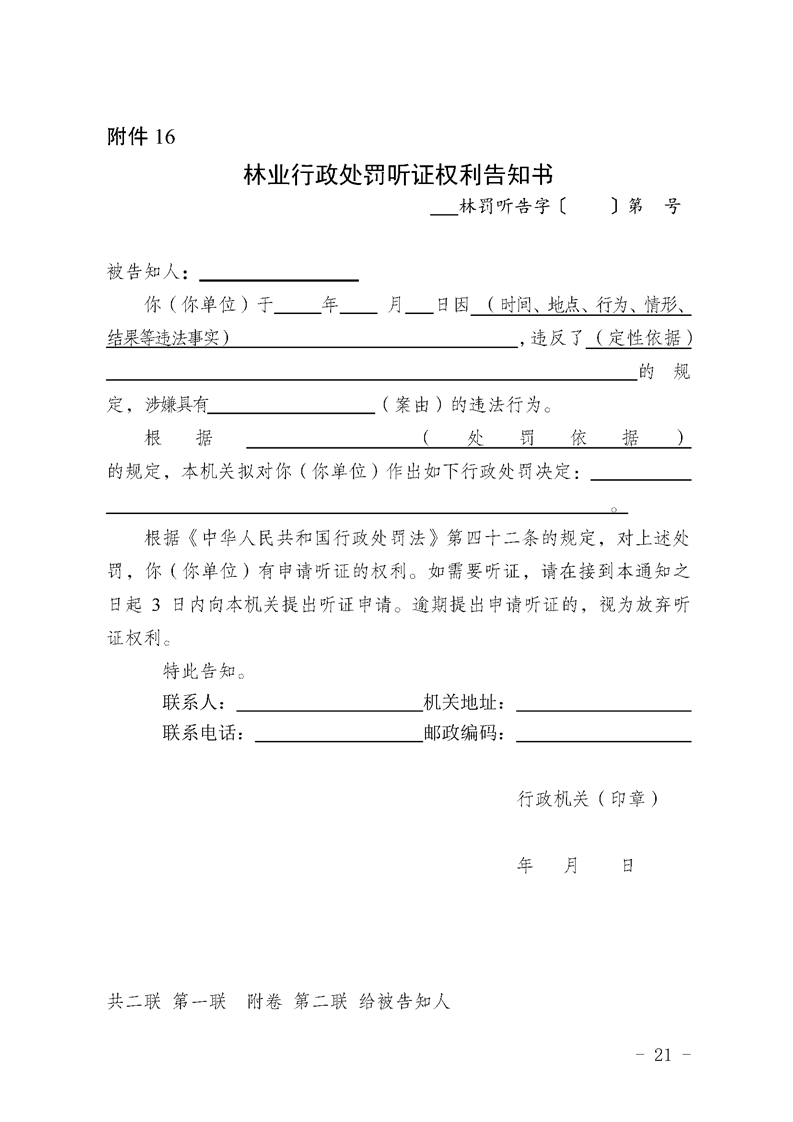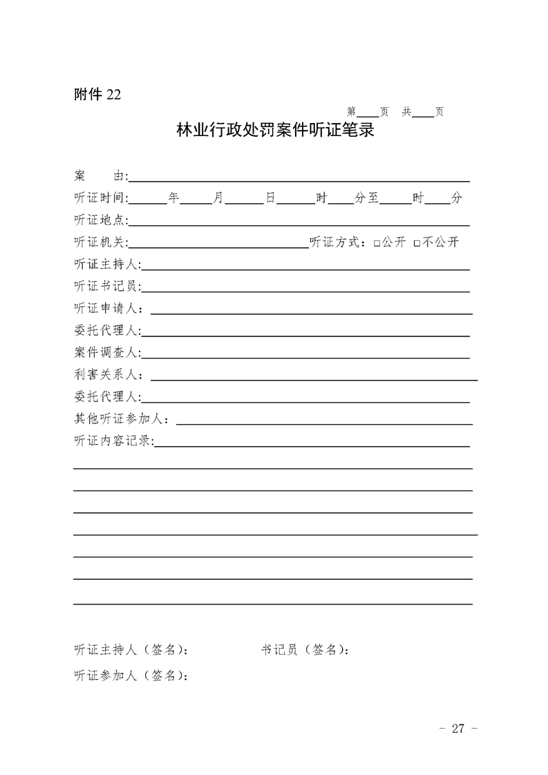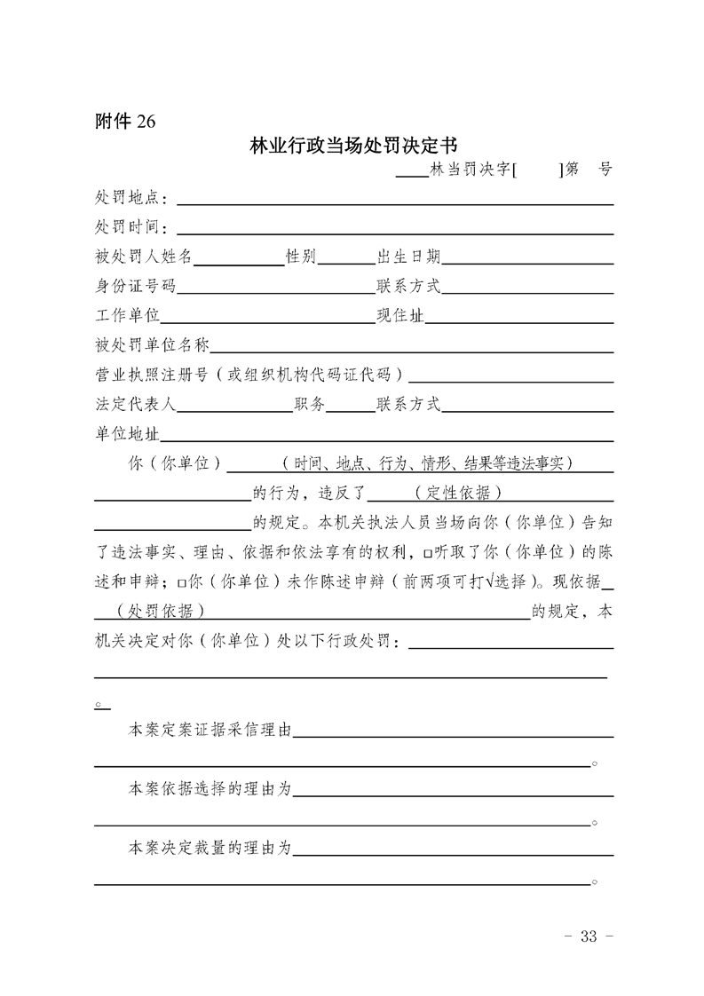 关于印发《湖南省林业行政处罚主要执法文书格式范本》的通知