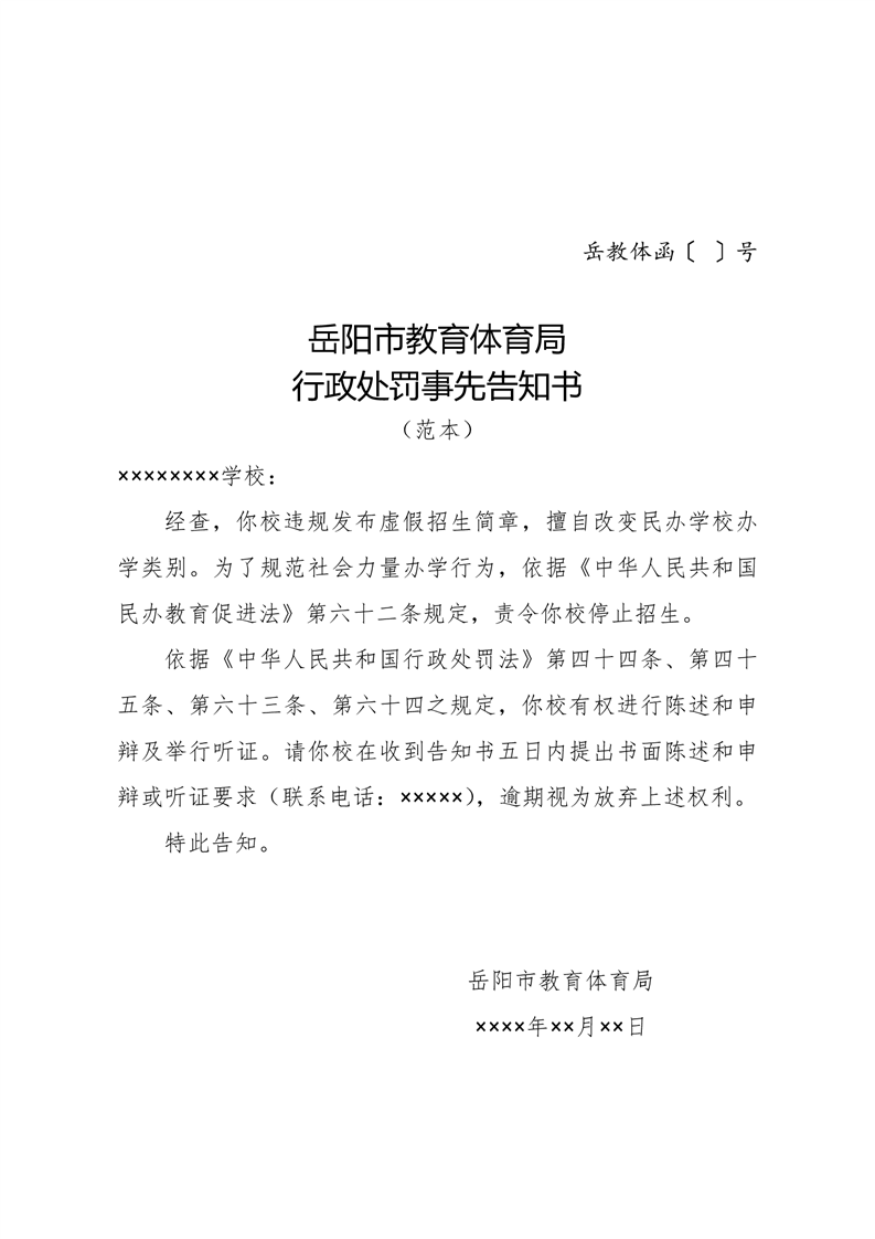 行政处罚事先告知书(范本)