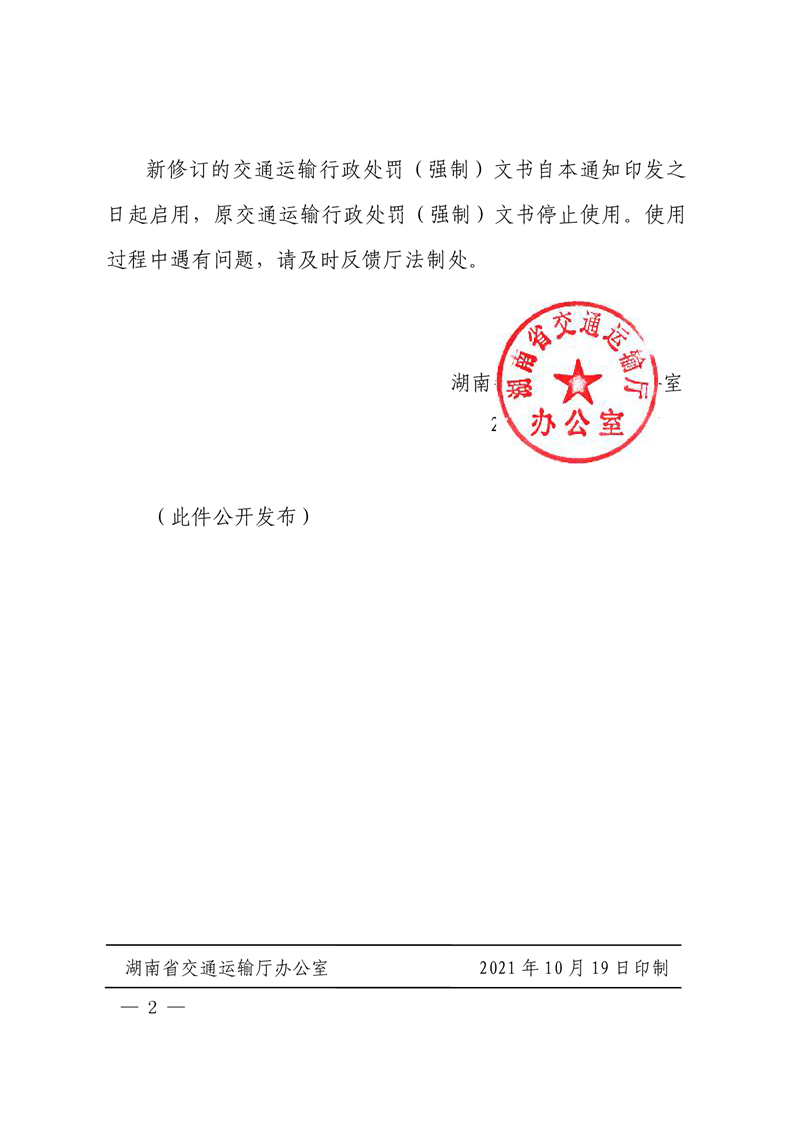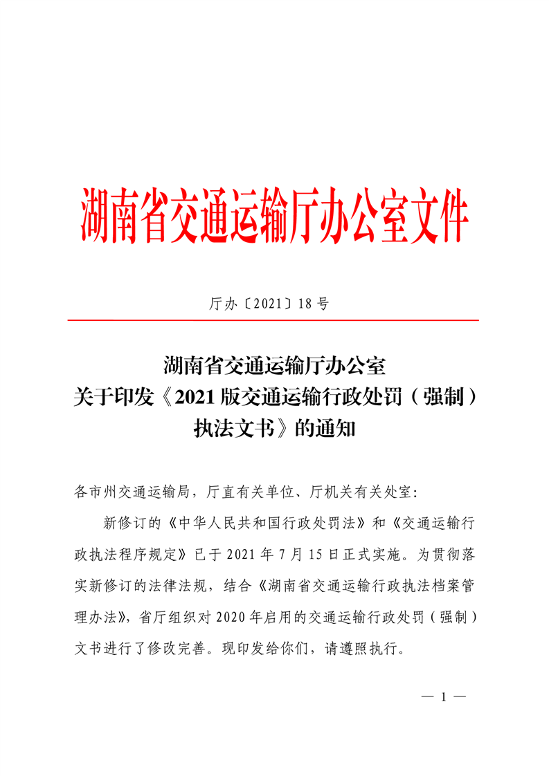 关于印发《2021版交通运输行政处罚(强制)执法文书》的通知