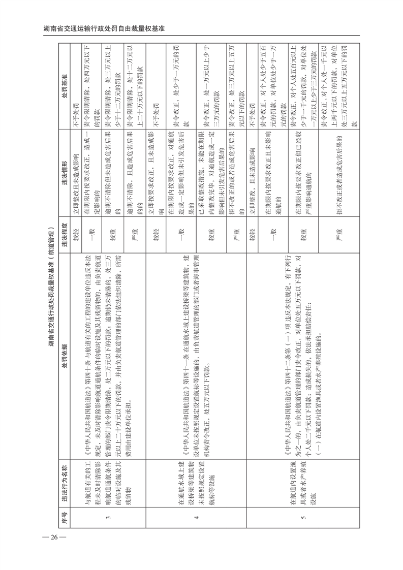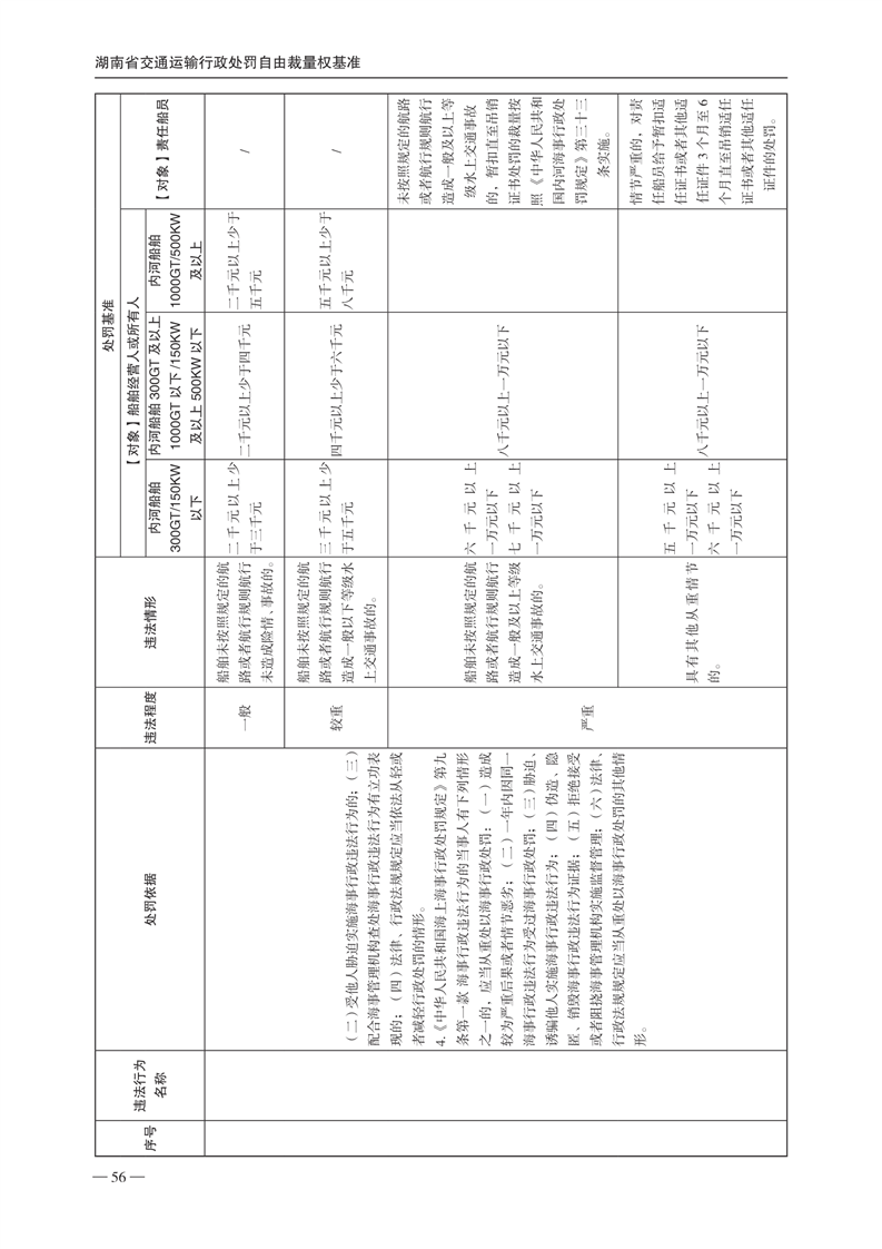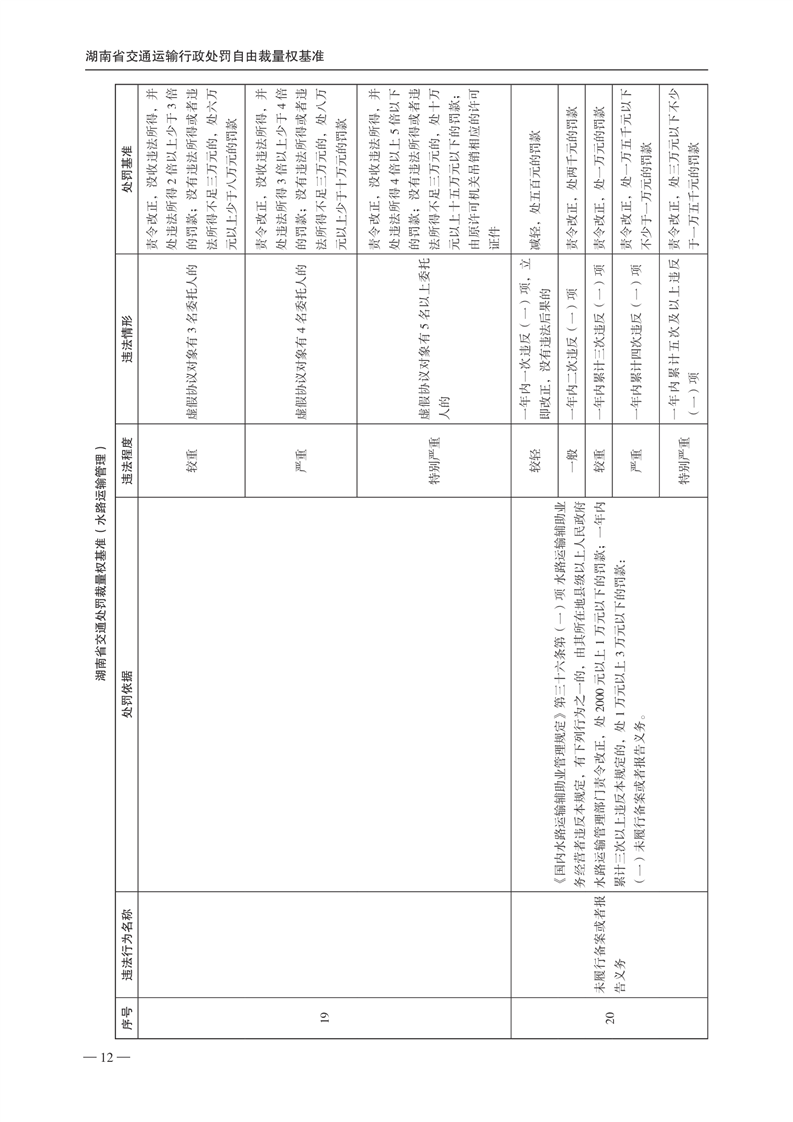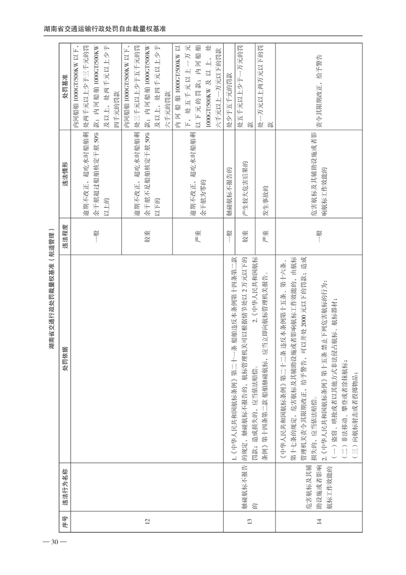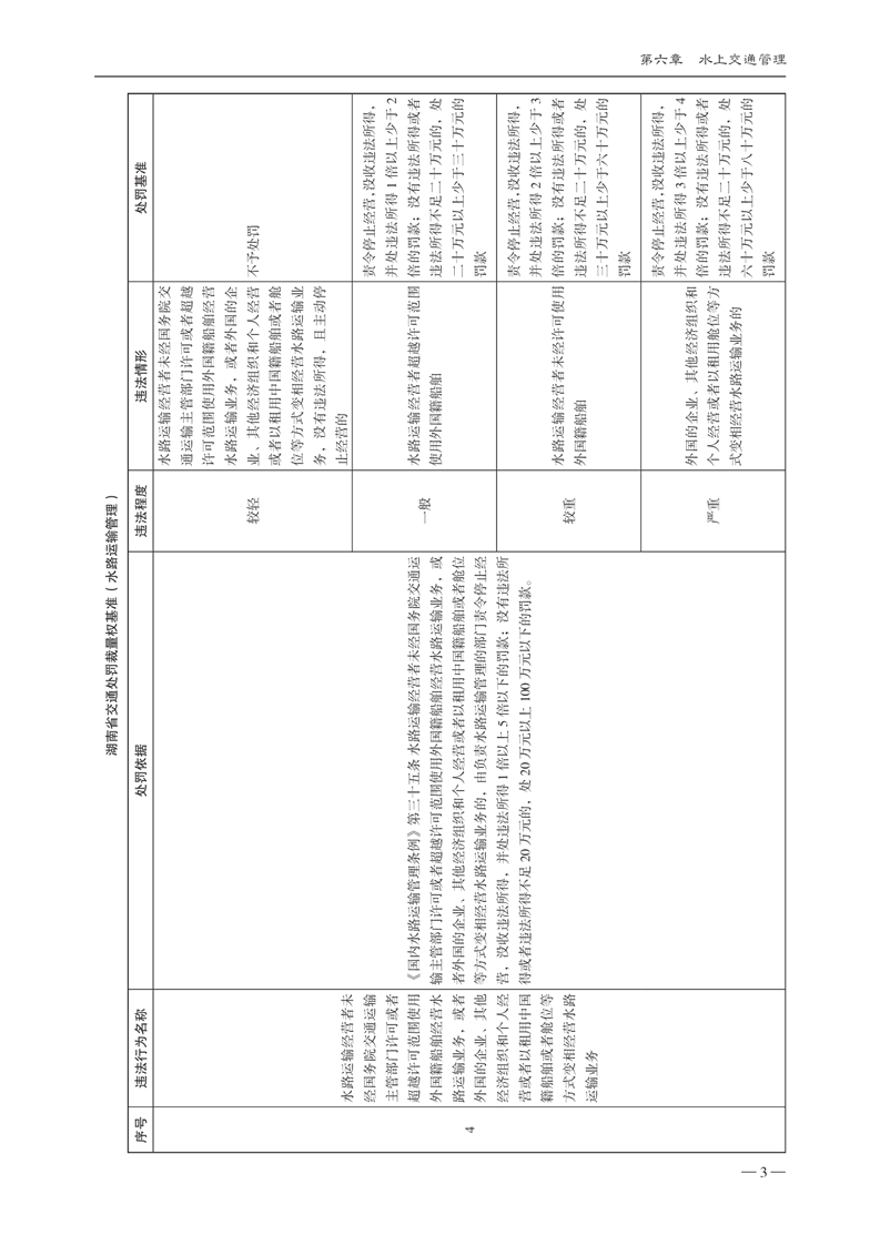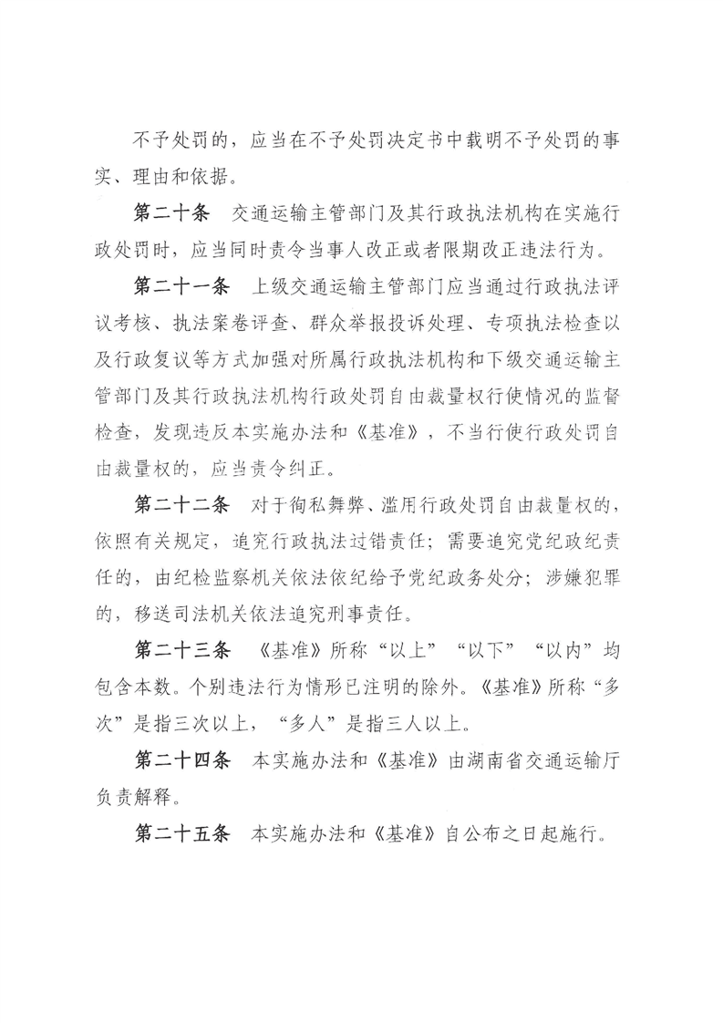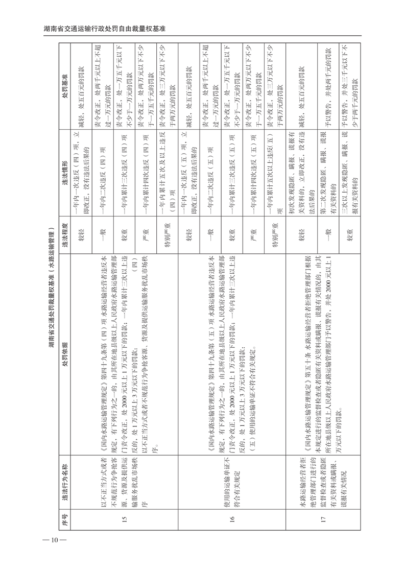 关于印发《湖南省交通运输行政处罚自由裁量权基准》和《湖南省交通运输行政处罚自由裁量权基准实施办法》的通知(下册)