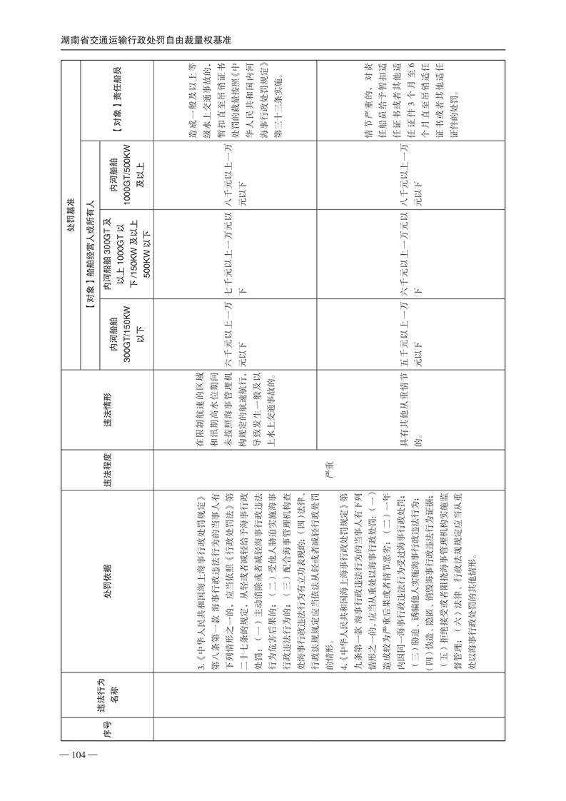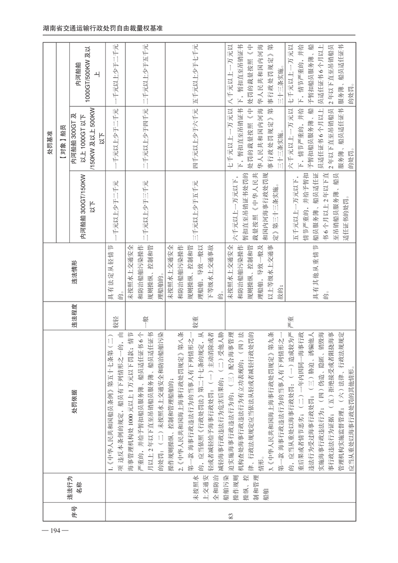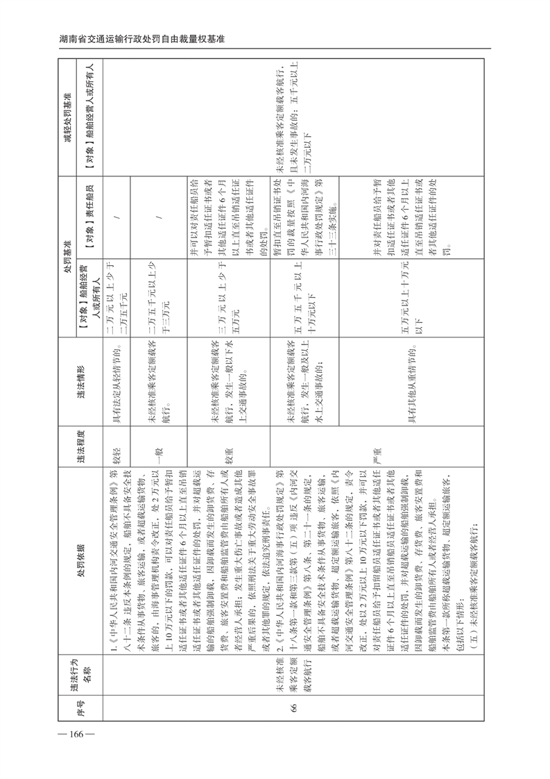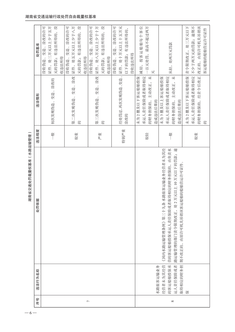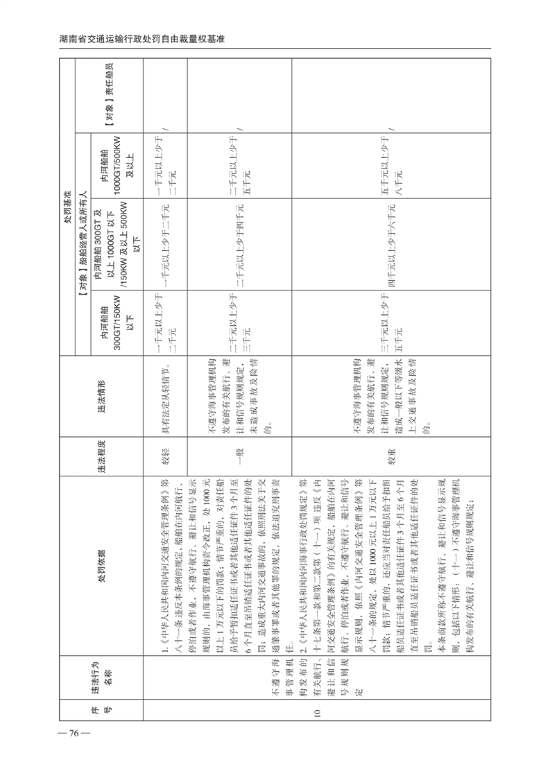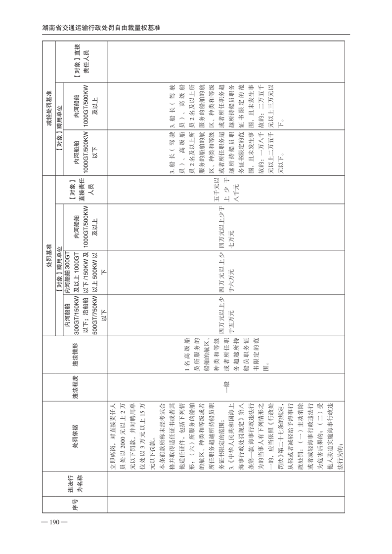 关于印发《湖南省交通运输行政处罚自由裁量权基准》和《湖南省交通运输行政处罚自由裁量权基准实施办法》的通知(下册)