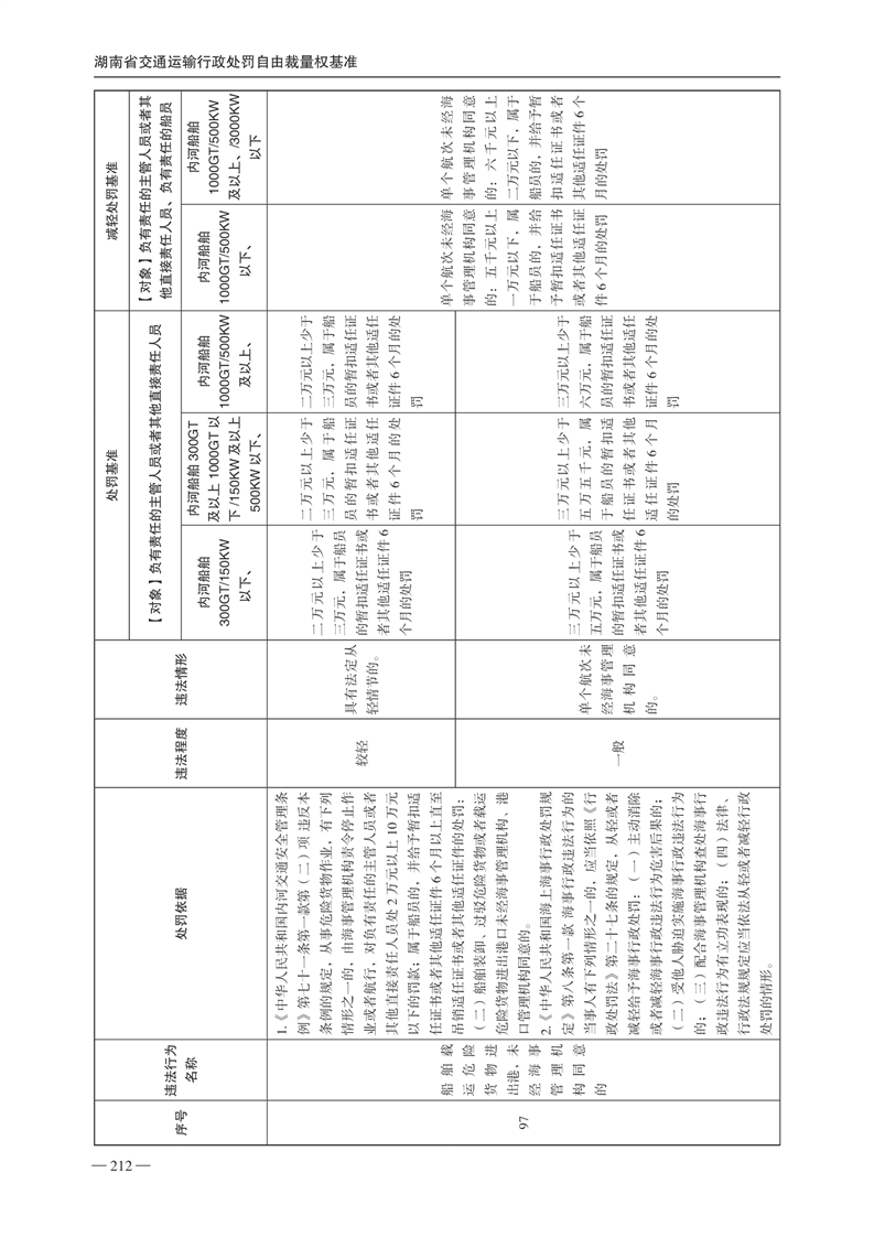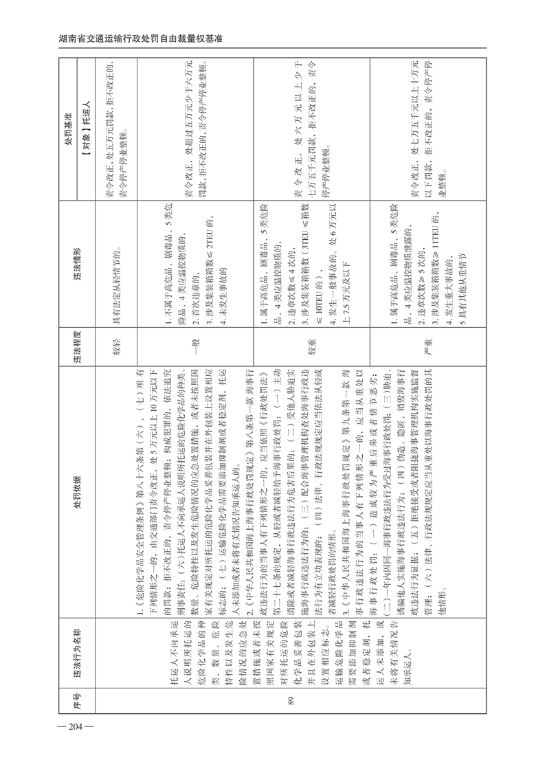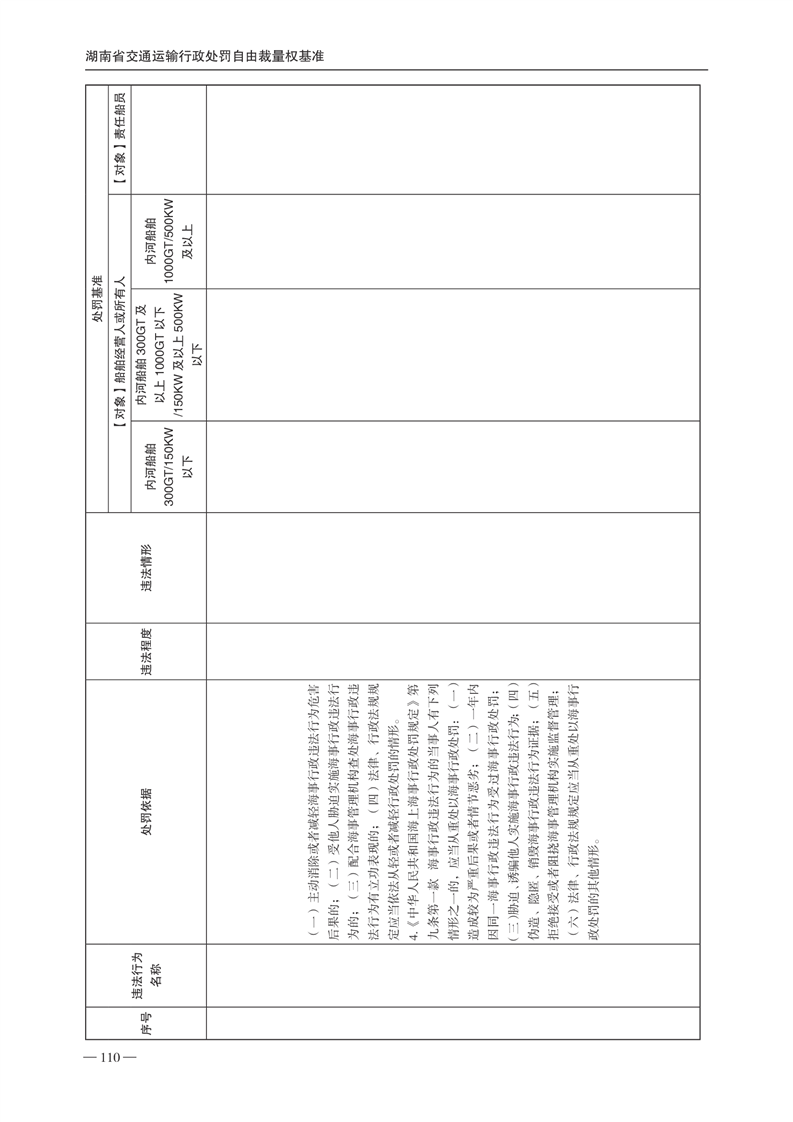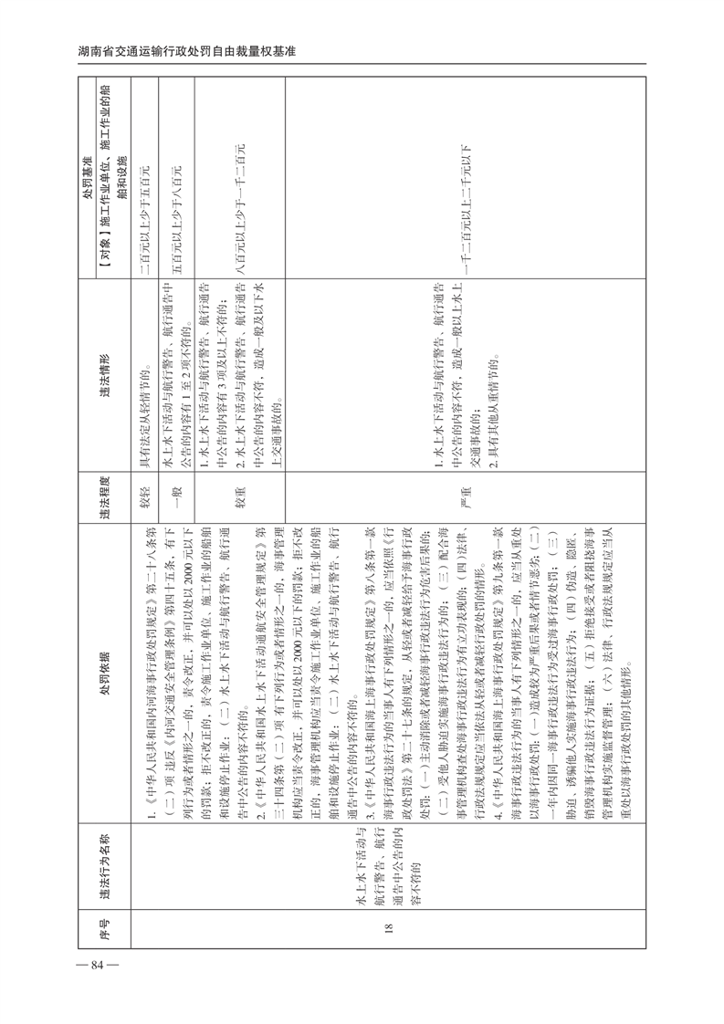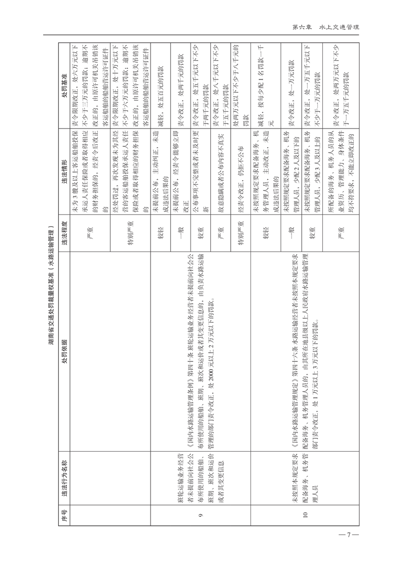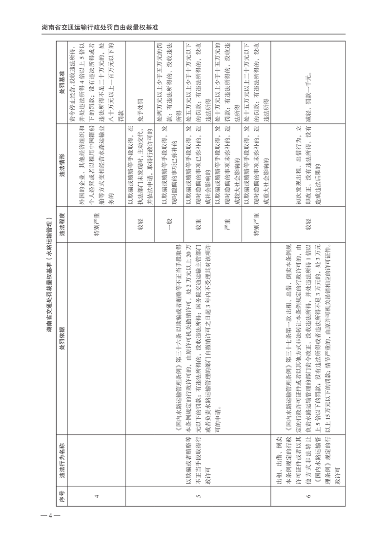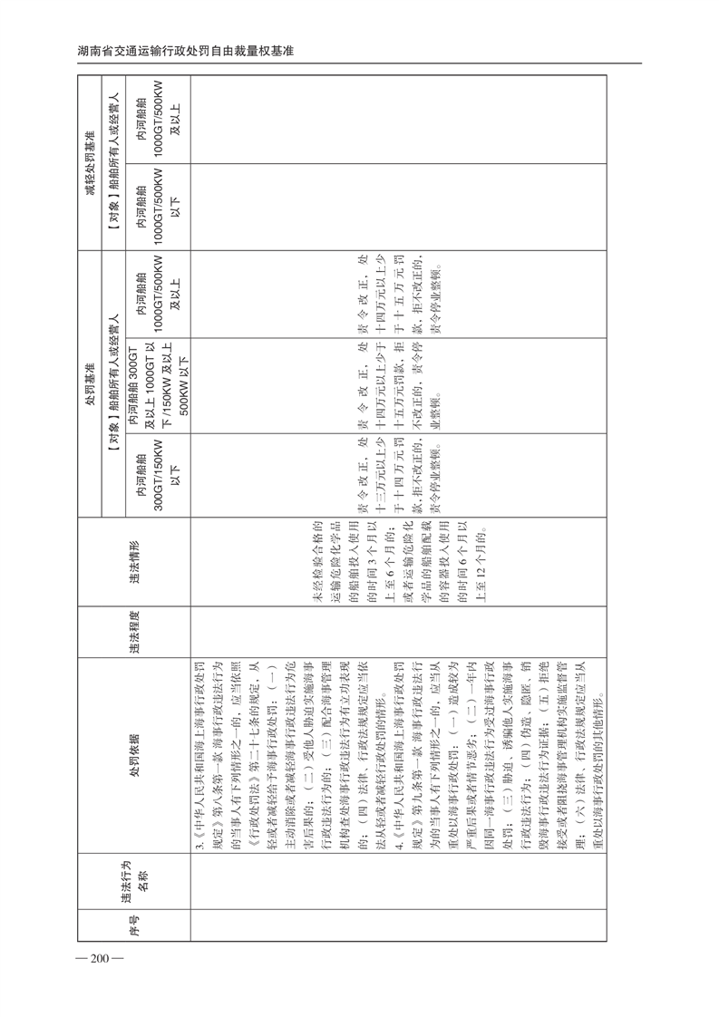 关于印发《湖南省交通运输行政处罚自由裁量权基准》和《湖南省交通运输行政处罚自由裁量权基准实施办法》的通知(下册)