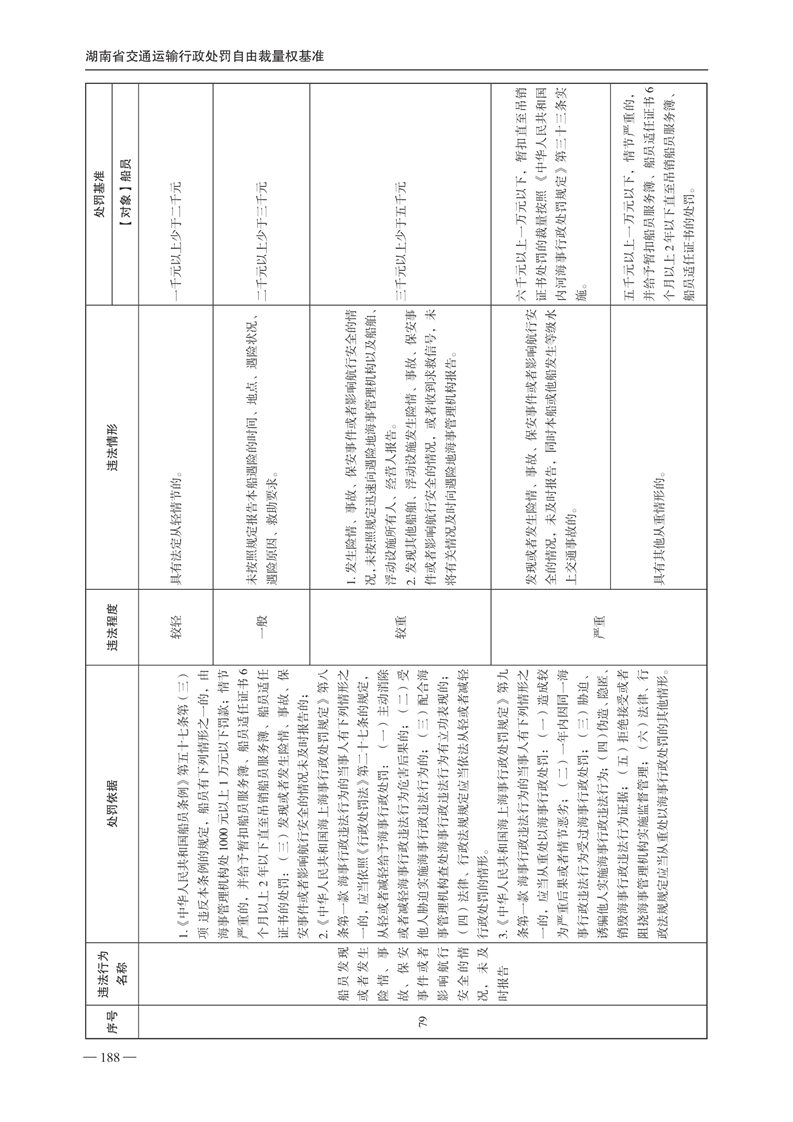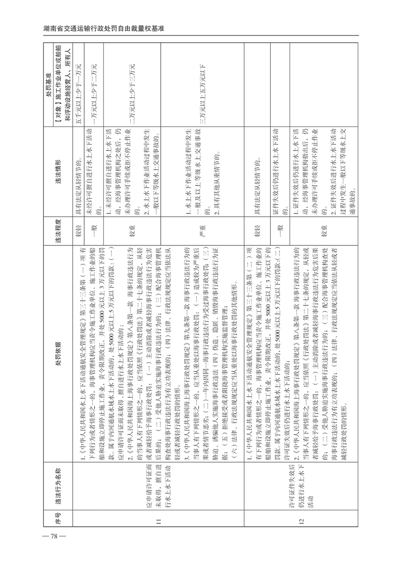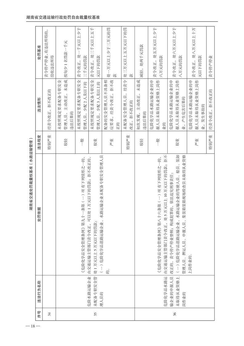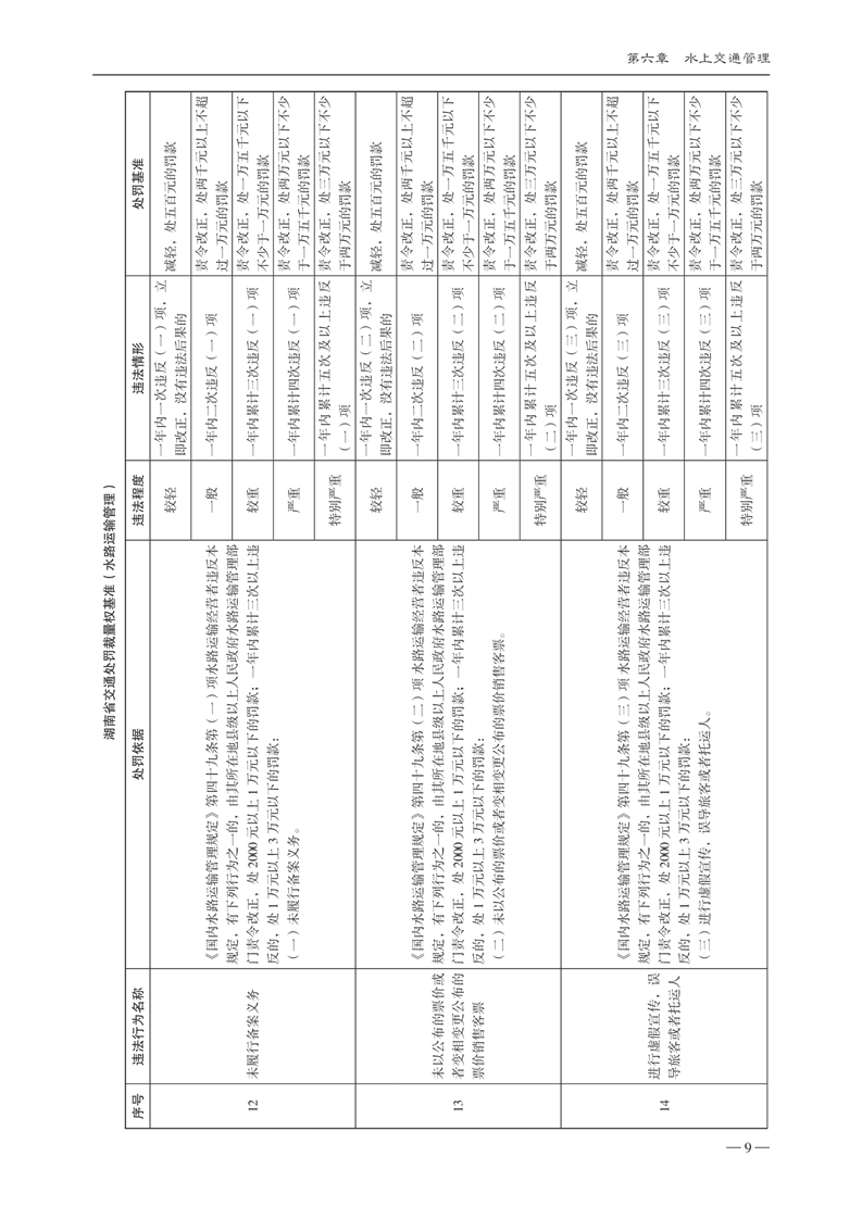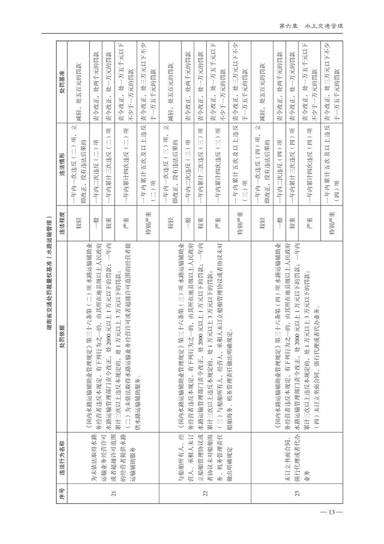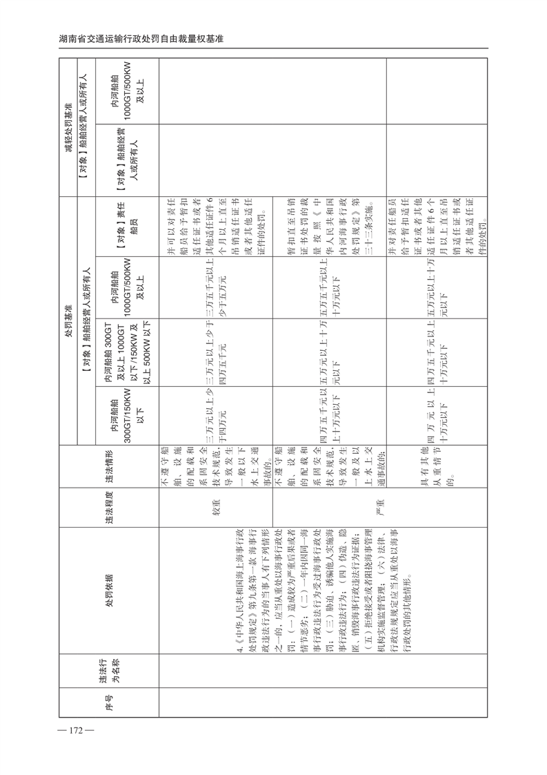 关于印发《湖南省交通运输行政处罚自由裁量权基准》和《湖南省交通运输行政处罚自由裁量权基准实施办法》的通知(下册)