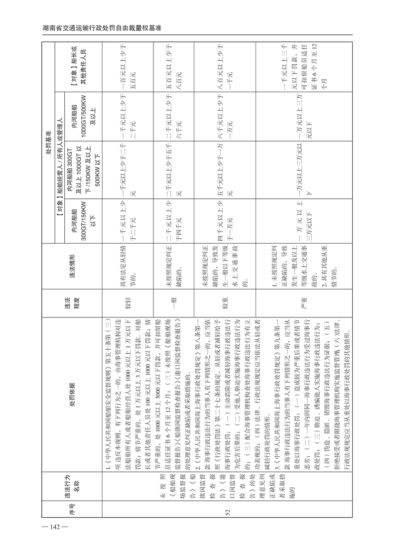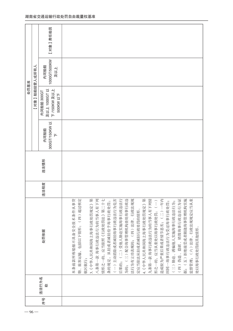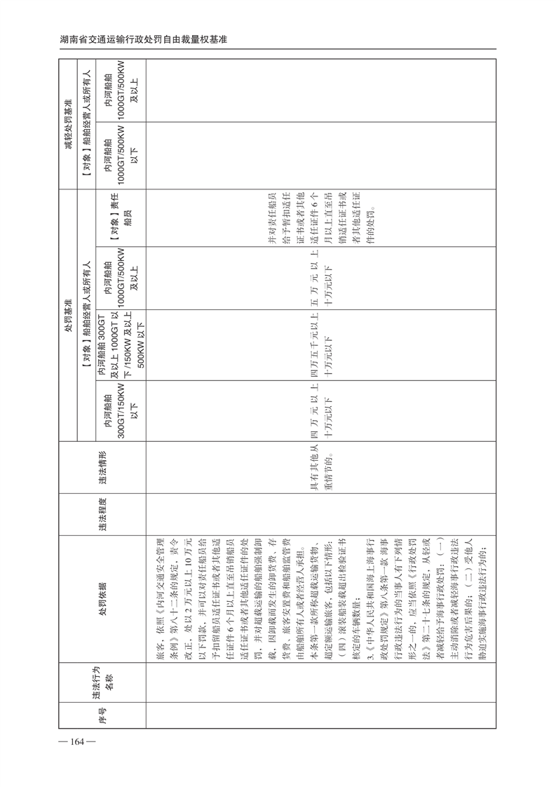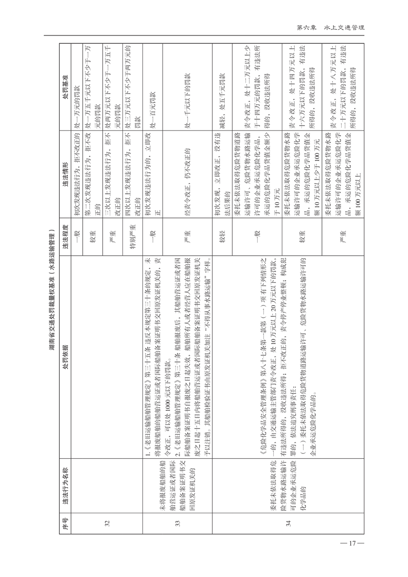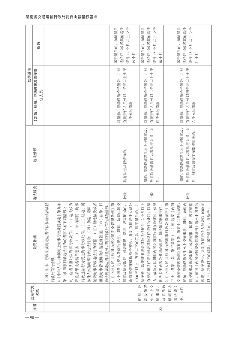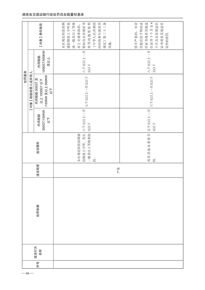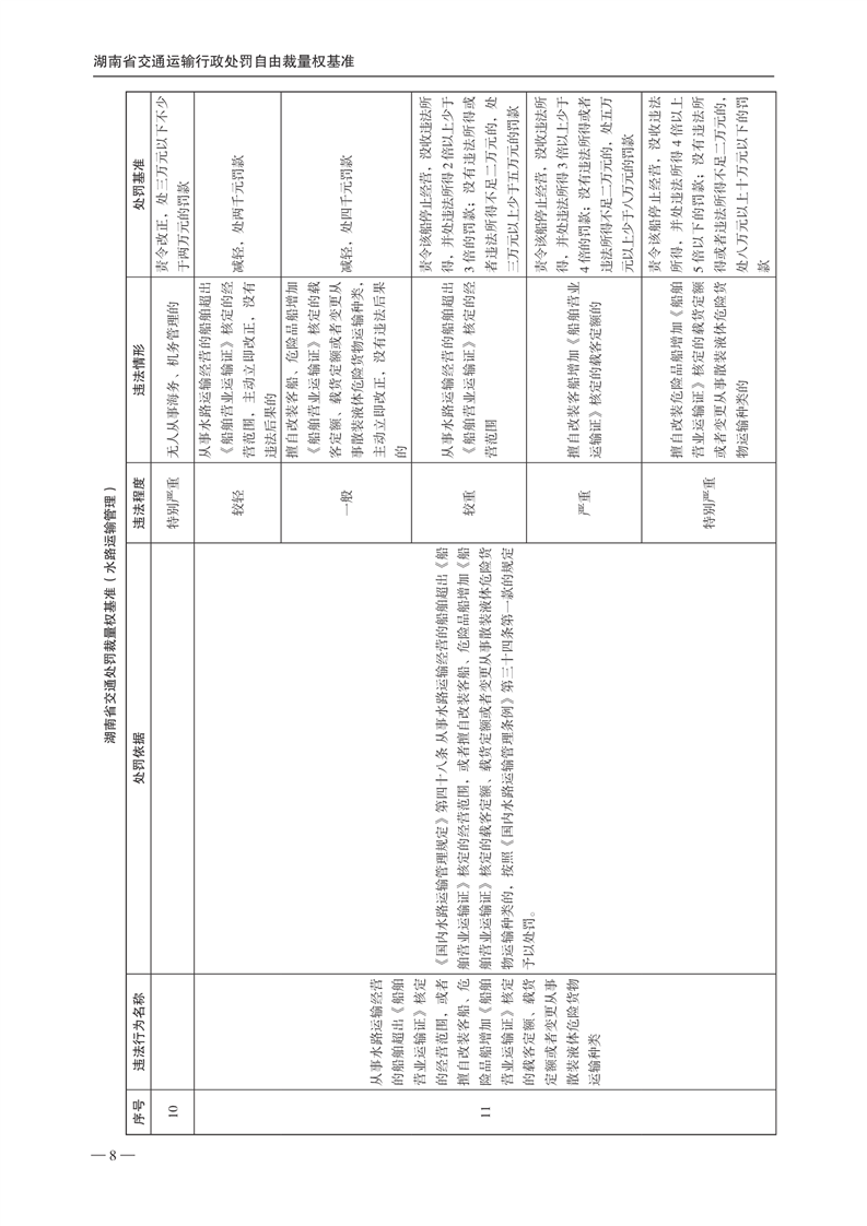 关于印发《湖南省交通运输行政处罚自由裁量权基准》和《湖南省交通运输行政处罚自由裁量权基准实施办法》的通知(下册)