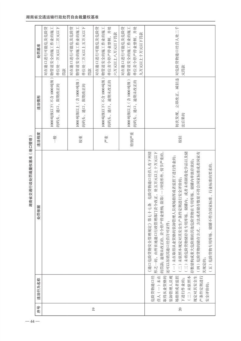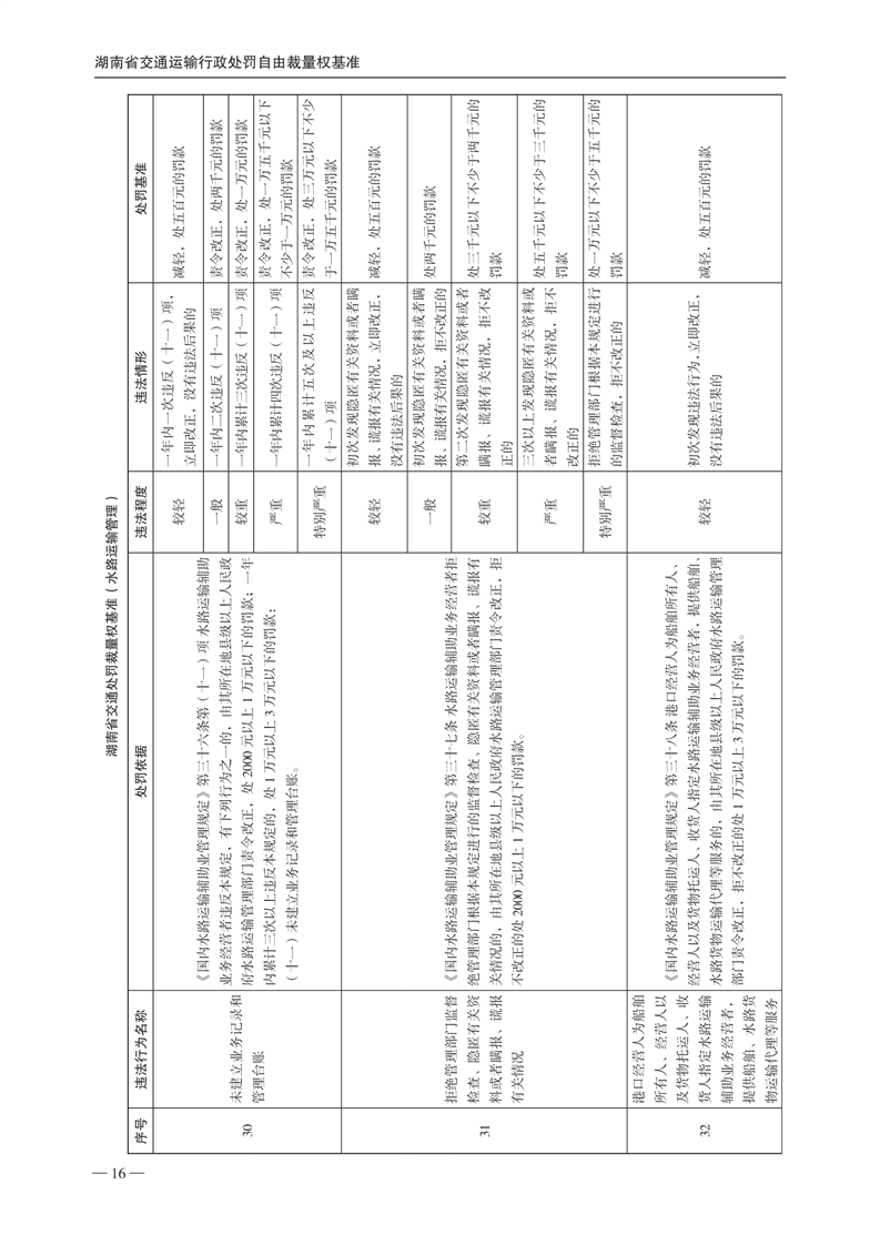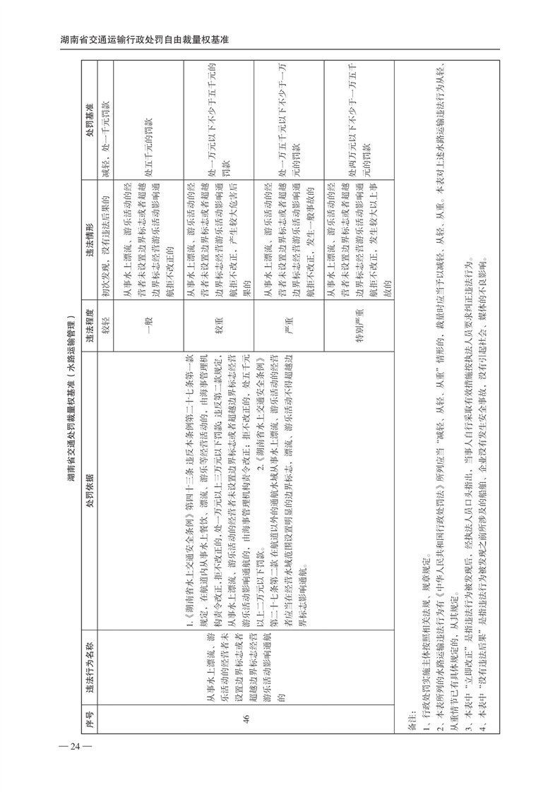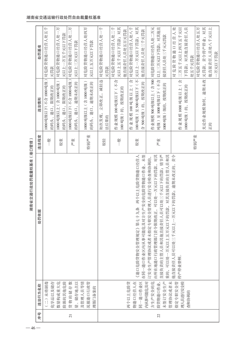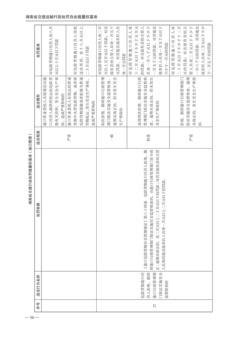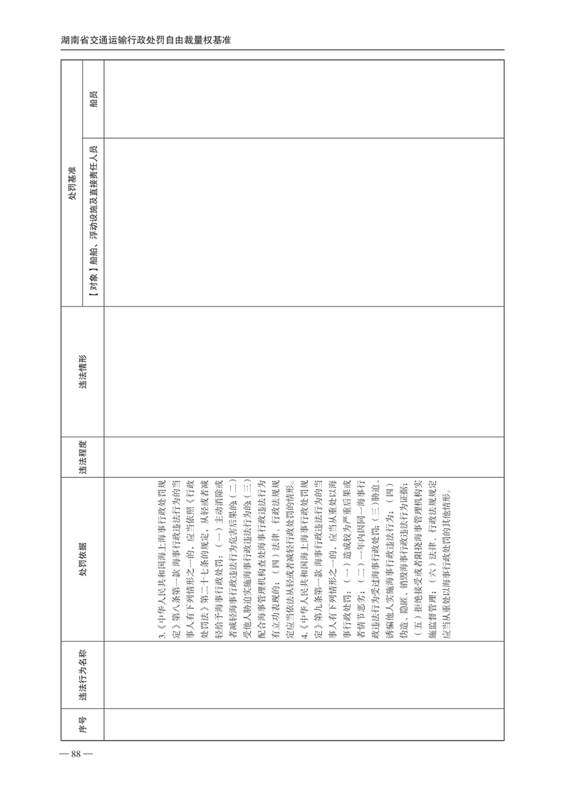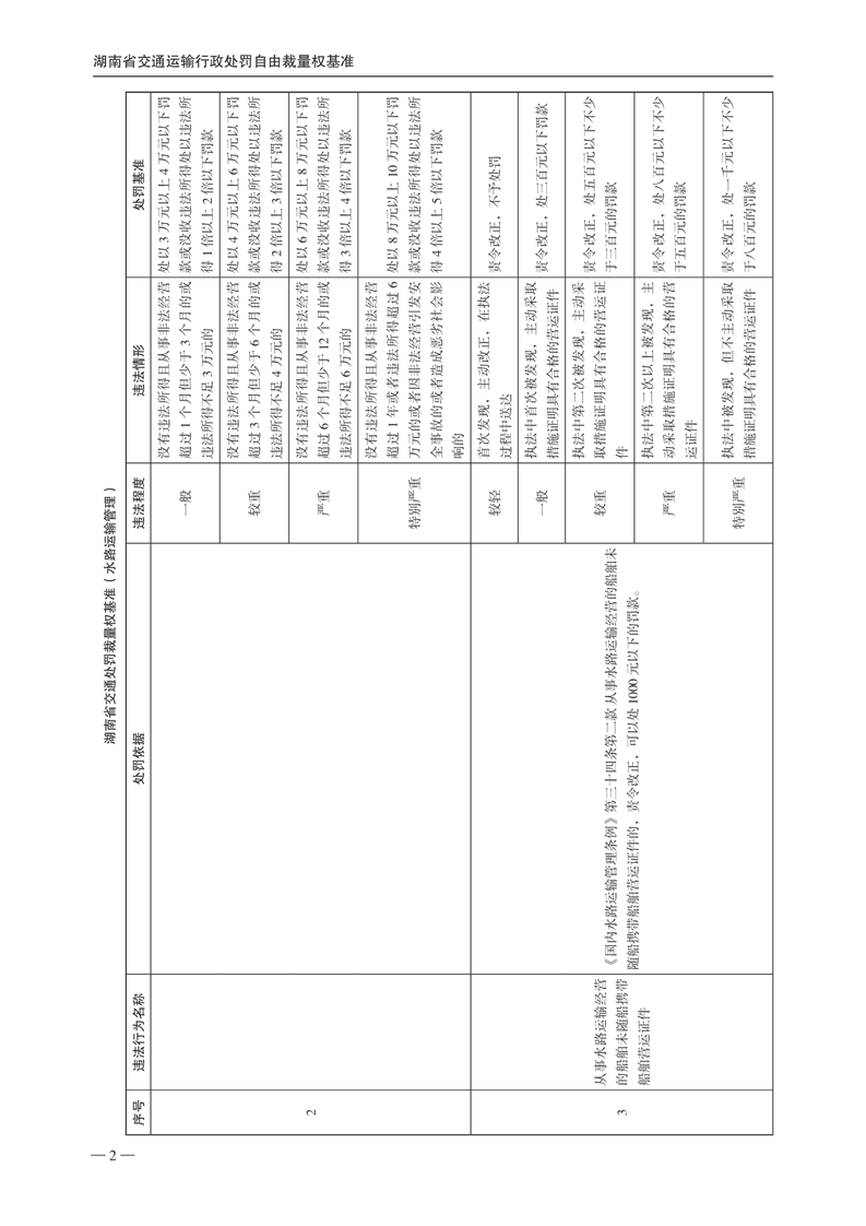 关于印发《湖南省交通运输行政处罚自由裁量权基准》和《湖南省交通运输行政处罚自由裁量权基准实施办法》的通知(下册)