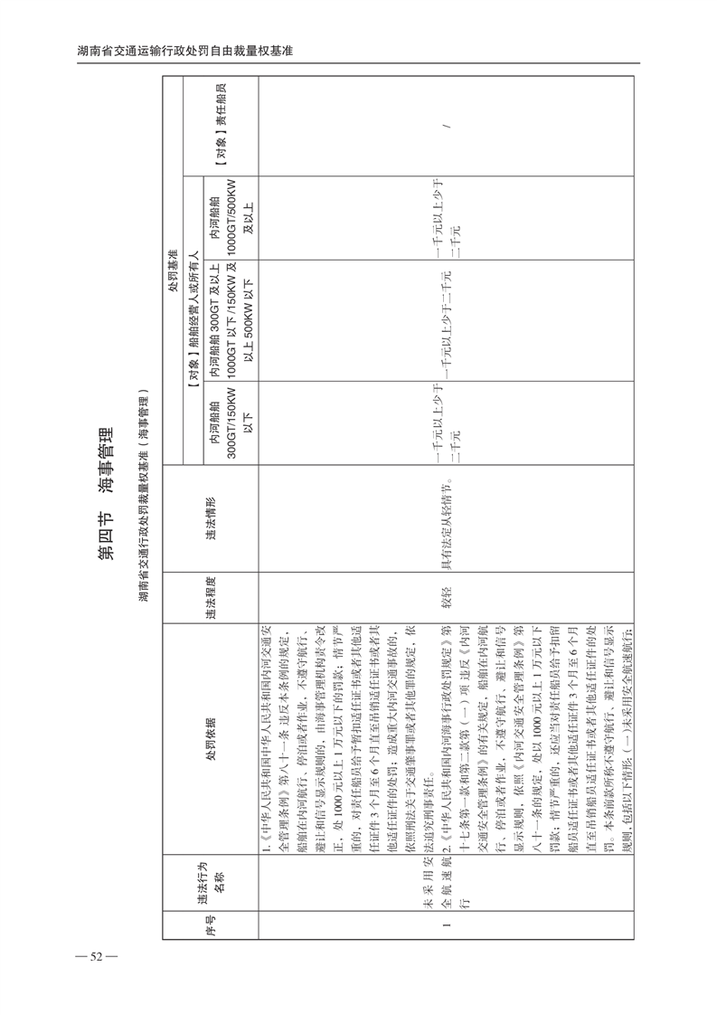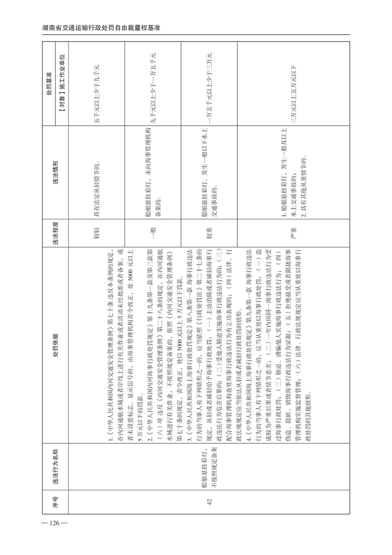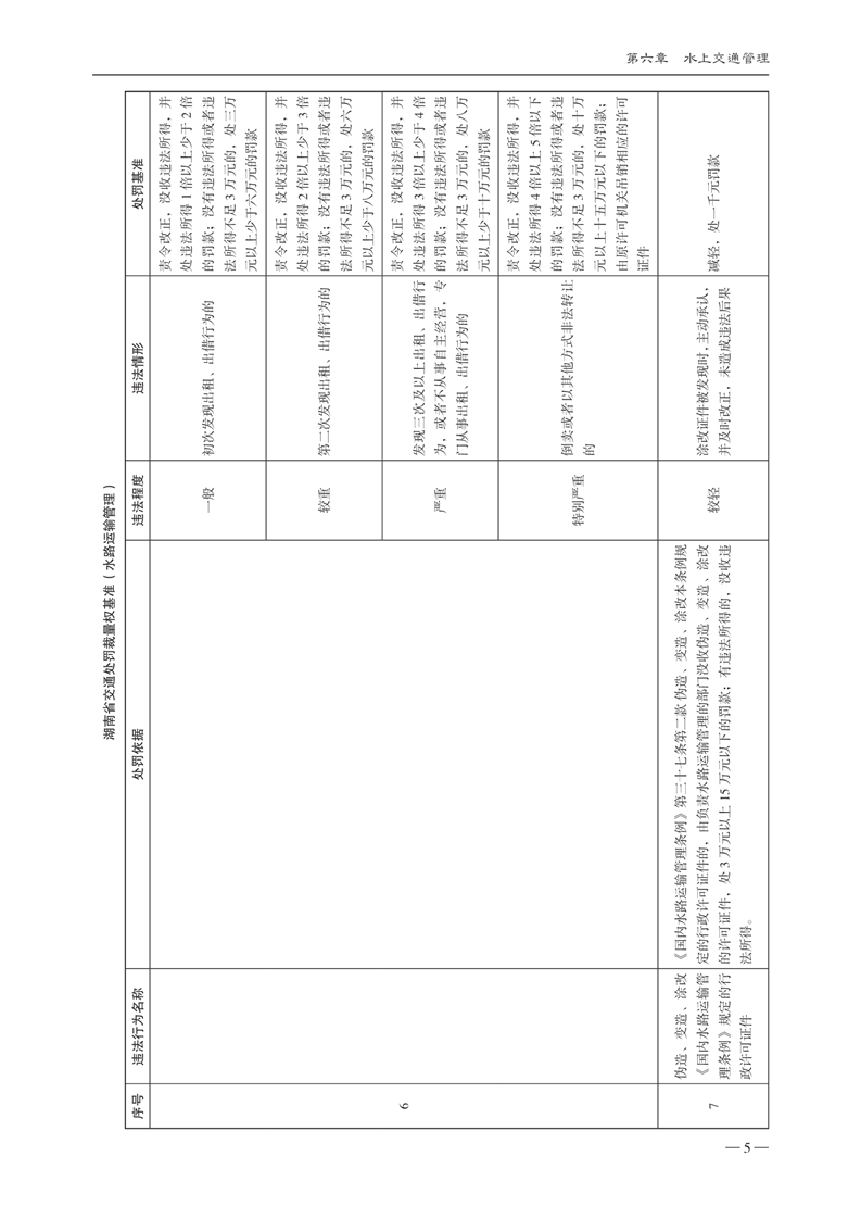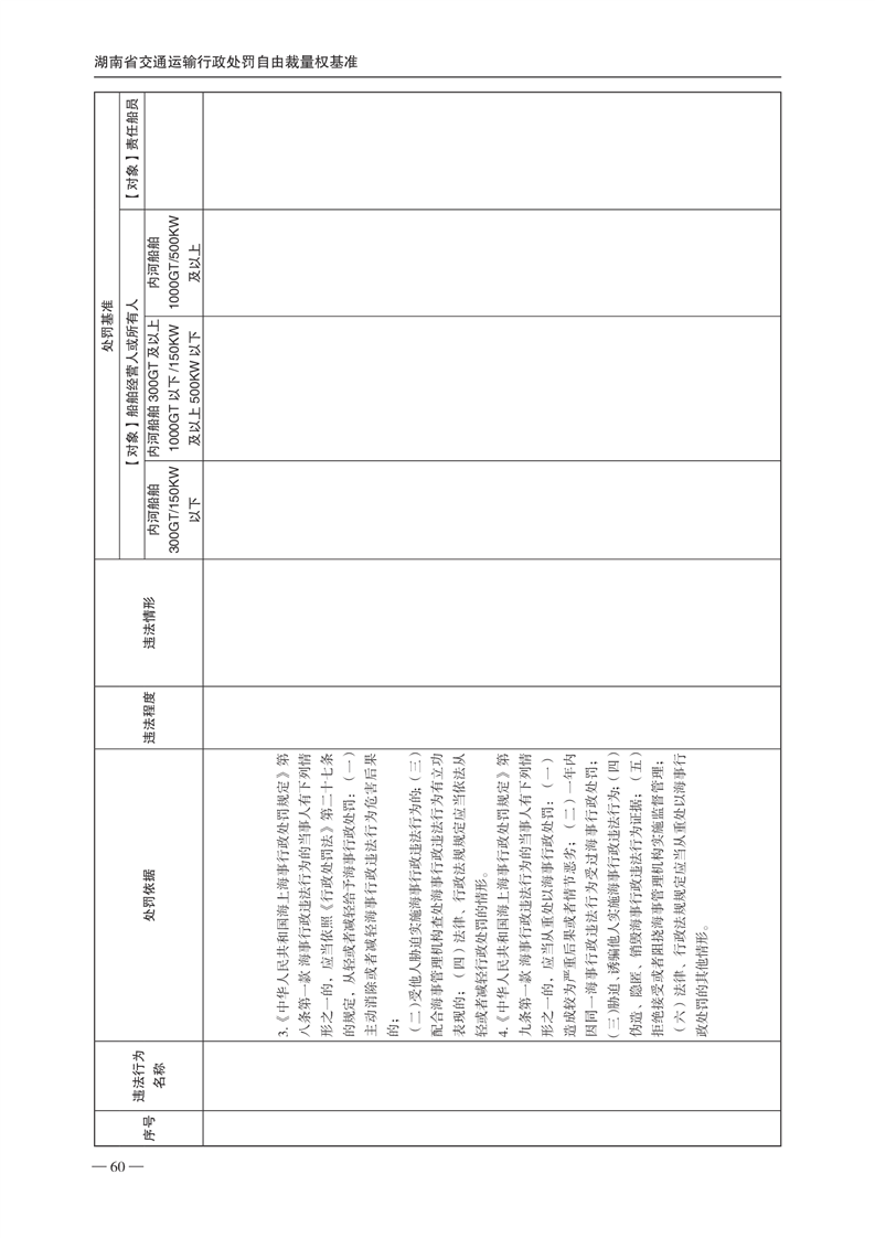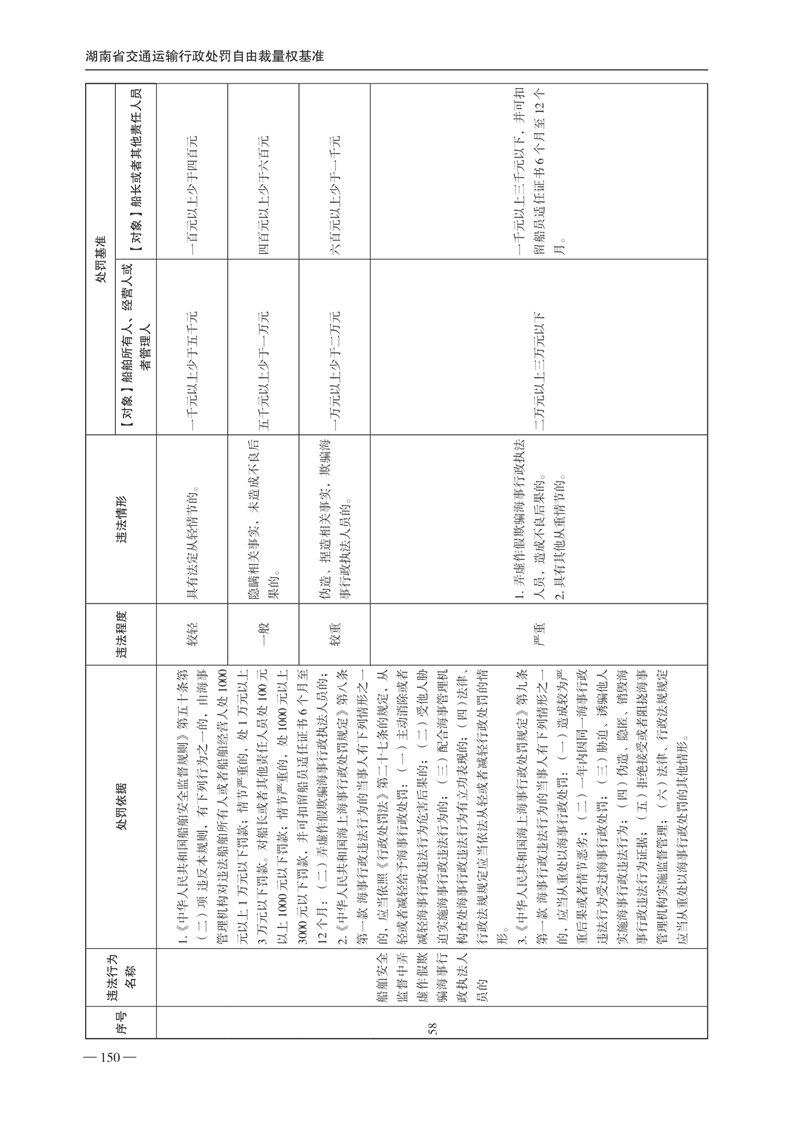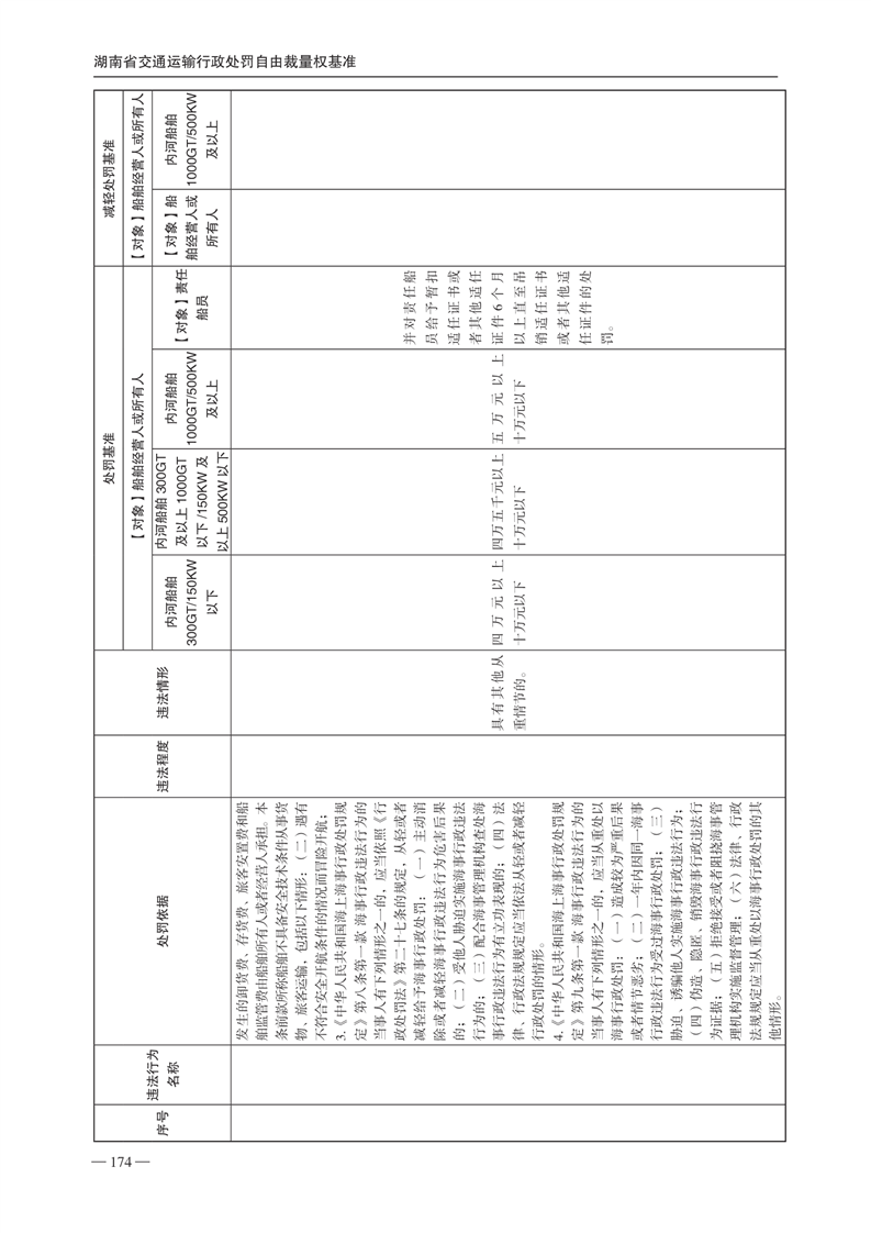 关于印发《湖南省交通运输行政处罚自由裁量权基准》和《湖南省交通运输行政处罚自由裁量权基准实施办法》的通知(下册)