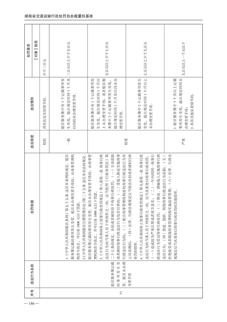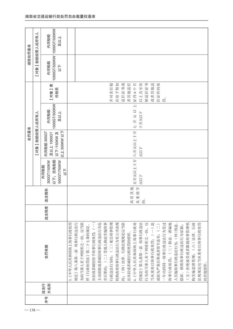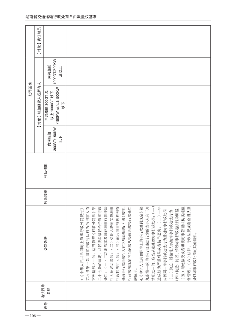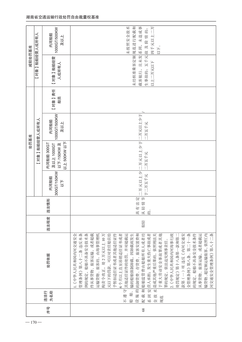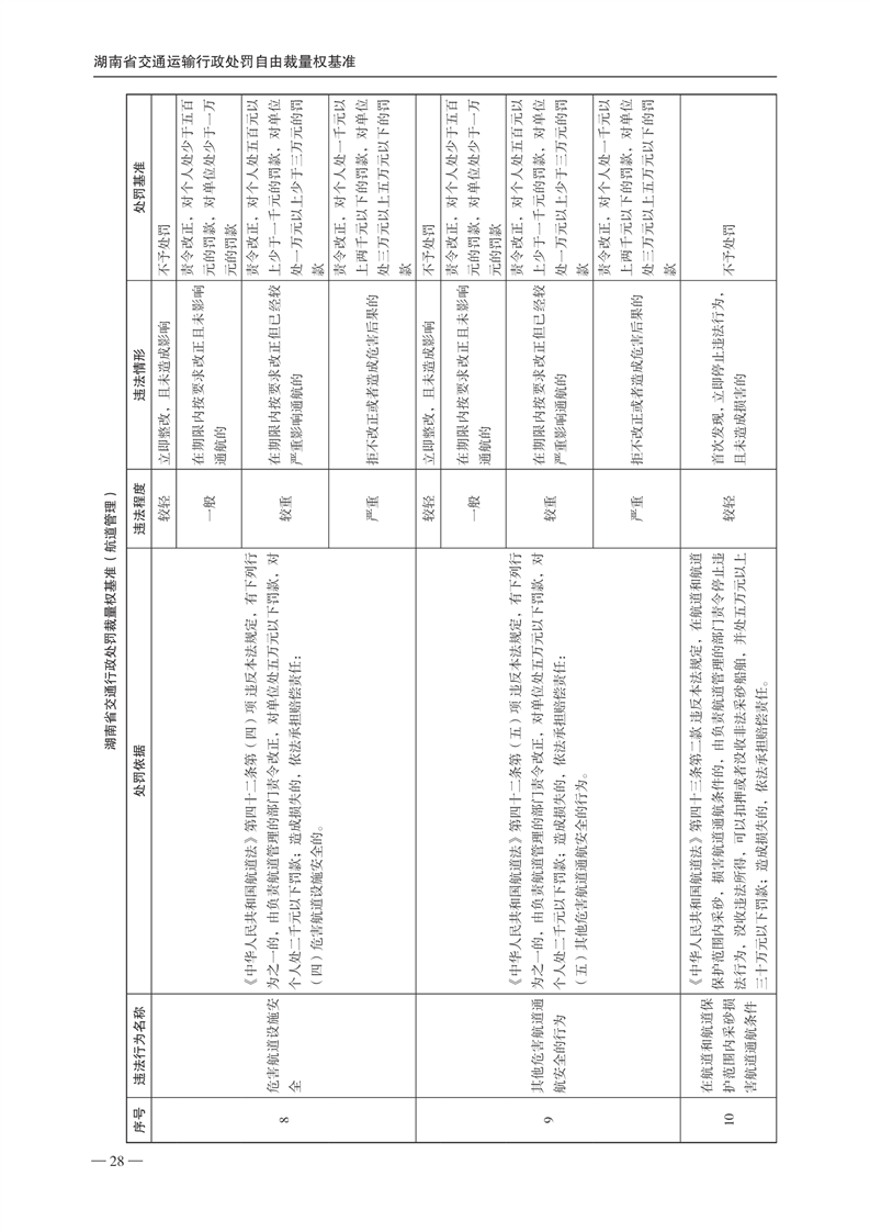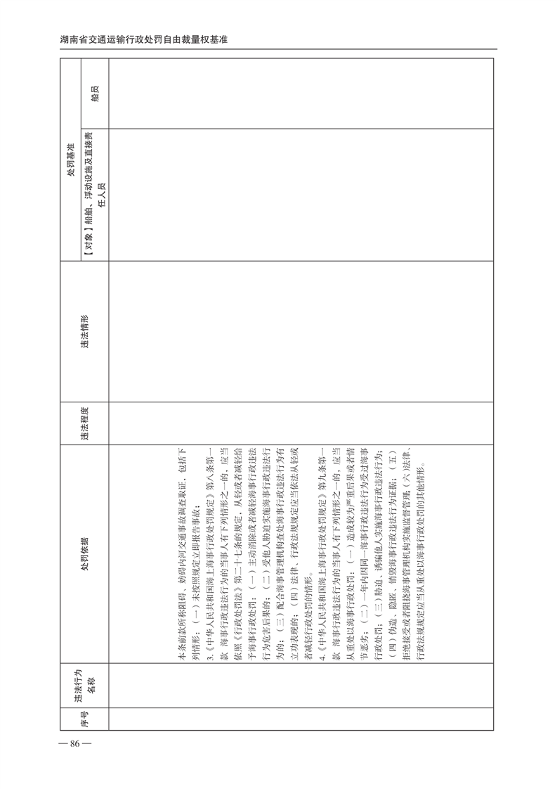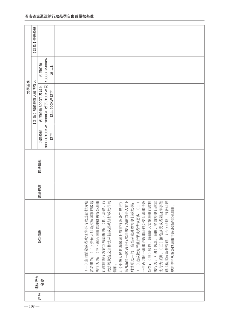 关于印发《湖南省交通运输行政处罚自由裁量权基准》和《湖南省交通运输行政处罚自由裁量权基准实施办法》的通知(下册)