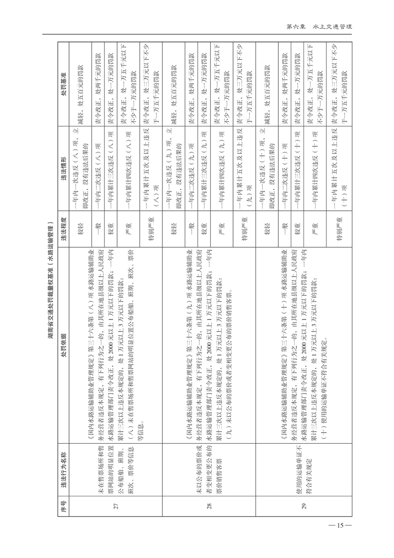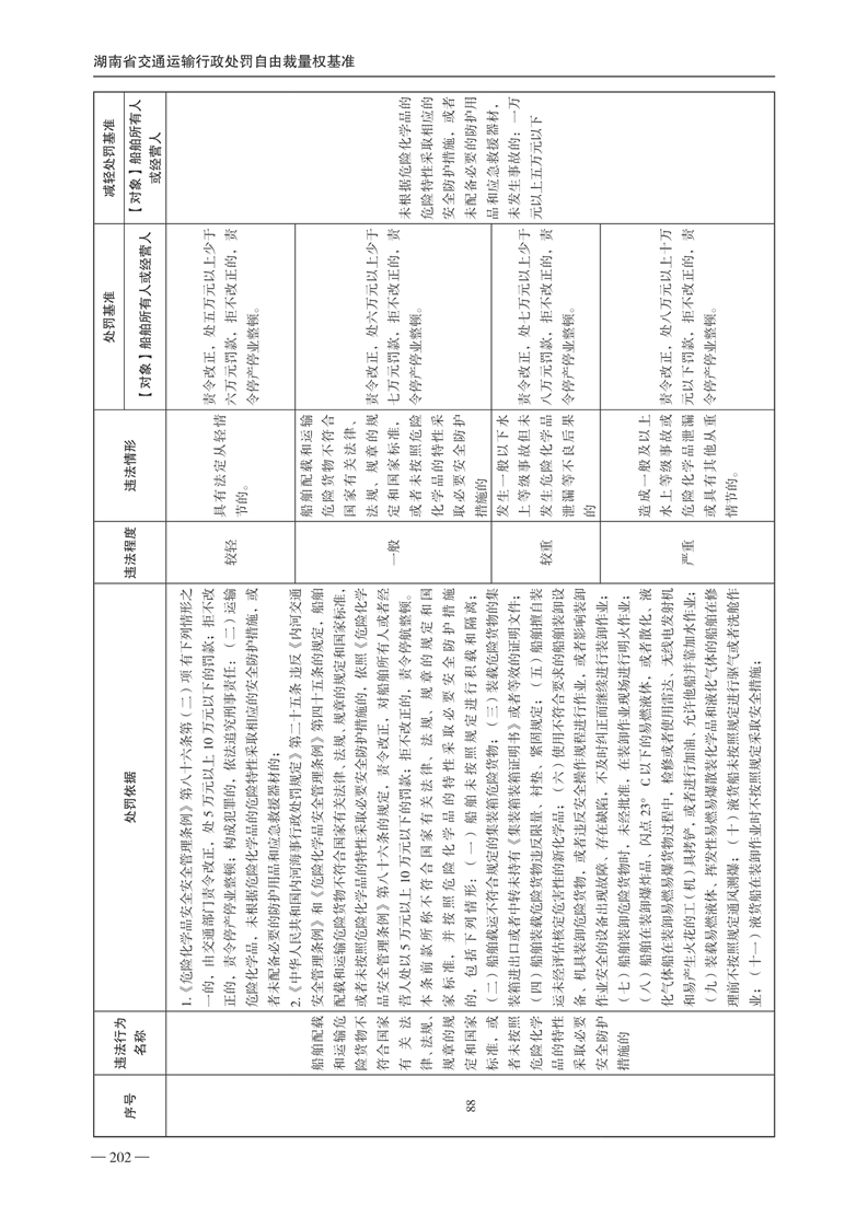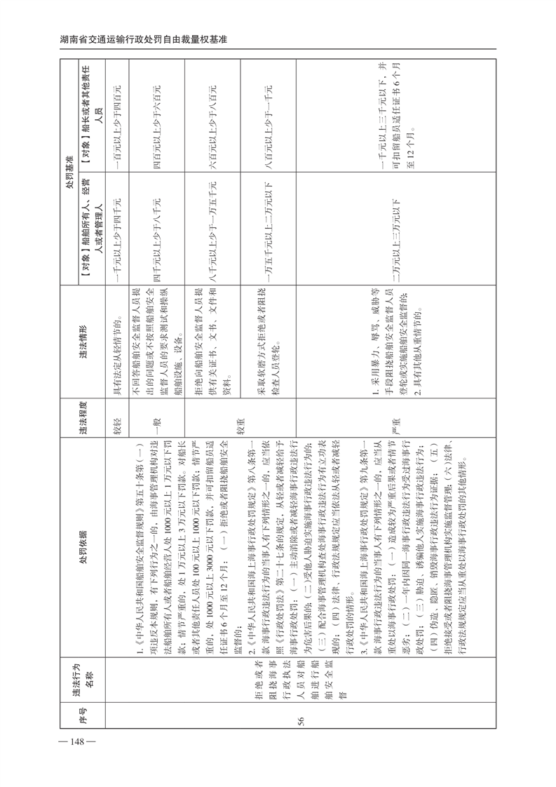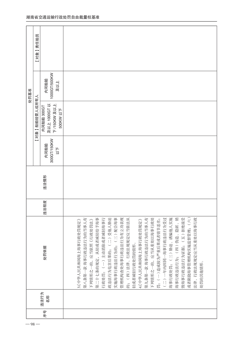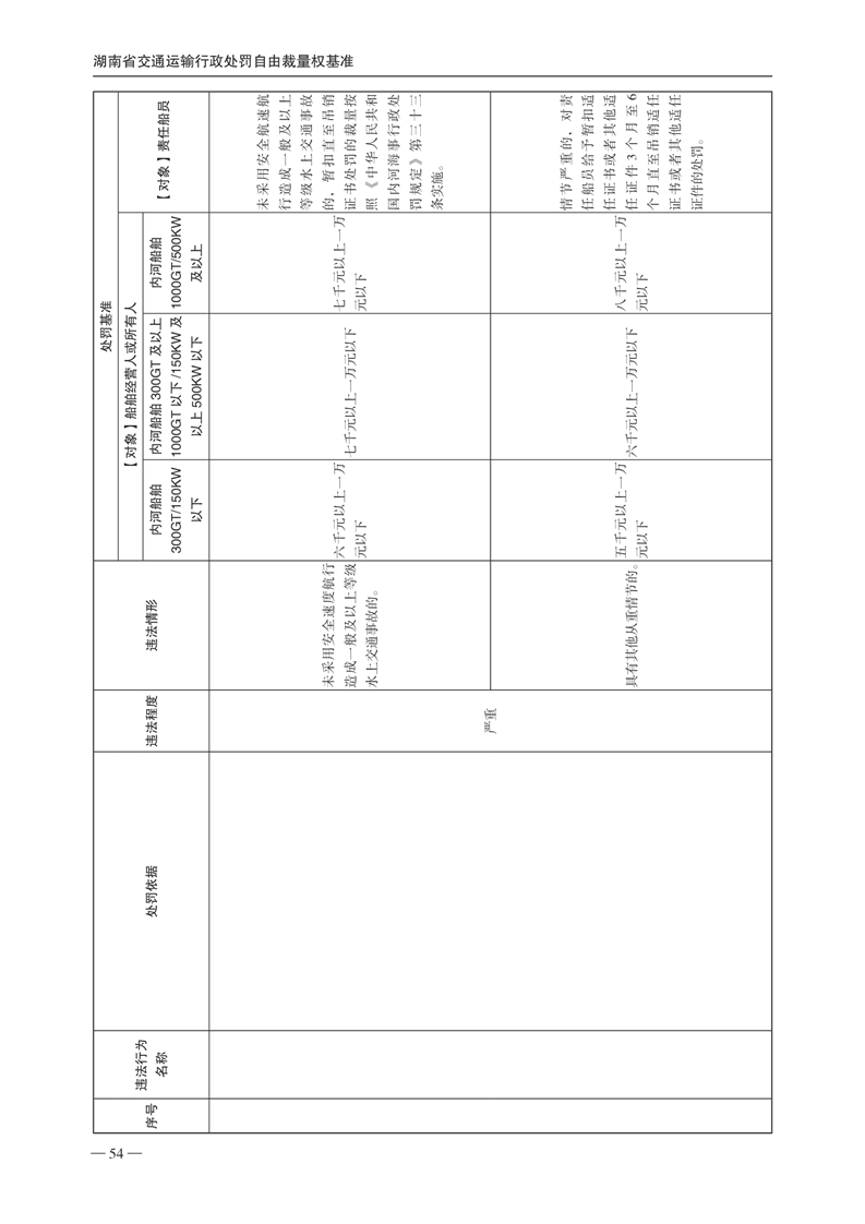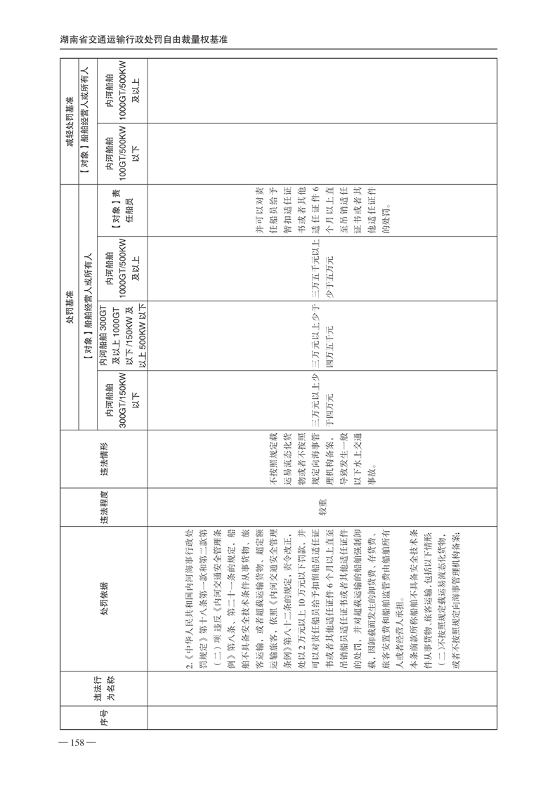 关于印发《湖南省交通运输行政处罚自由裁量权基准》和《湖南省交通运输行政处罚自由裁量权基准实施办法》的通知(下册)
