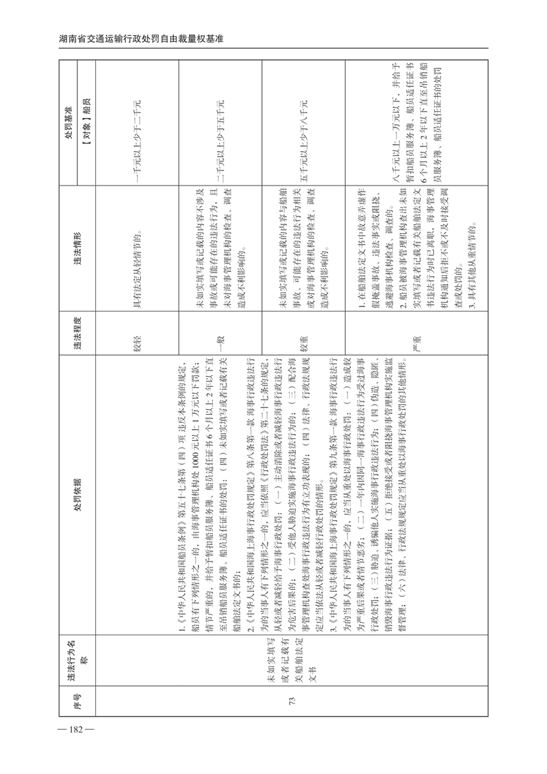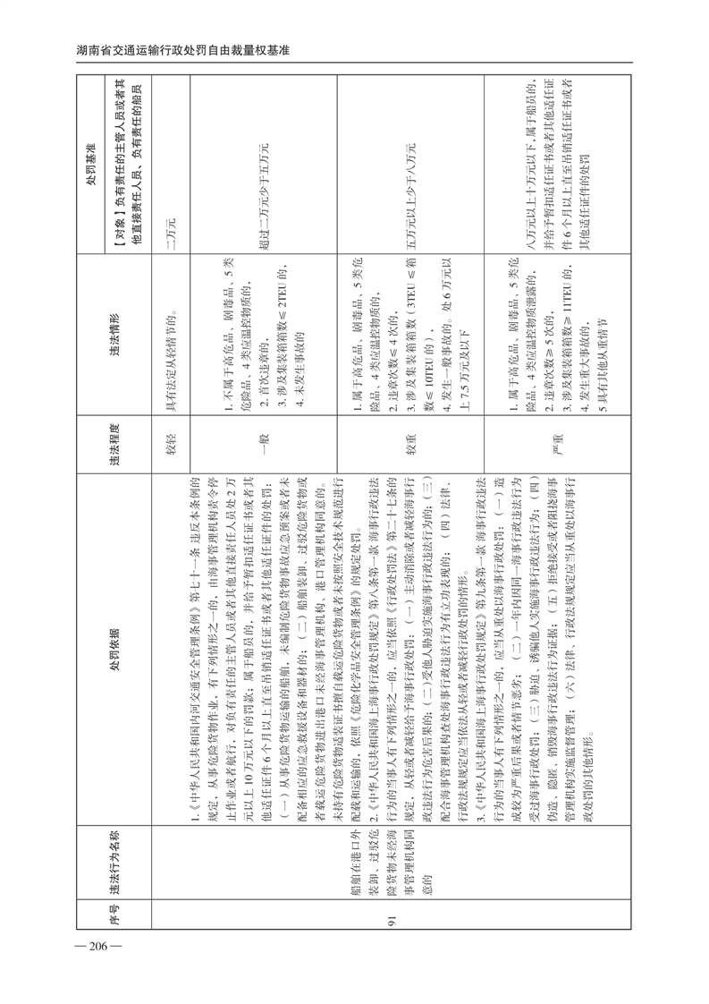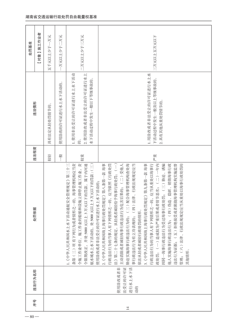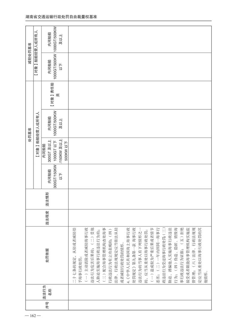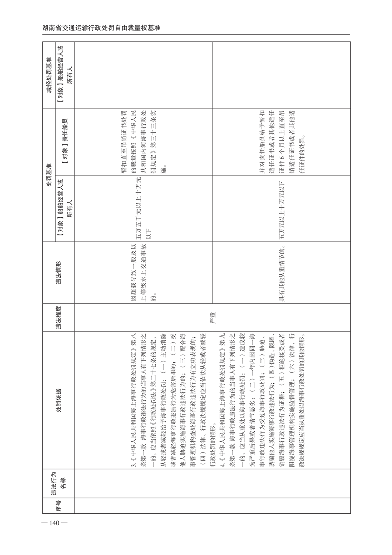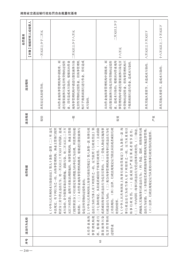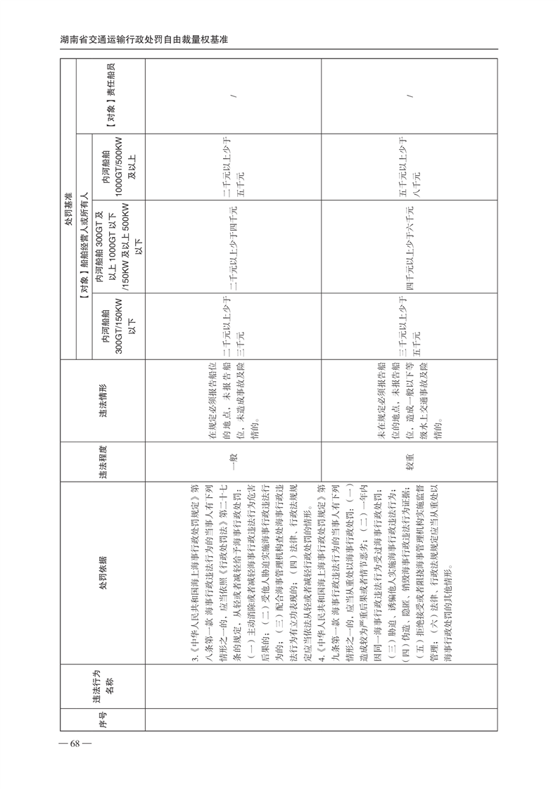 关于印发《湖南省交通运输行政处罚自由裁量权基准》和《湖南省交通运输行政处罚自由裁量权基准实施办法》的通知(下册)