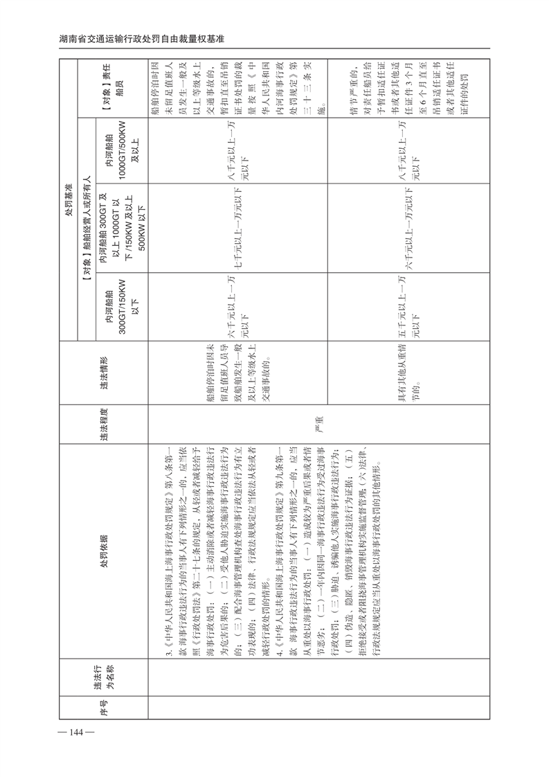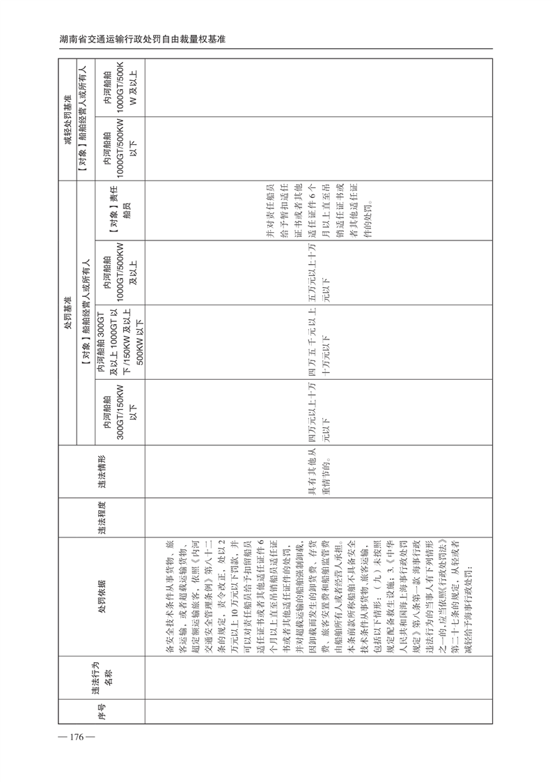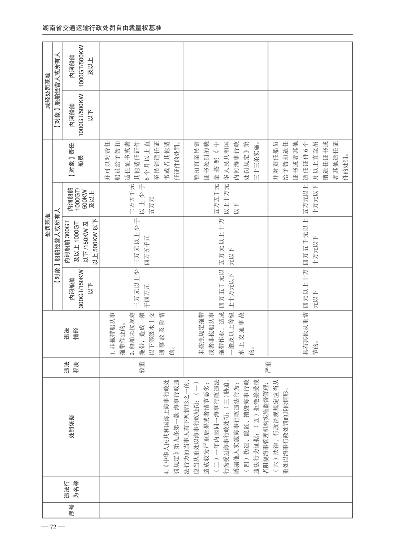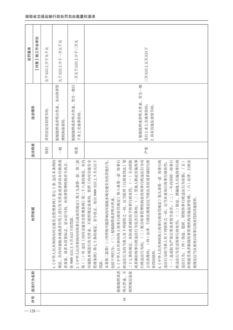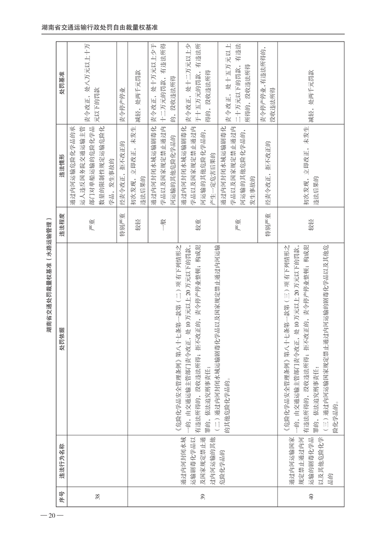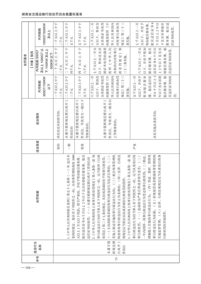 关于印发《湖南省交通运输行政处罚自由裁量权基准》和《湖南省交通运输行政处罚自由裁量权基准实施办法》的通知(下册)