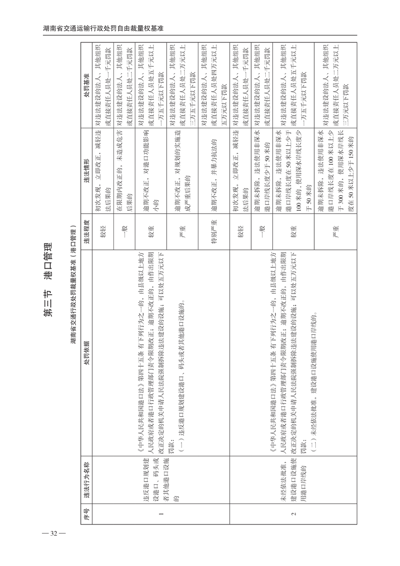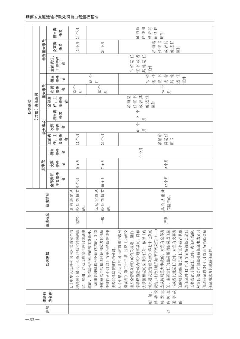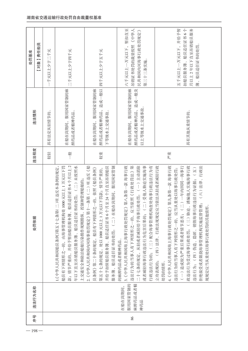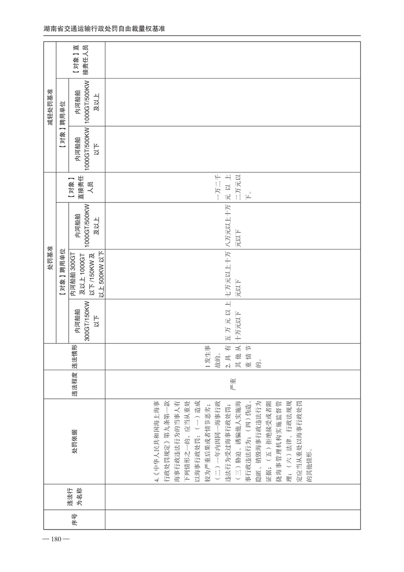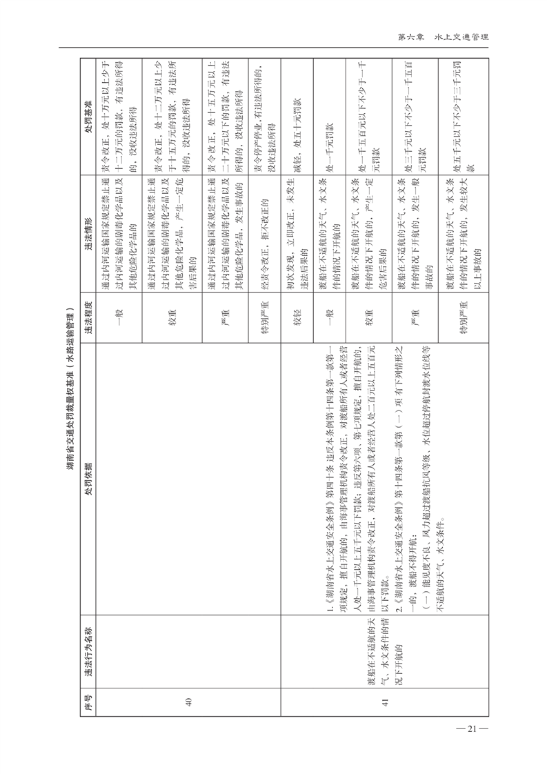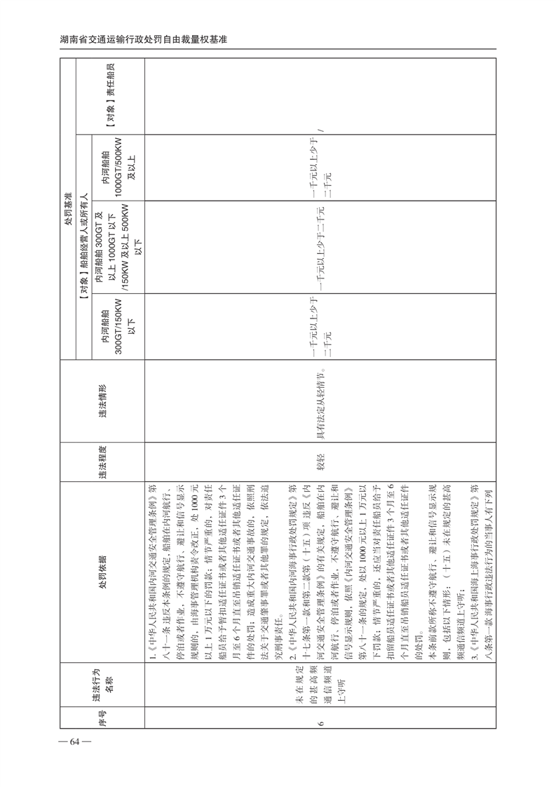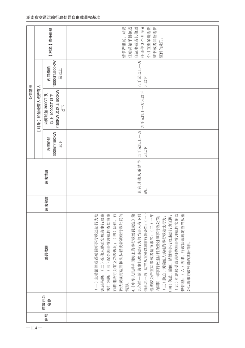 关于印发《湖南省交通运输行政处罚自由裁量权基准》和《湖南省交通运输行政处罚自由裁量权基准实施办法》的通知(下册)