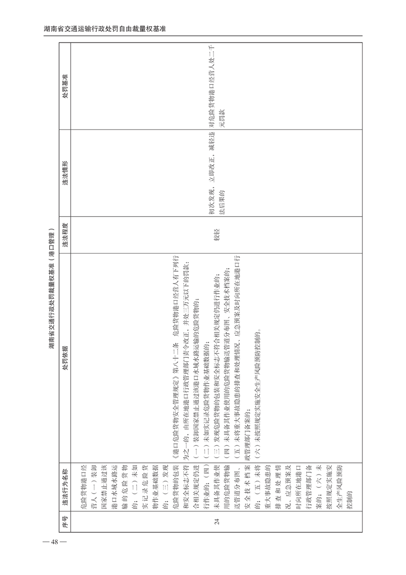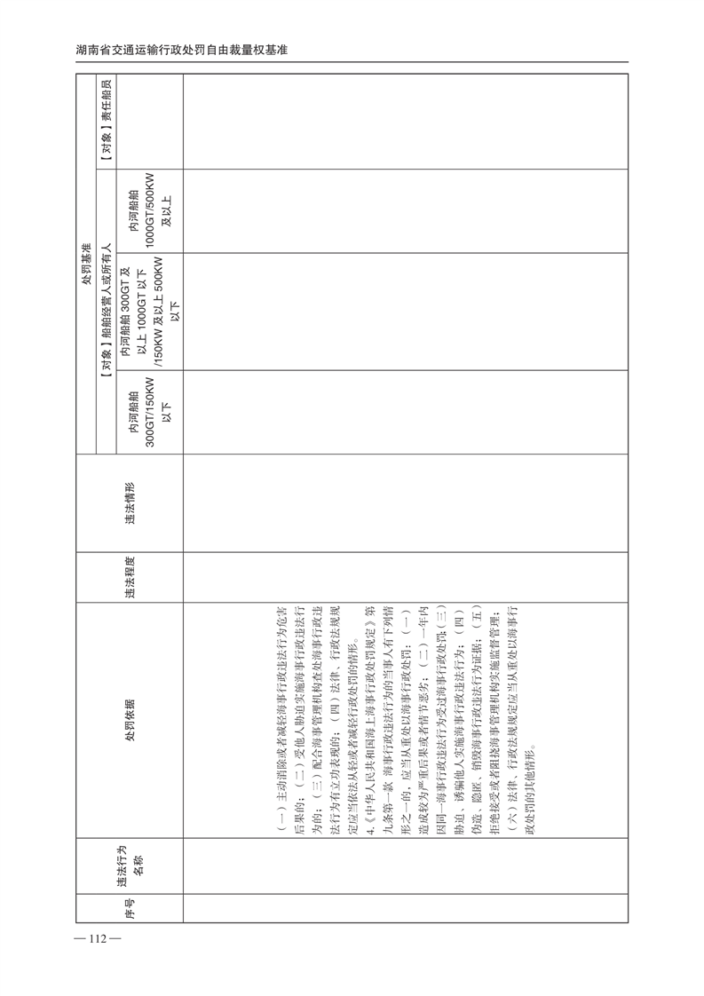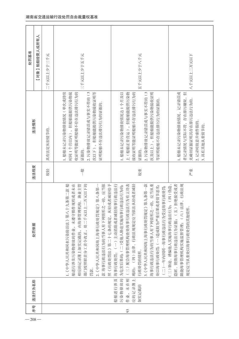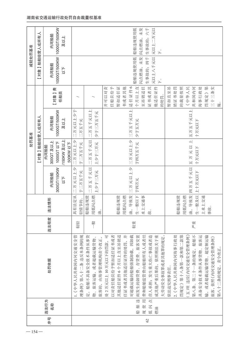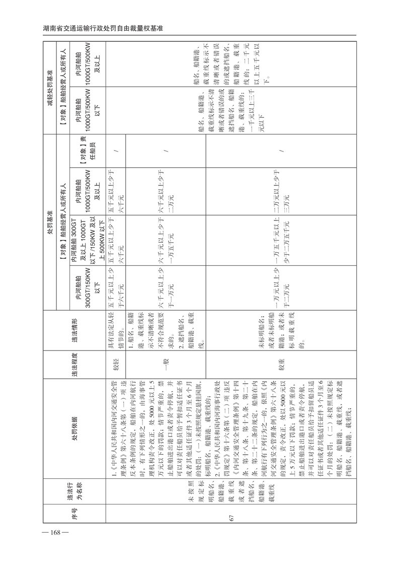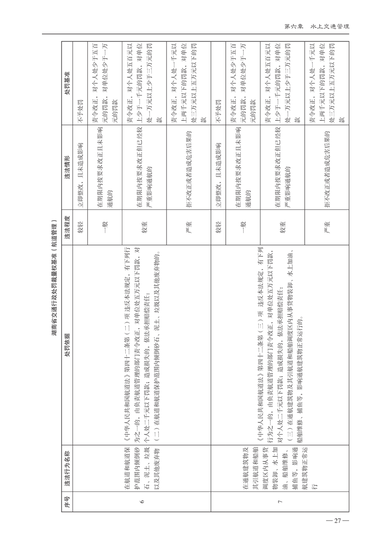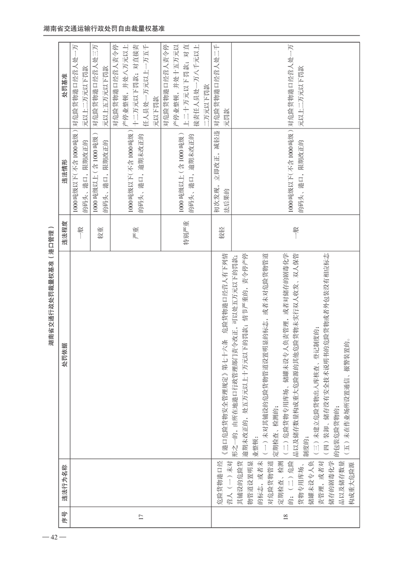 关于印发《湖南省交通运输行政处罚自由裁量权基准》和《湖南省交通运输行政处罚自由裁量权基准实施办法》的通知(下册)