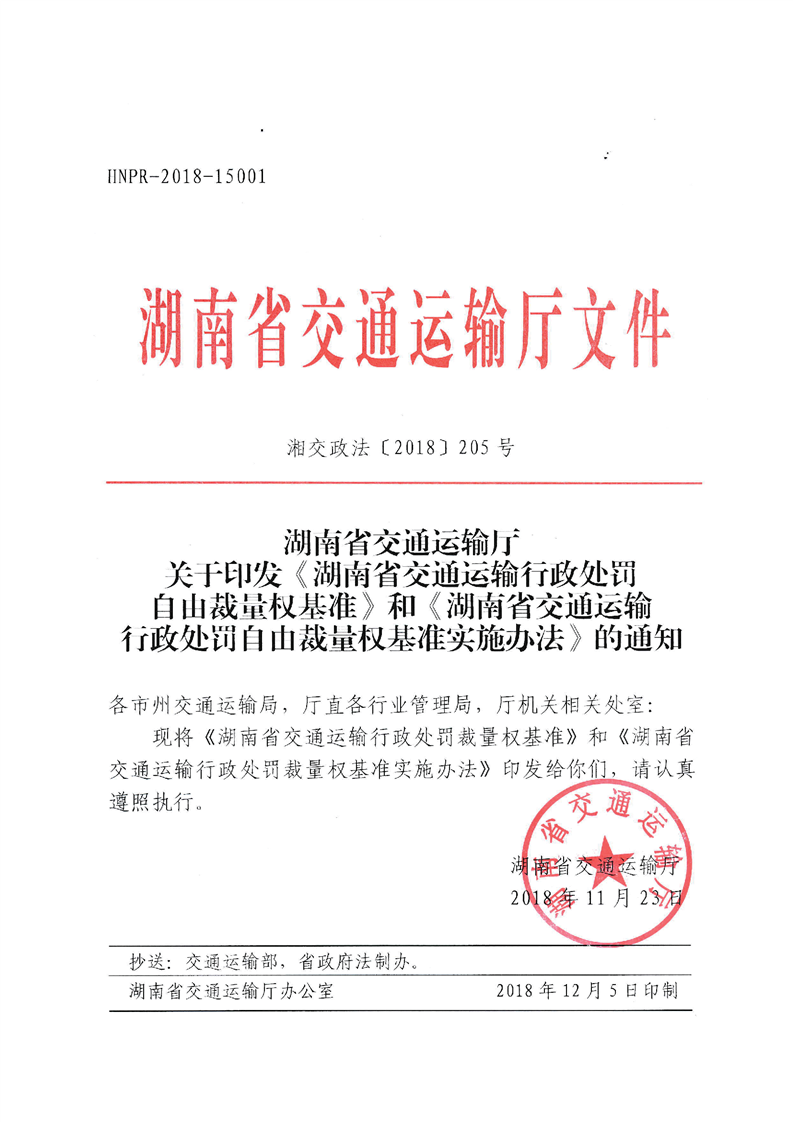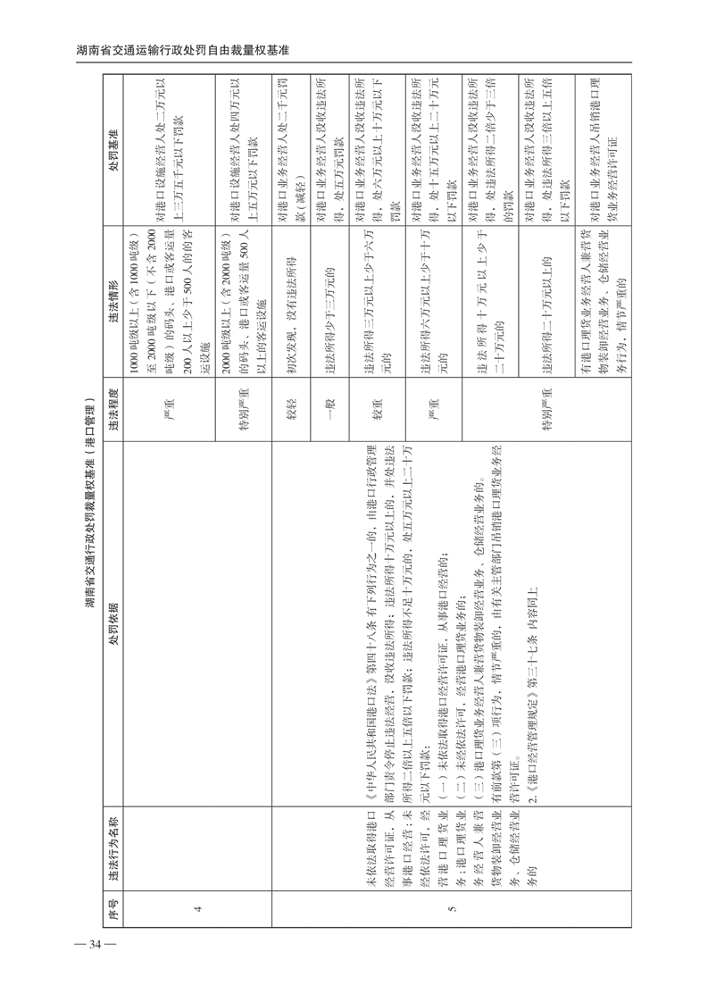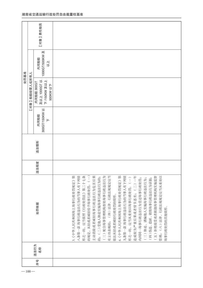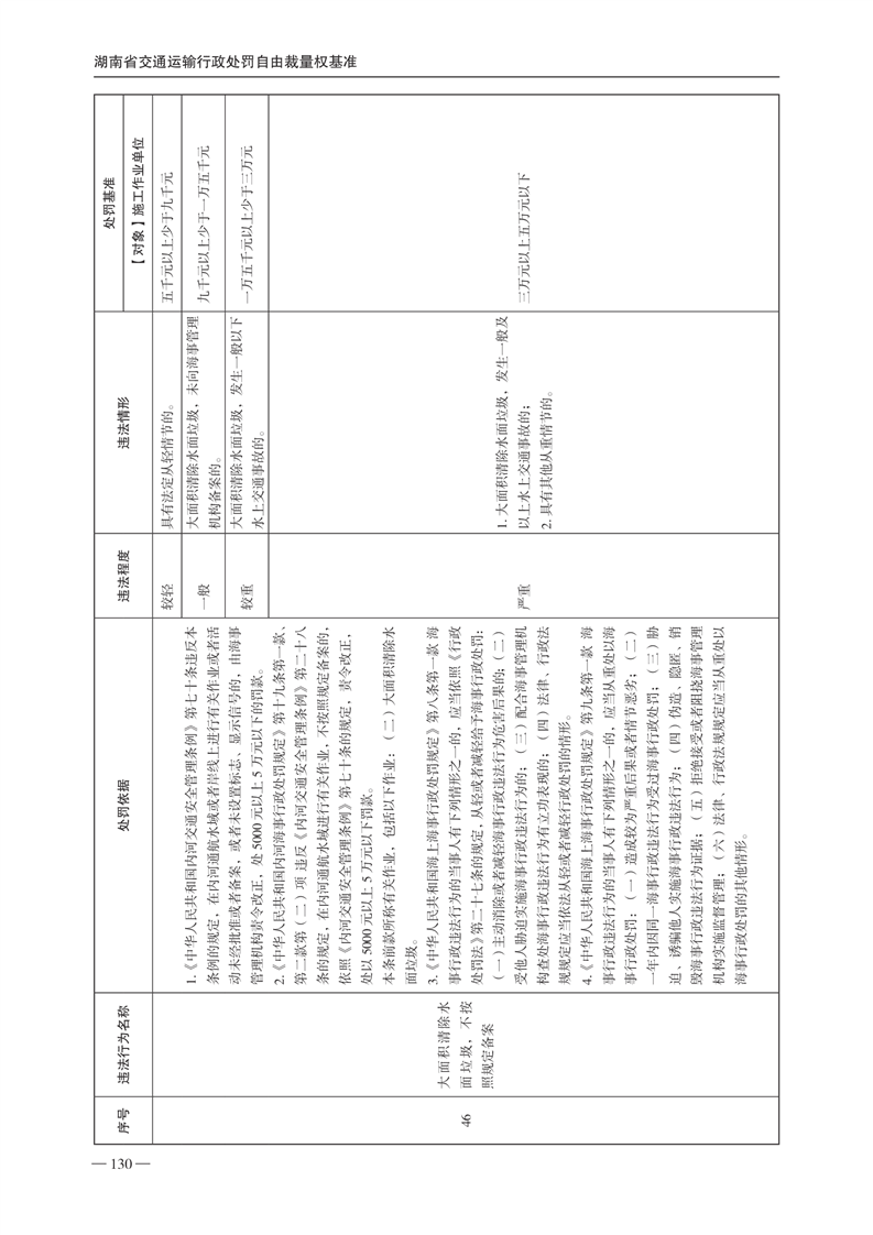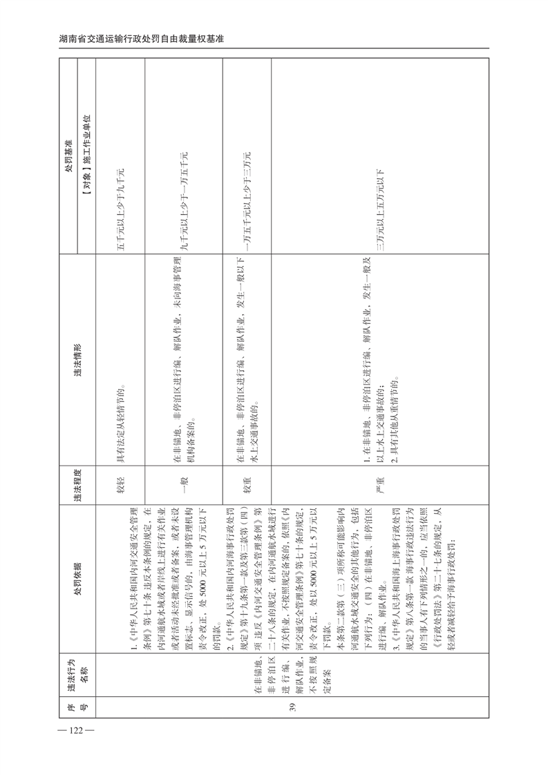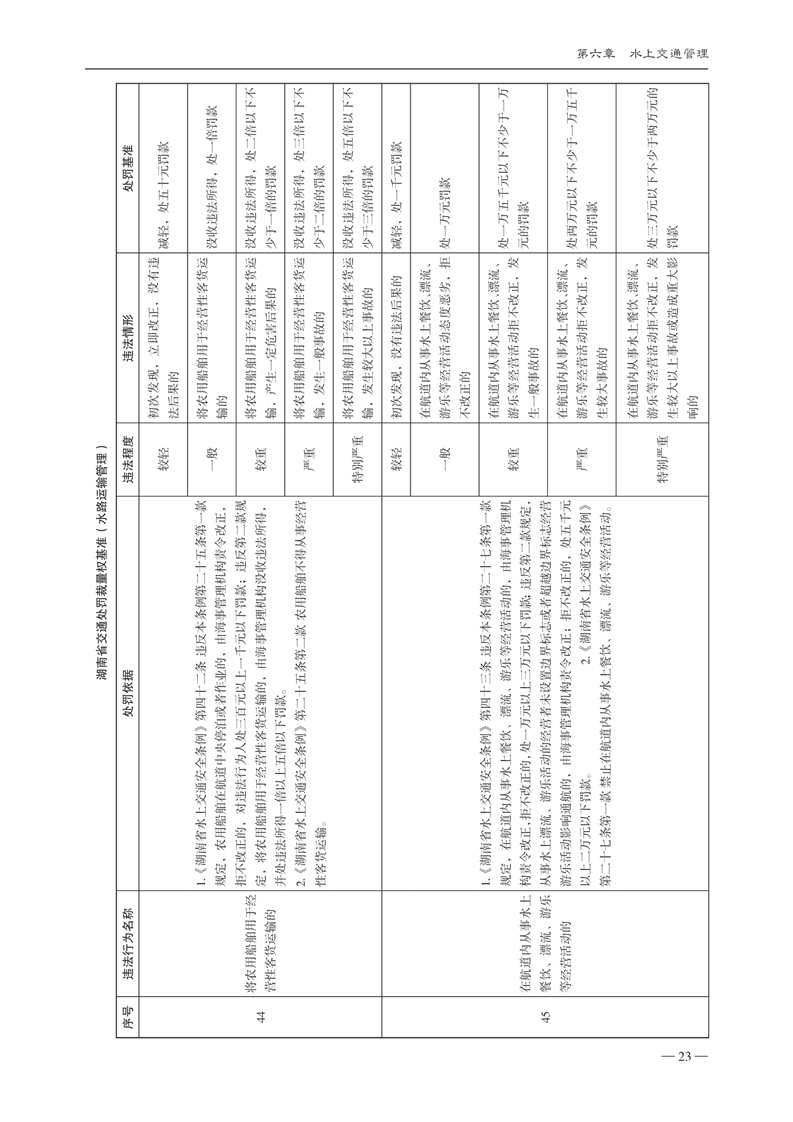 关于印发《湖南省交通运输行政处罚自由裁量权基准》和《湖南省交通运输行政处罚自由裁量权基准实施办法》的通知(下册)