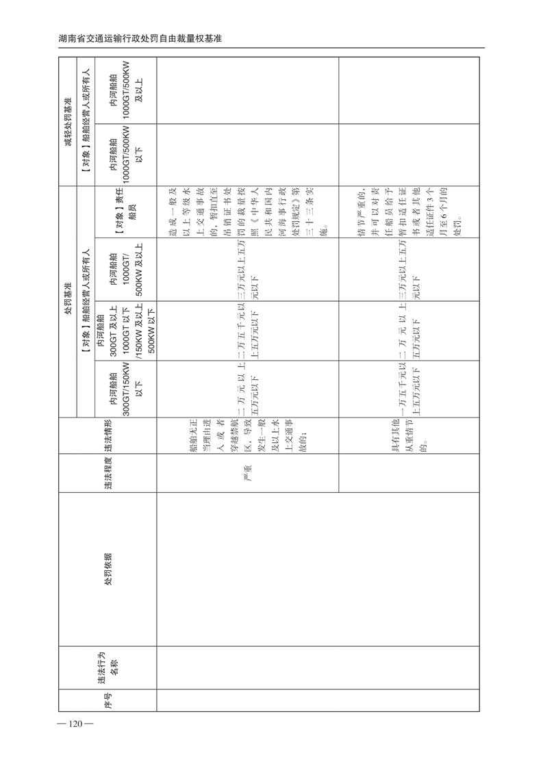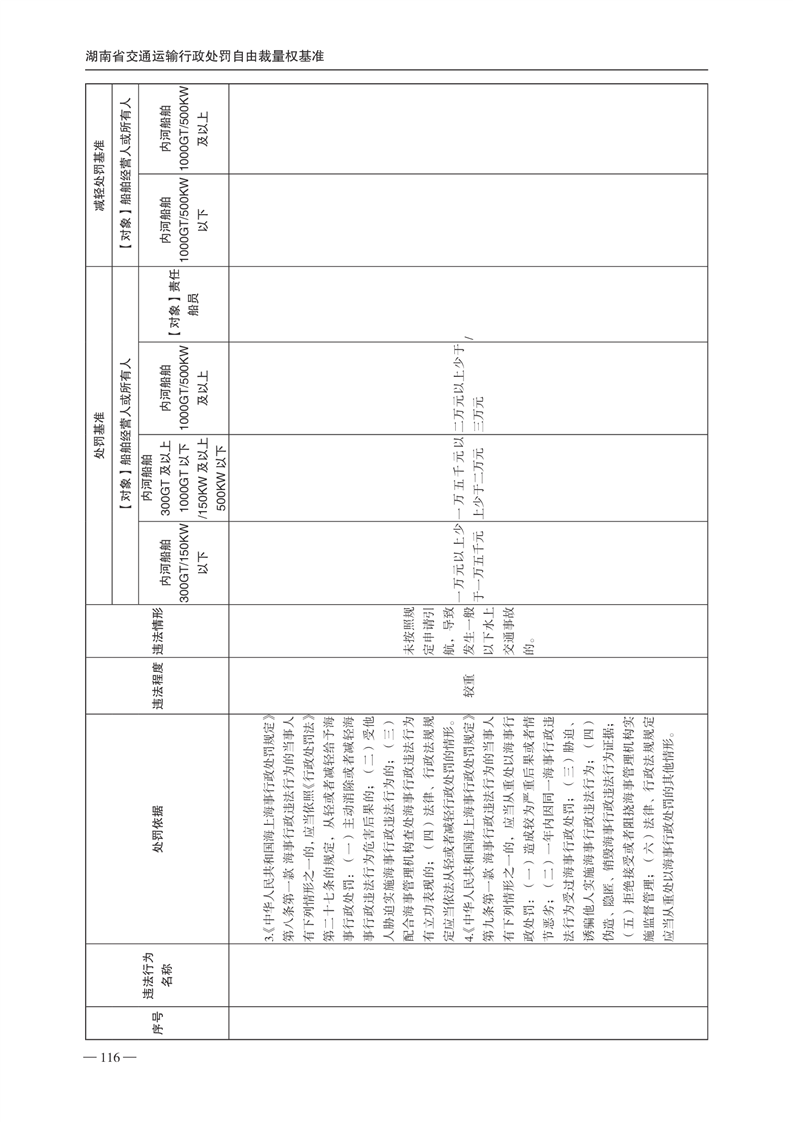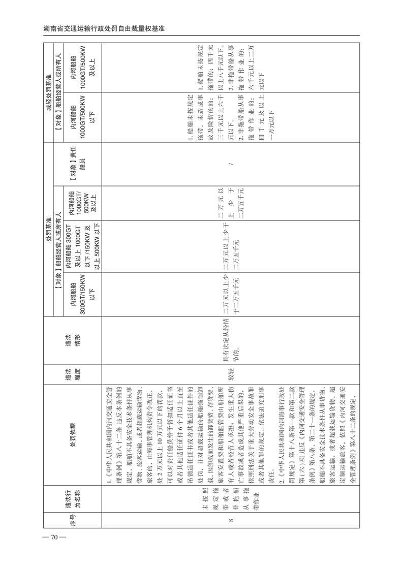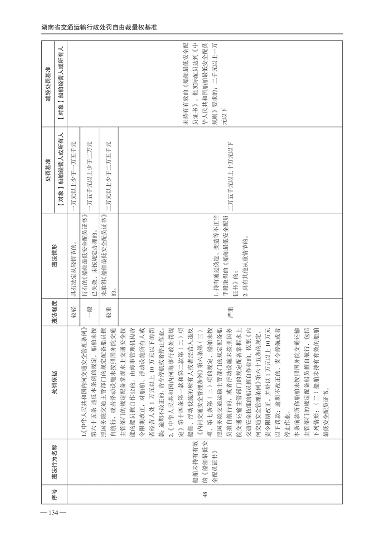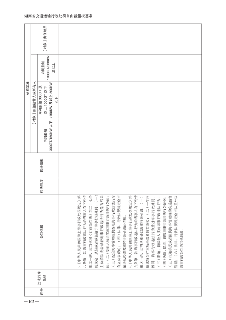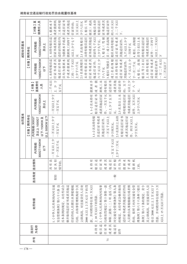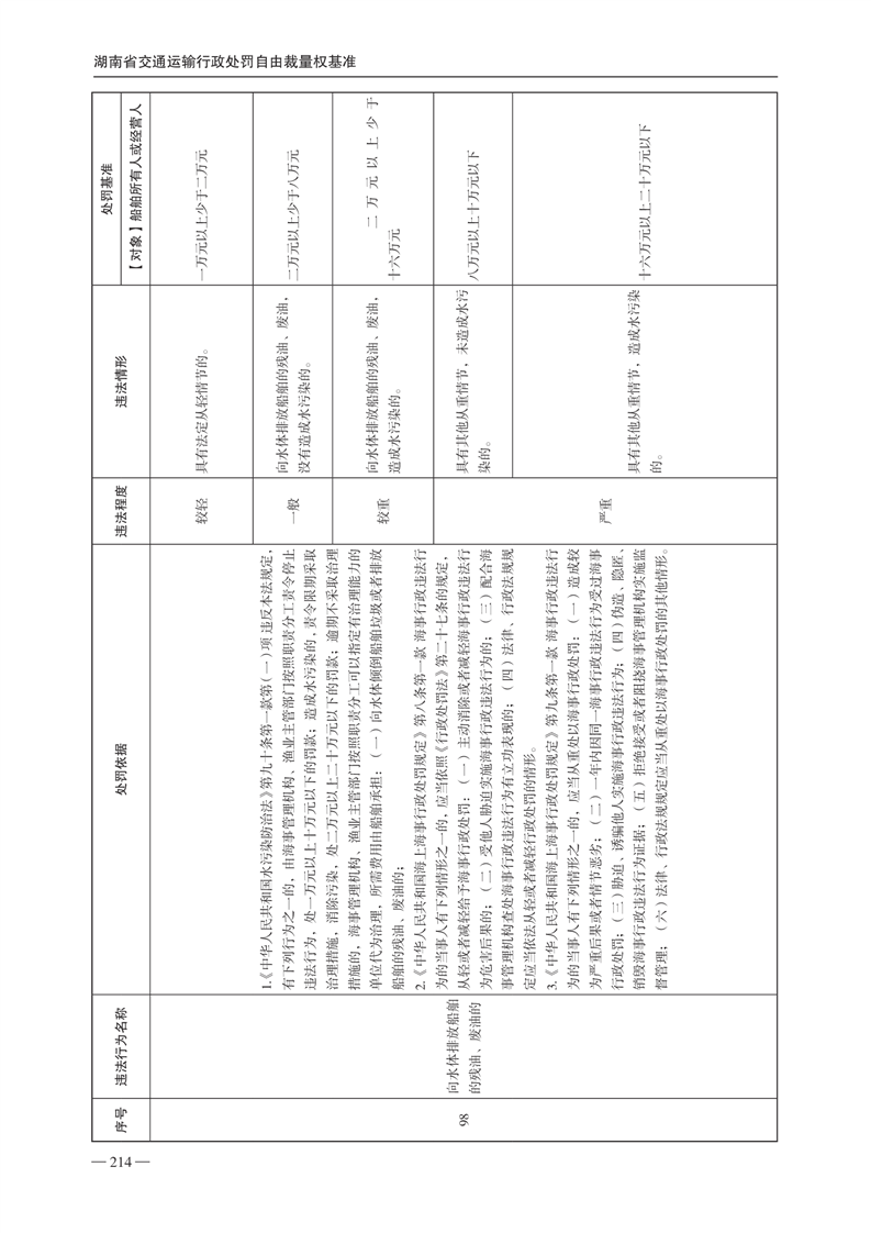 关于印发《湖南省交通运输行政处罚自由裁量权基准》和《湖南省交通运输行政处罚自由裁量权基准实施办法》的通知(下册)