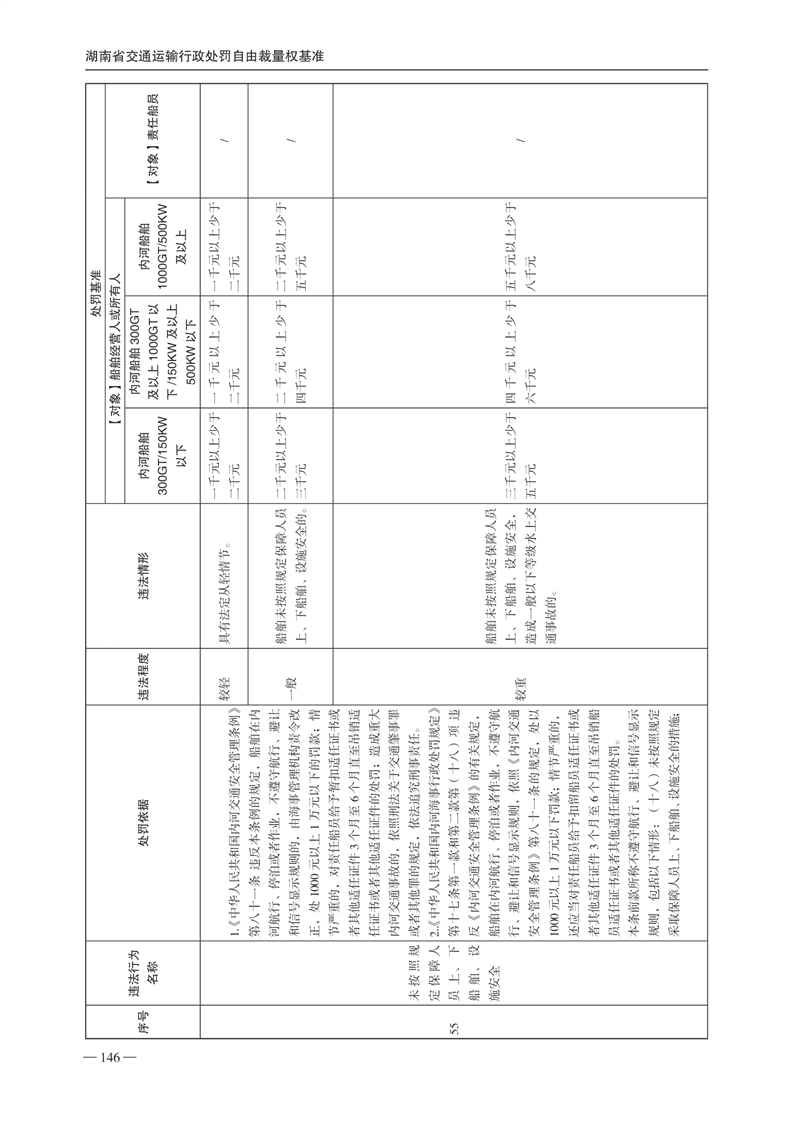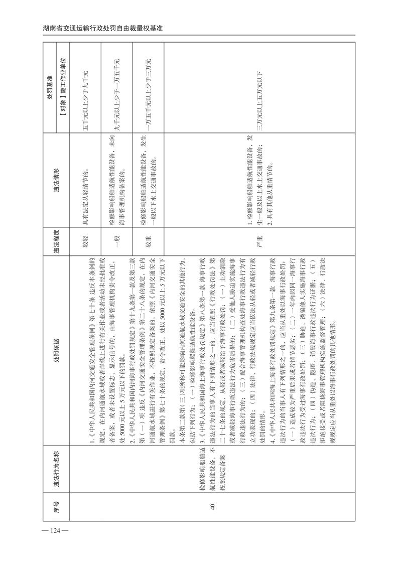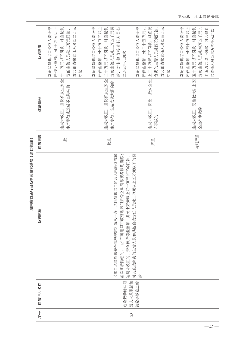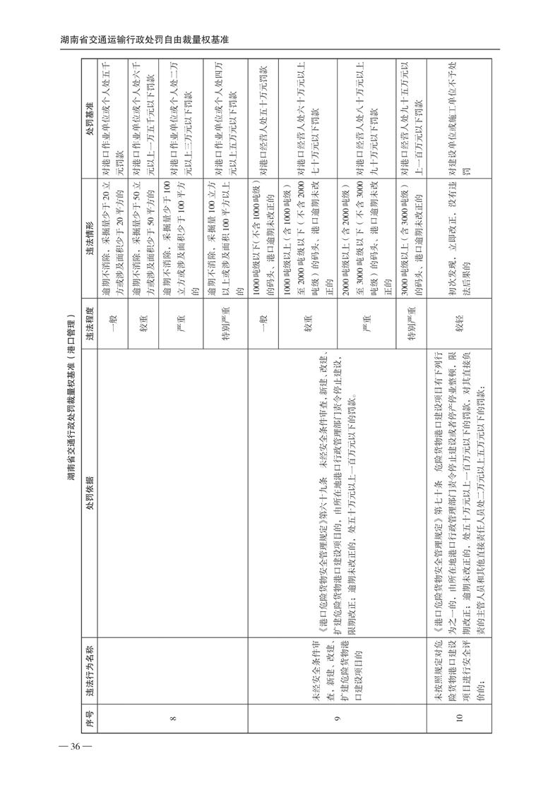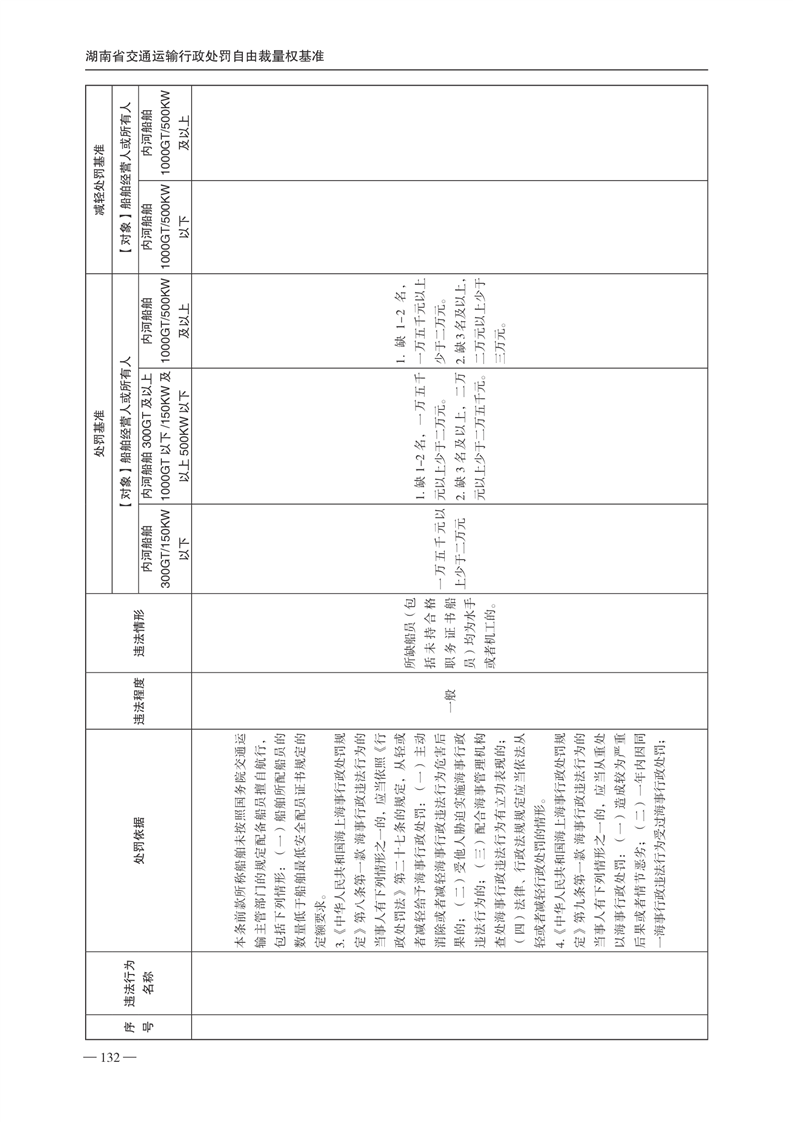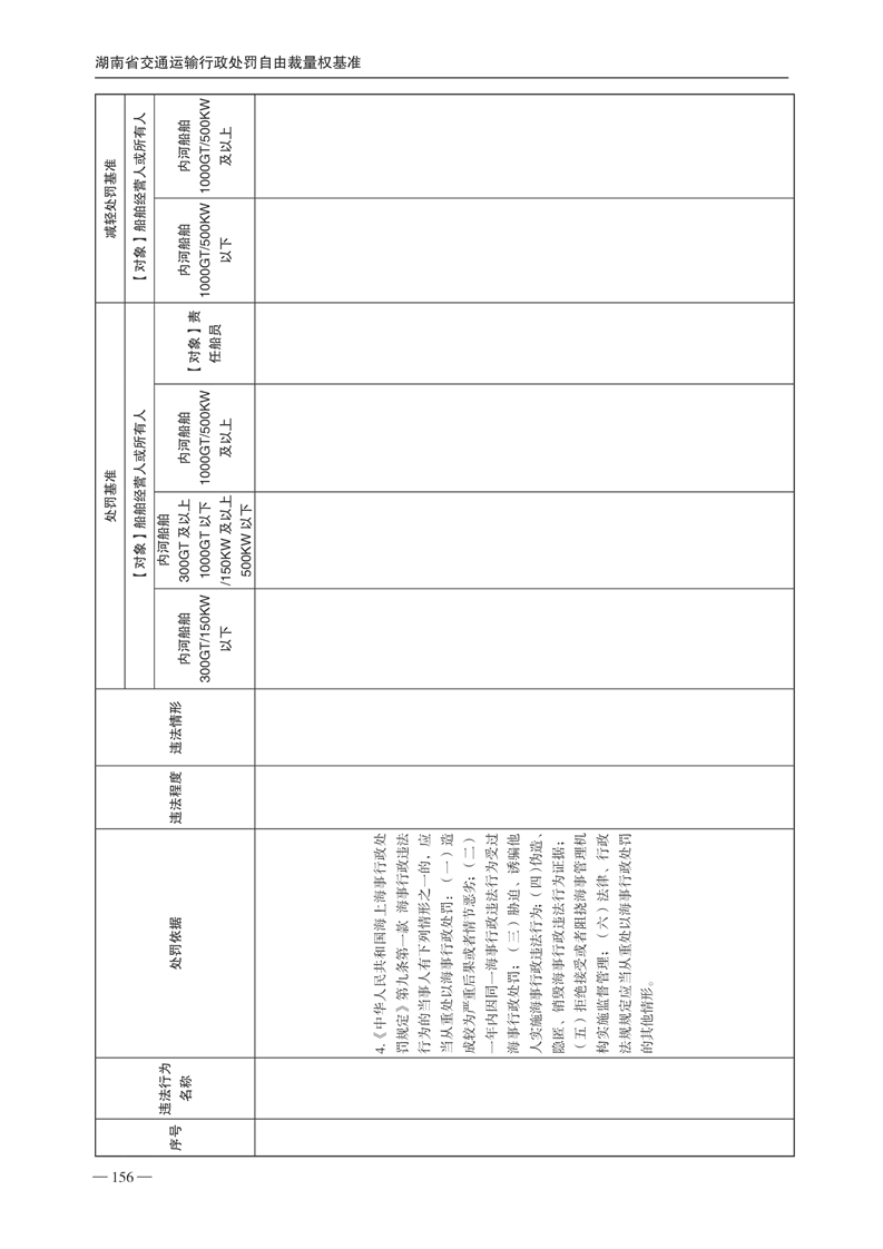 关于印发《湖南省交通运输行政处罚自由裁量权基准》和《湖南省交通运输行政处罚自由裁量权基准实施办法》的通知(下册)