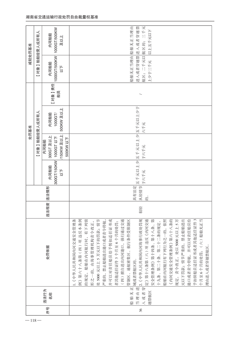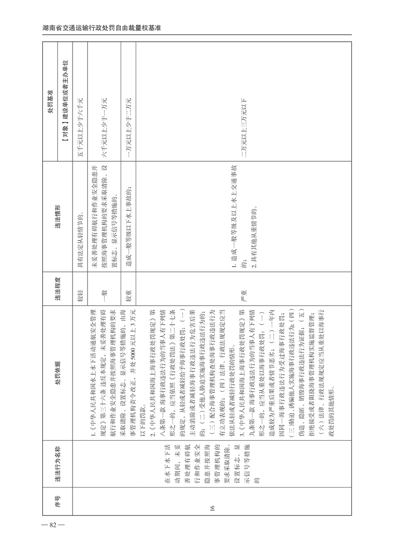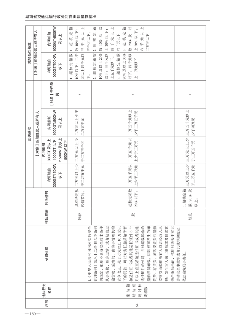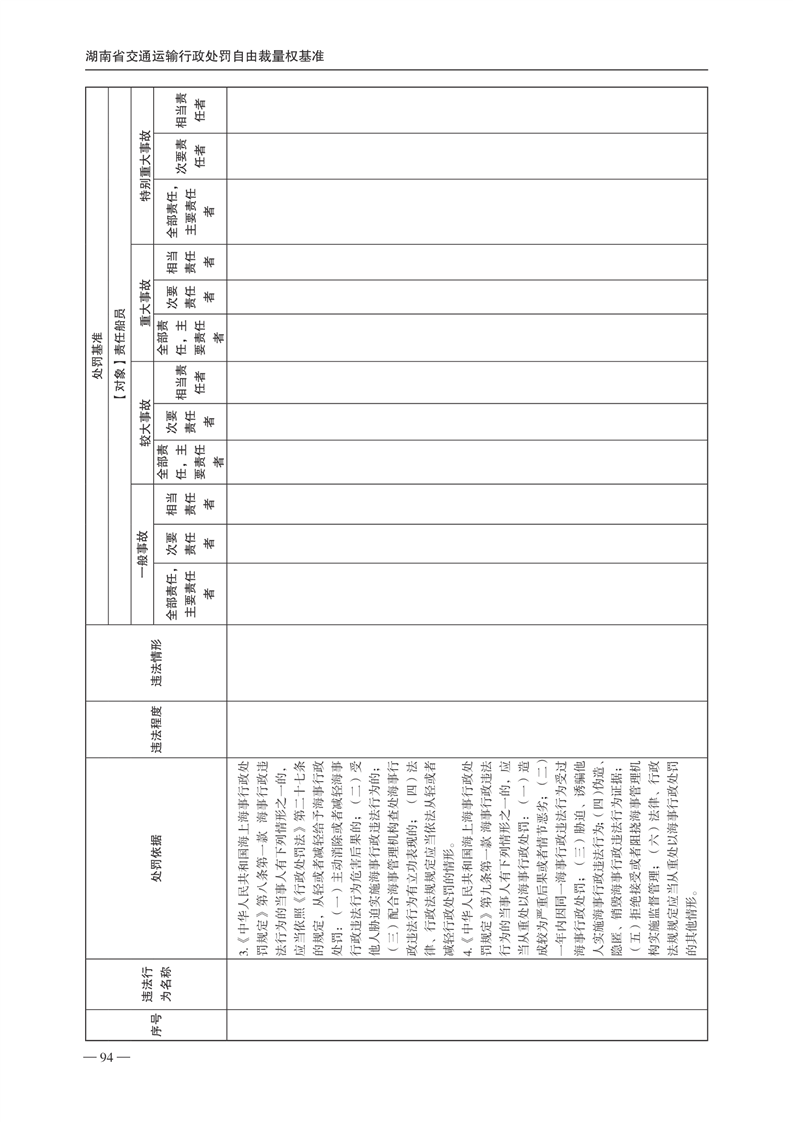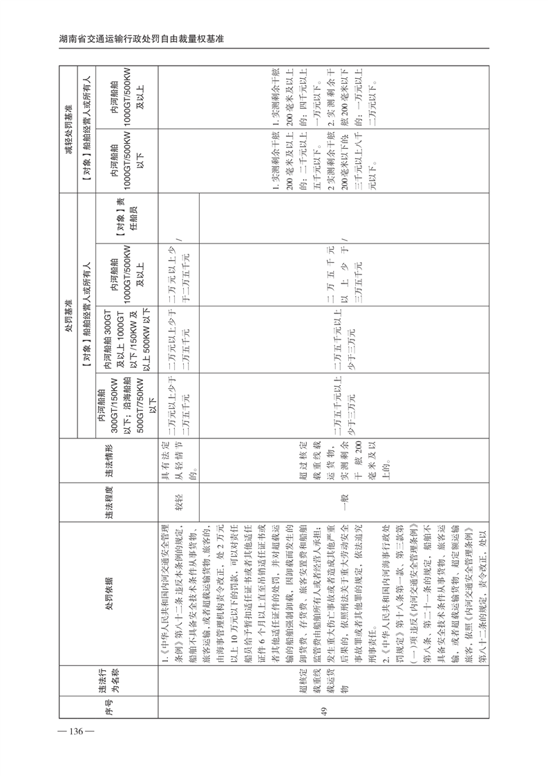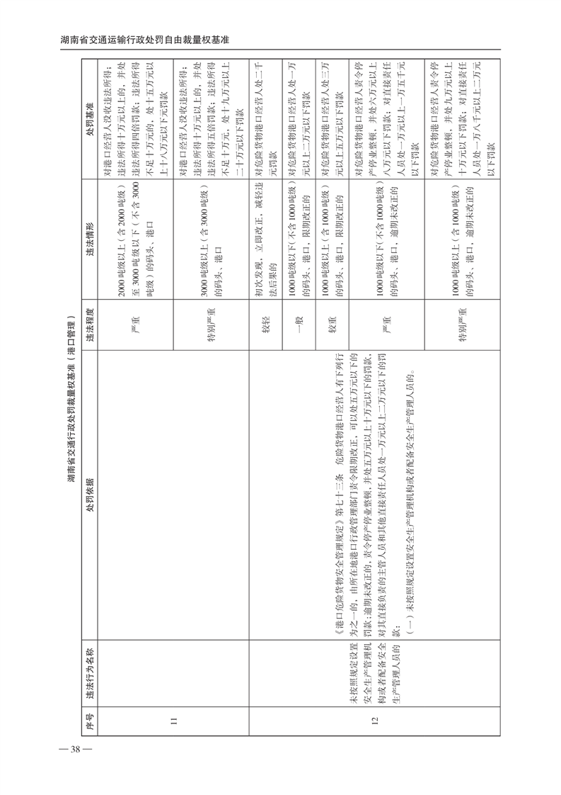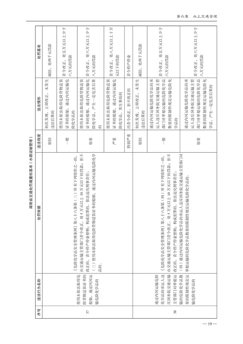 关于印发《湖南省交通运输行政处罚自由裁量权基准》和《湖南省交通运输行政处罚自由裁量权基准实施办法》的通知(下册)