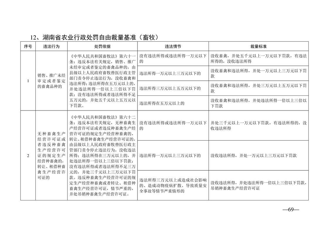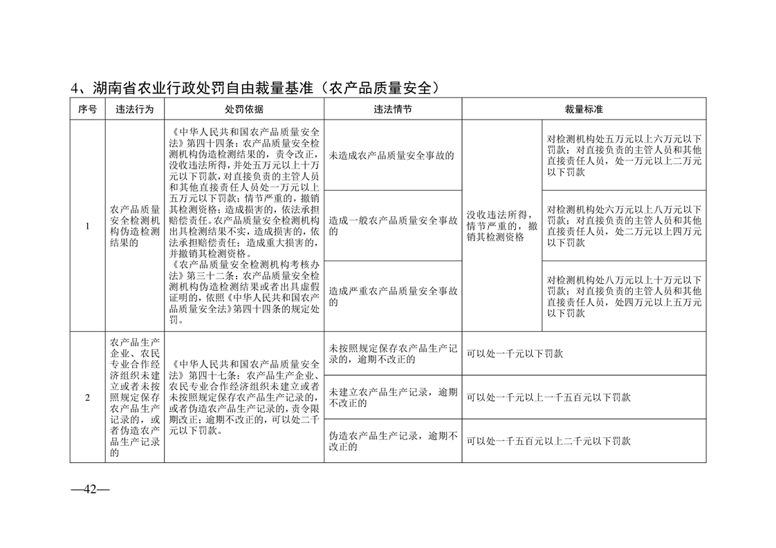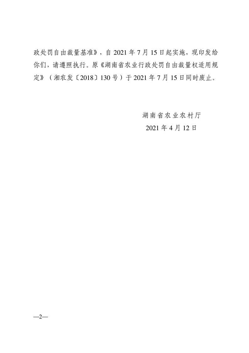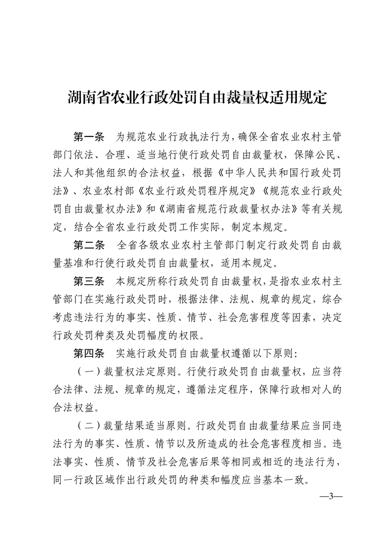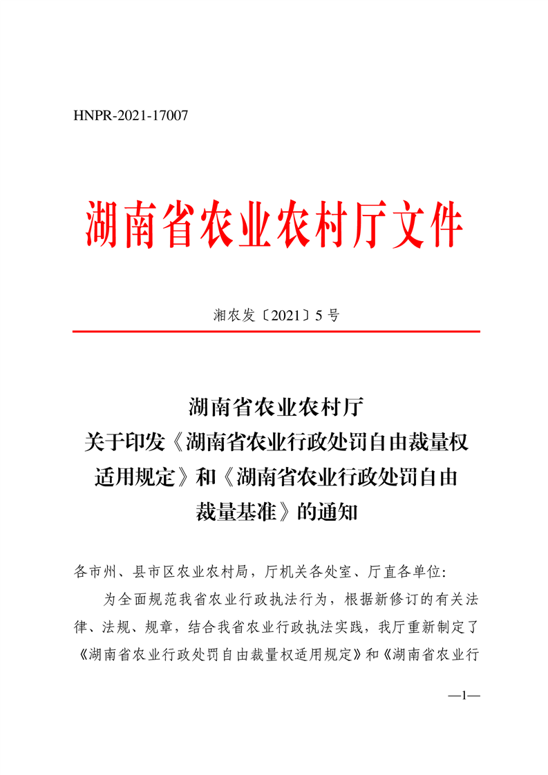 湖南省农业农村厅关于印发《湖南省农业行政处罚自由裁量权适用规定》和《湖南省农业行政处罚自由裁量基准》的通知
