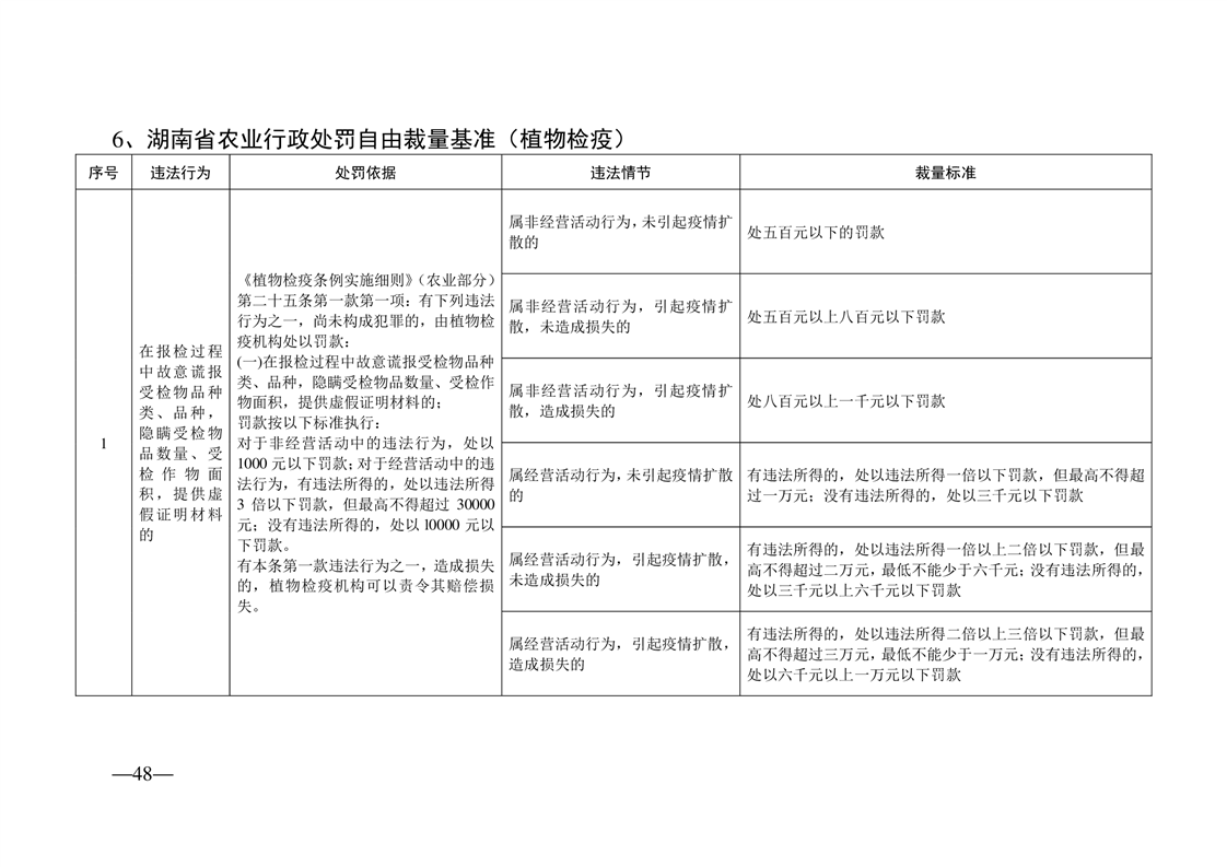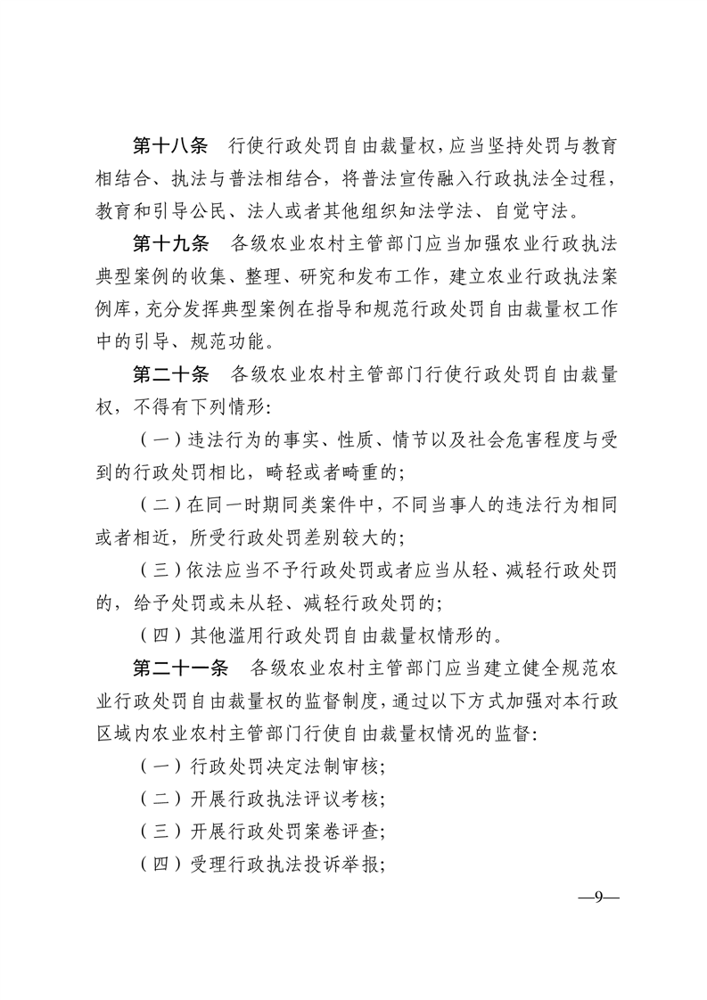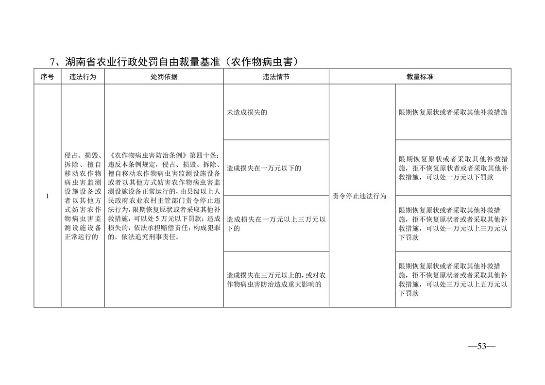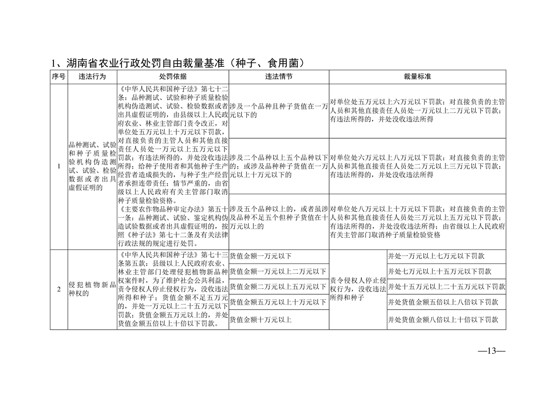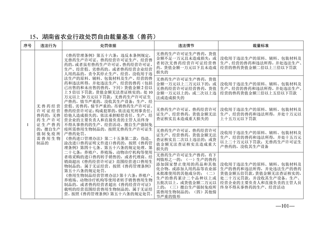 湖南省农业农村厅关于印发《湖南省农业行政处罚自由裁量权适用规定》和《湖南省农业行政处罚自由裁量基准》的通知