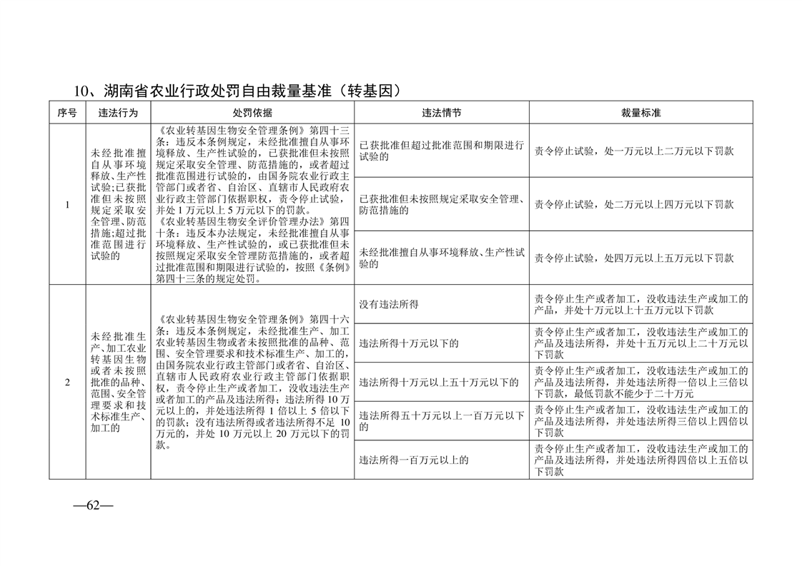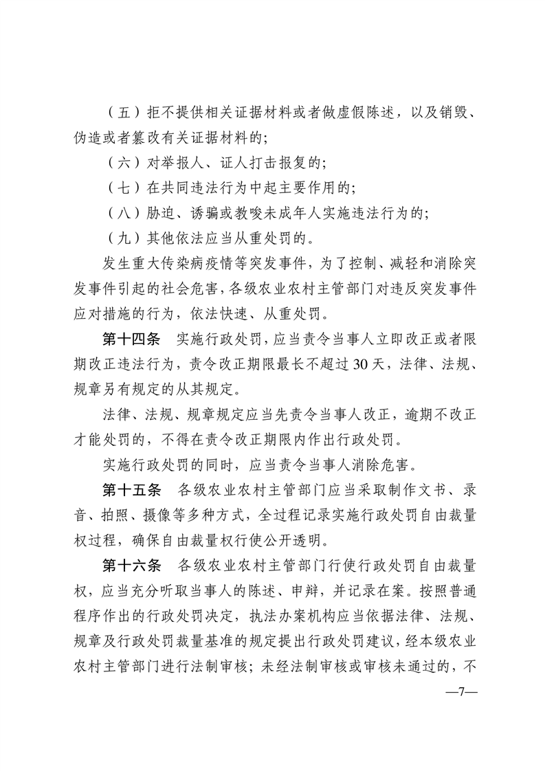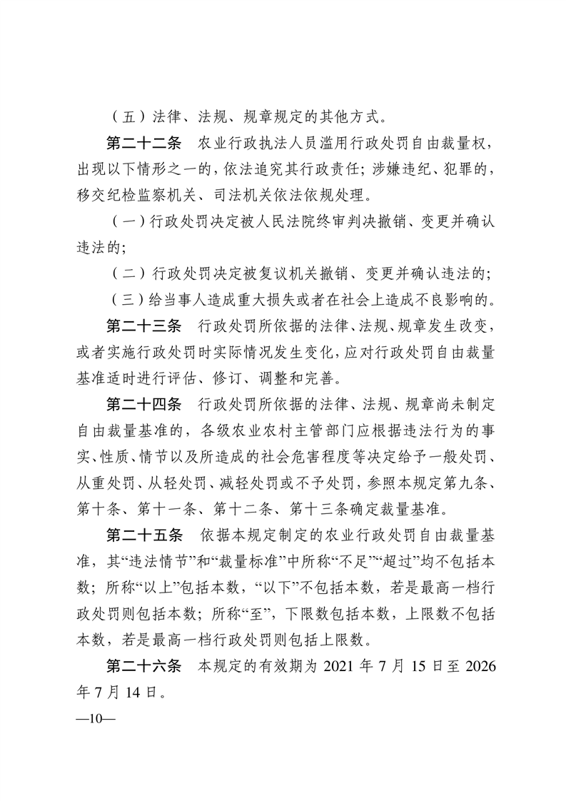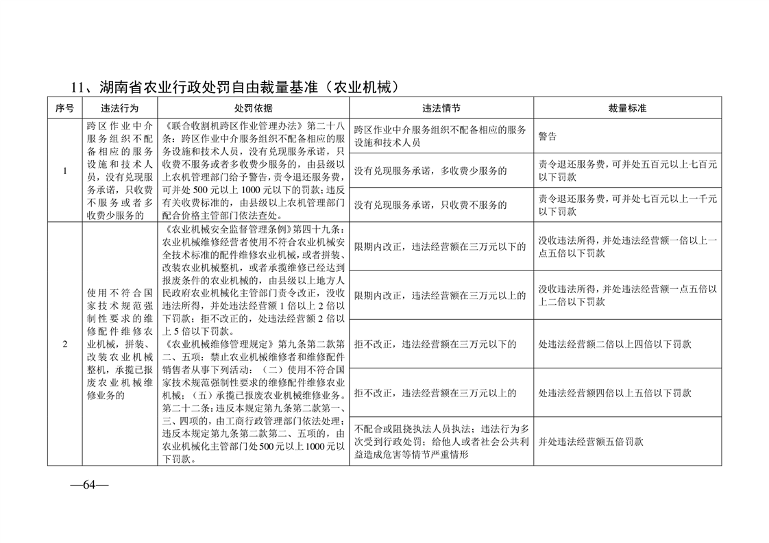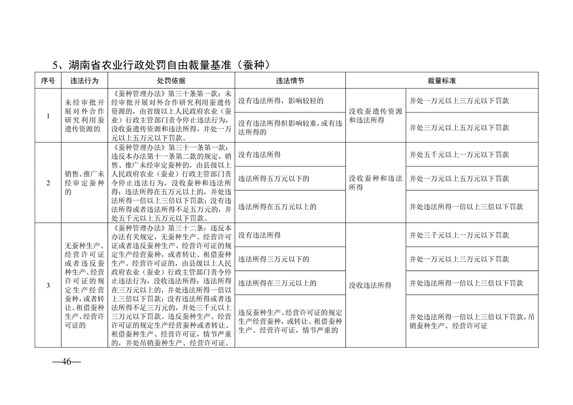 湖南省农业农村厅关于印发《湖南省农业行政处罚自由裁量权适用规定》和《湖南省农业行政处罚自由裁量基准》的通知