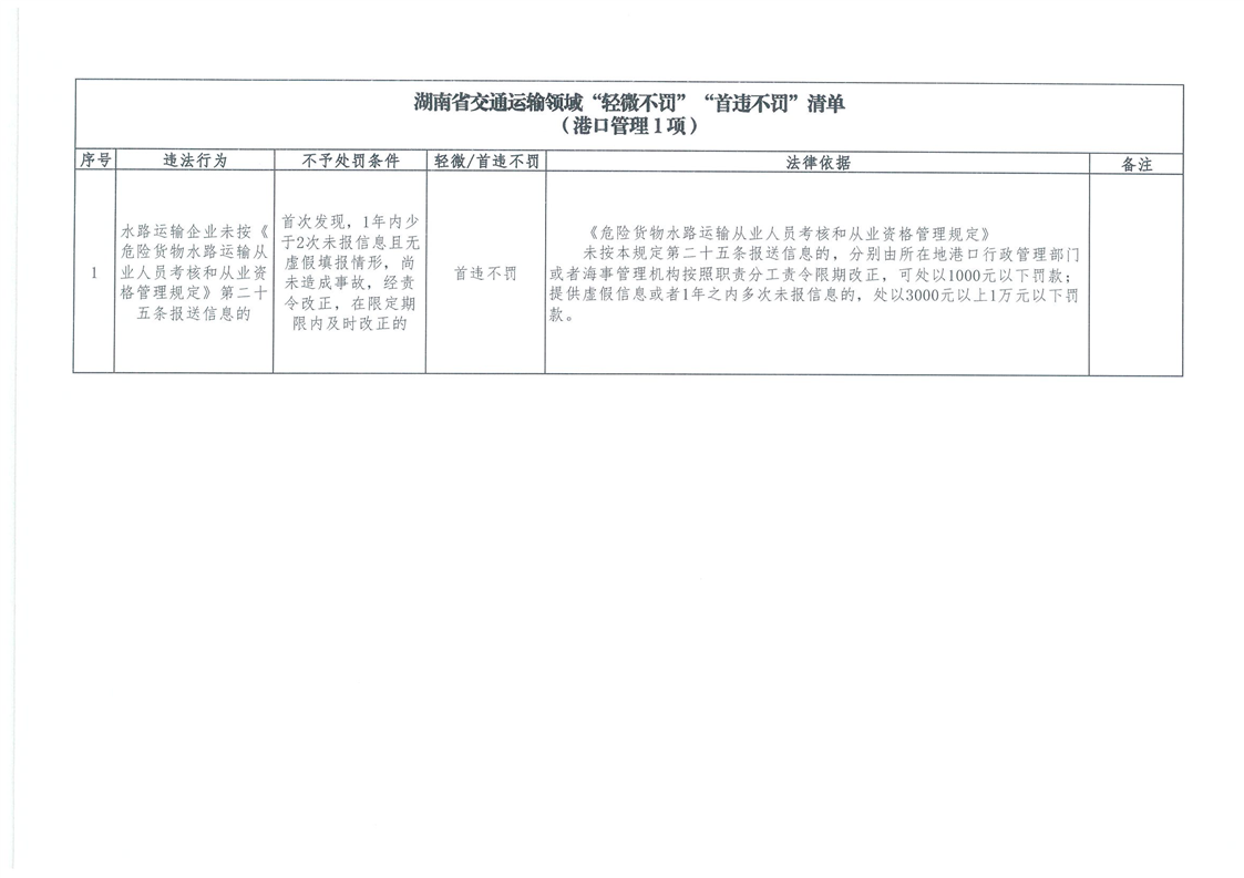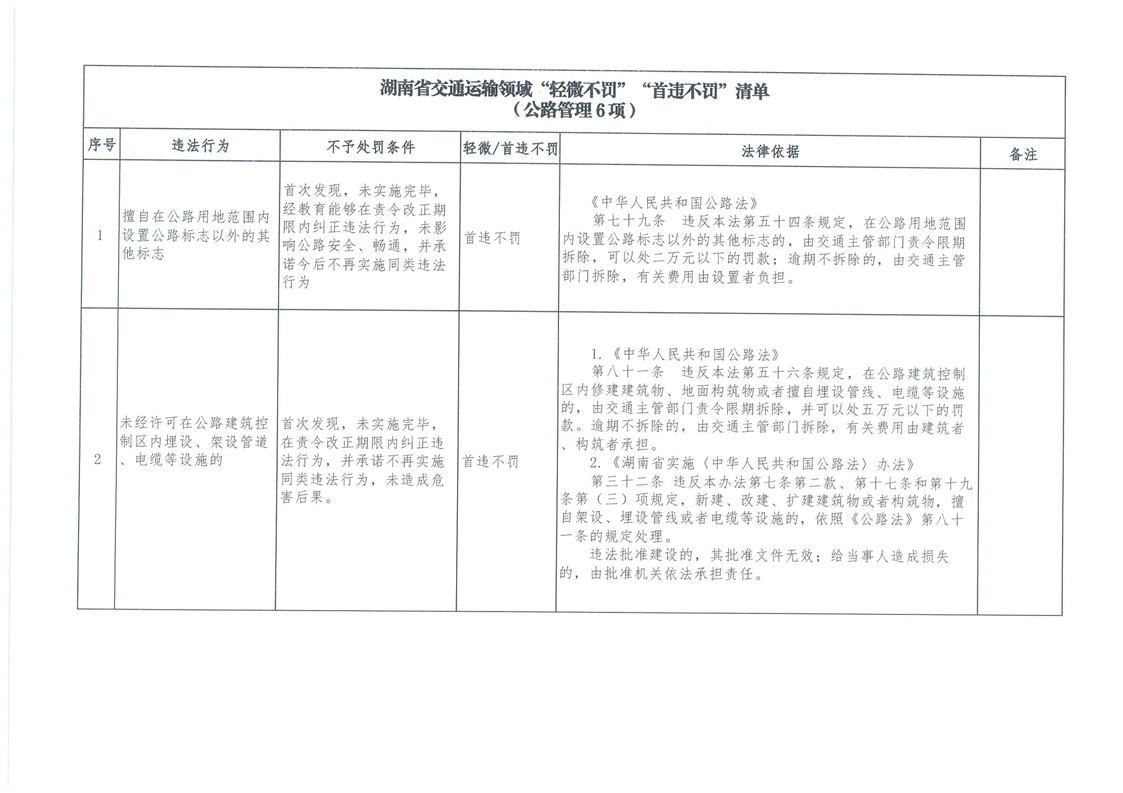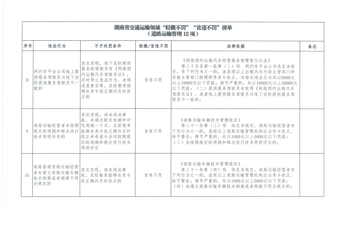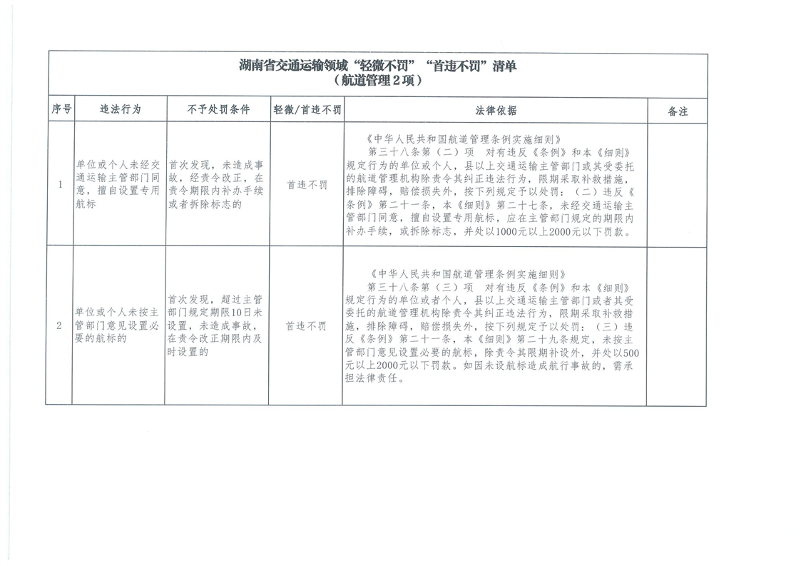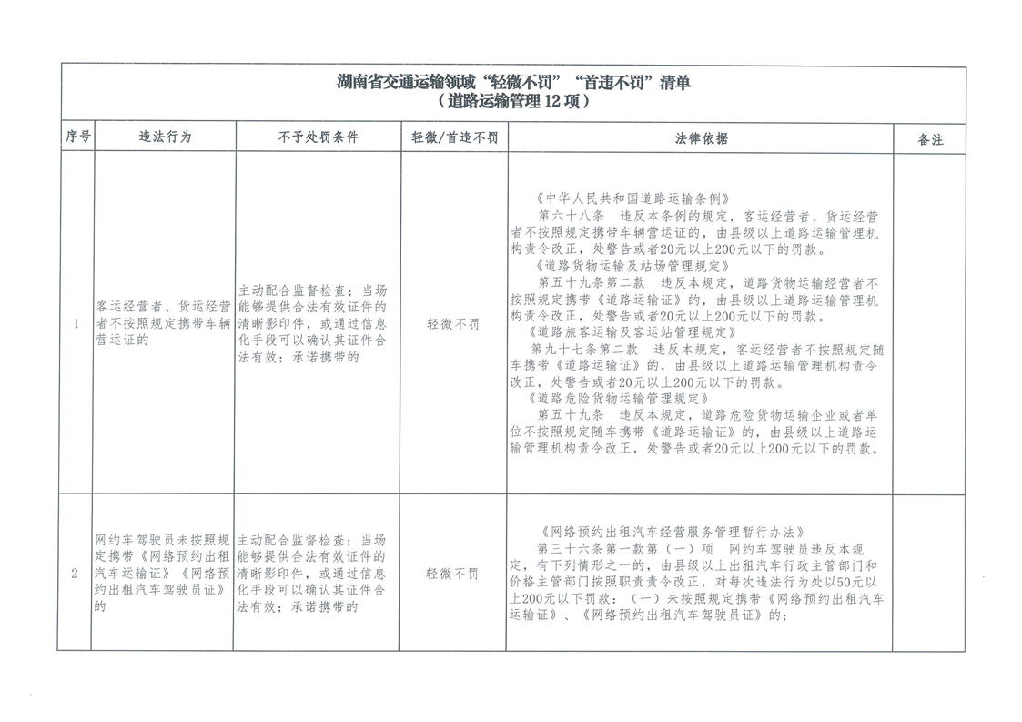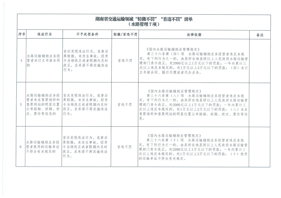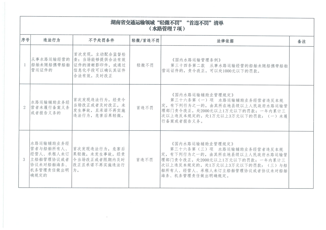 关于印发《湖南省交通运输领域“轻微不罚”“首违不罚”清单》的通知