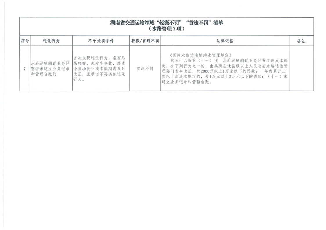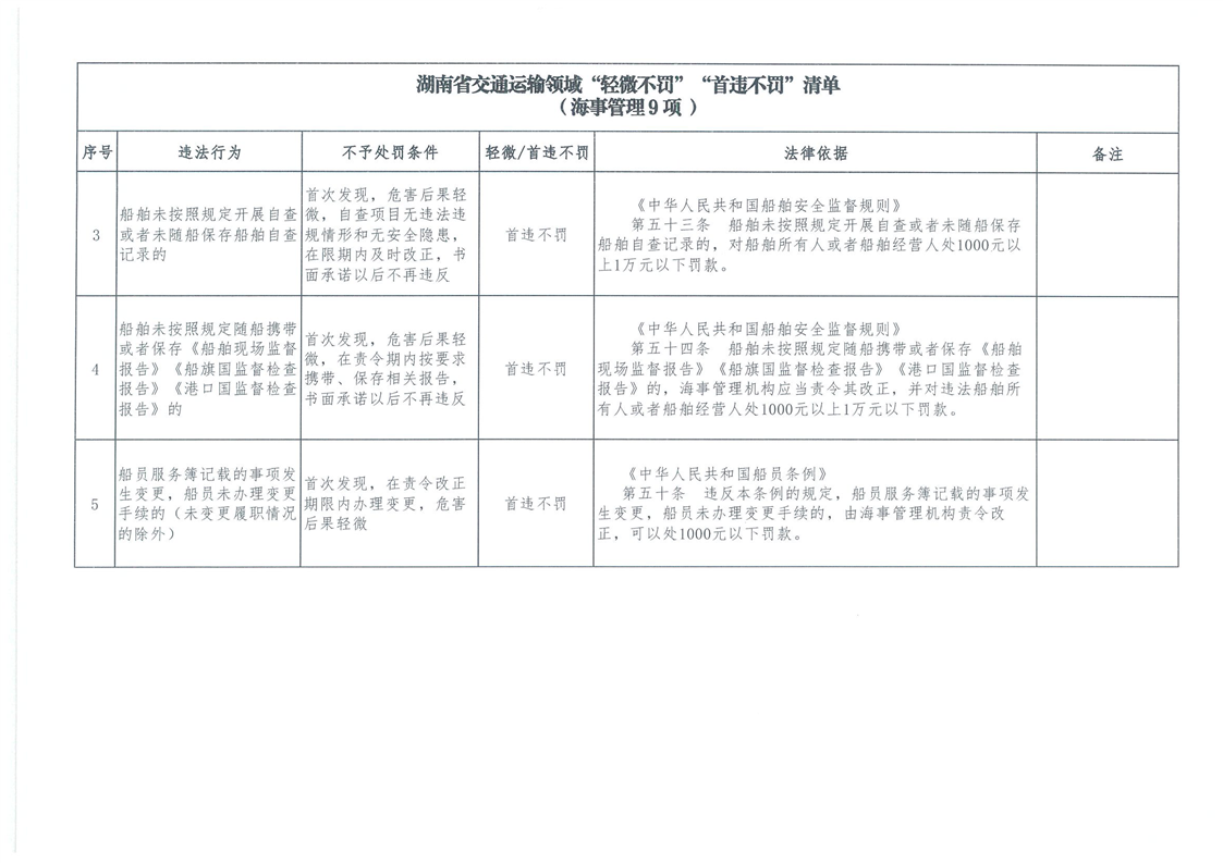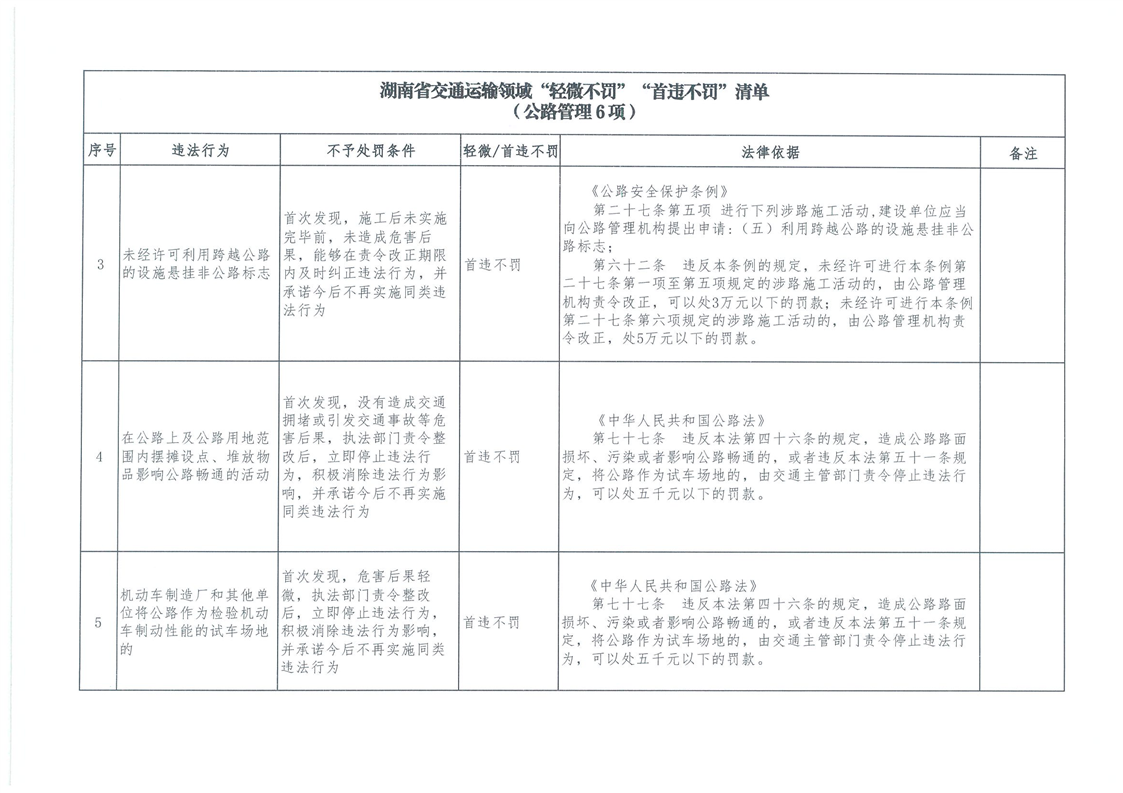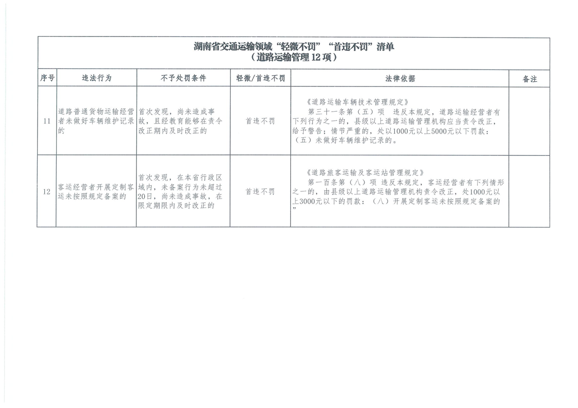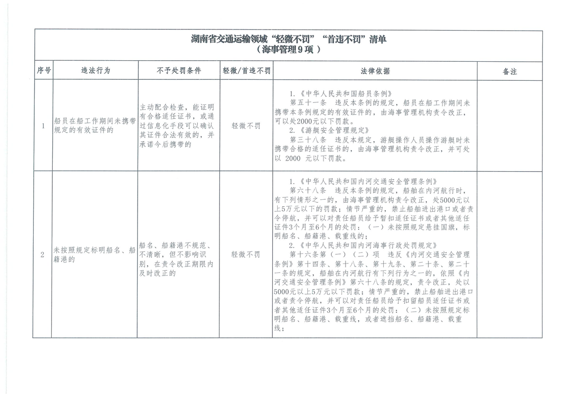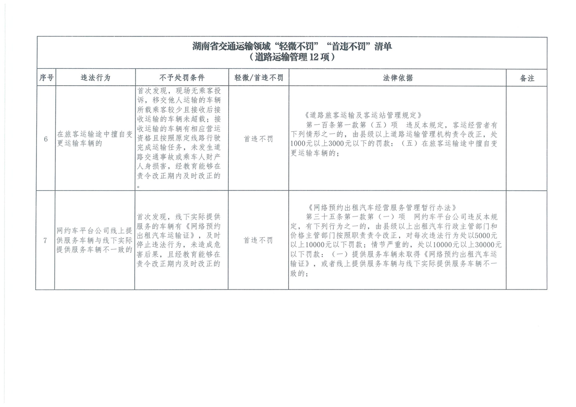 关于印发《湖南省交通运输领域“轻微不罚”“首违不罚”清单》的通知