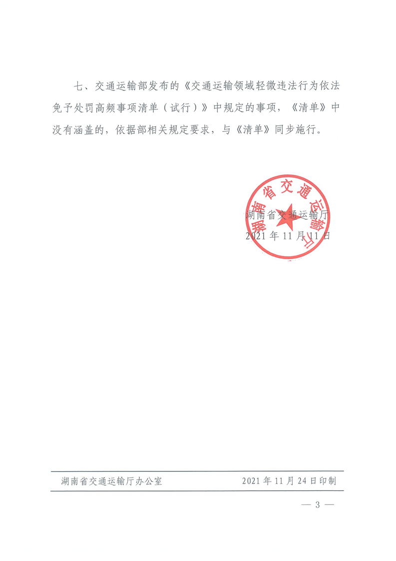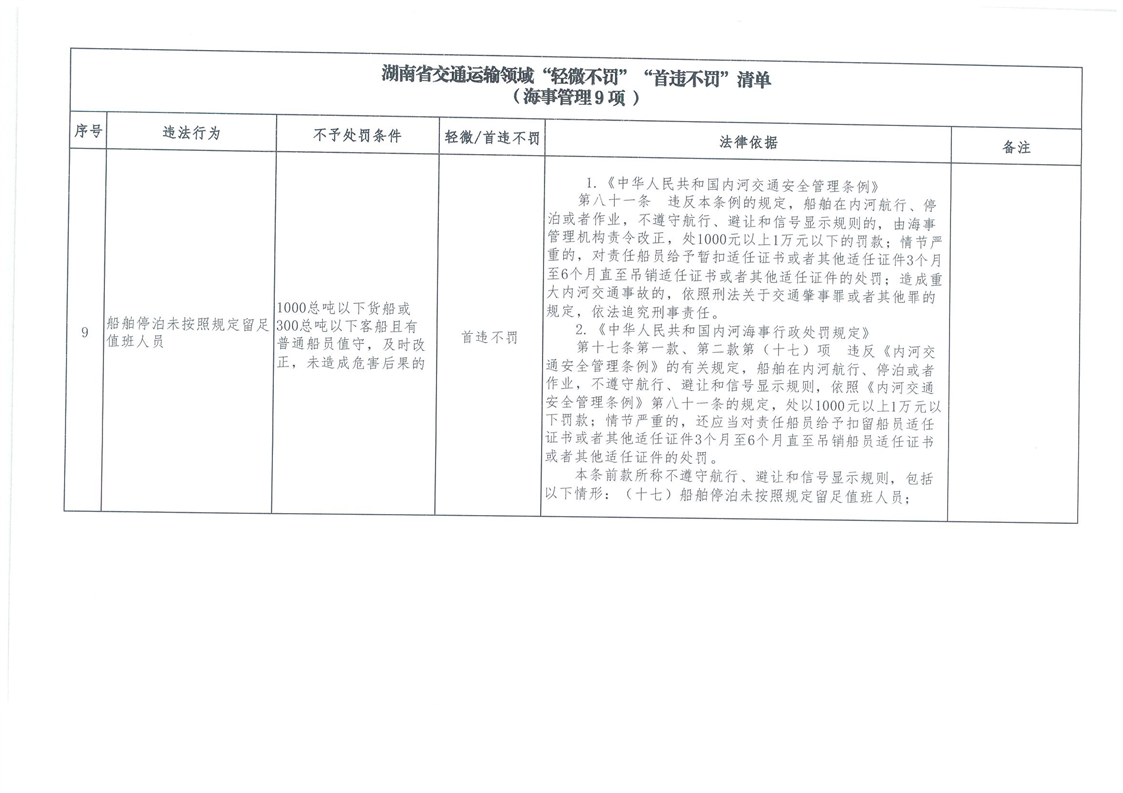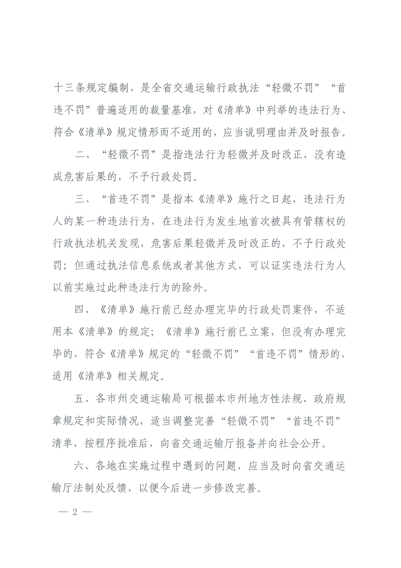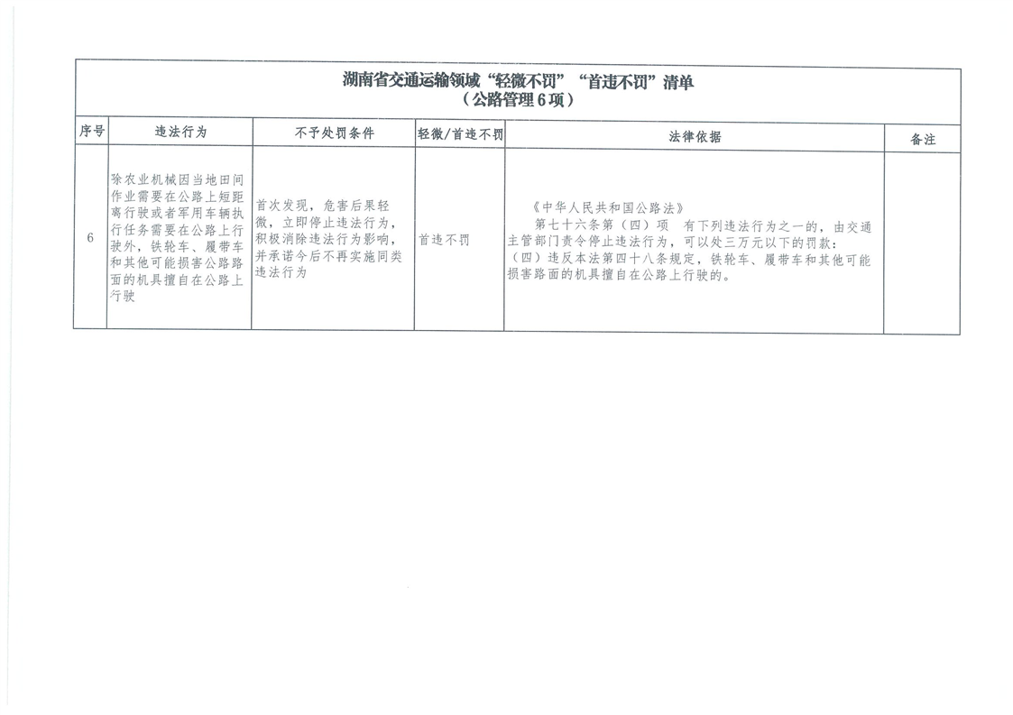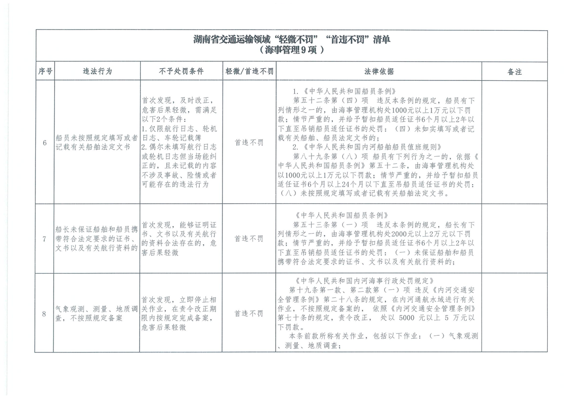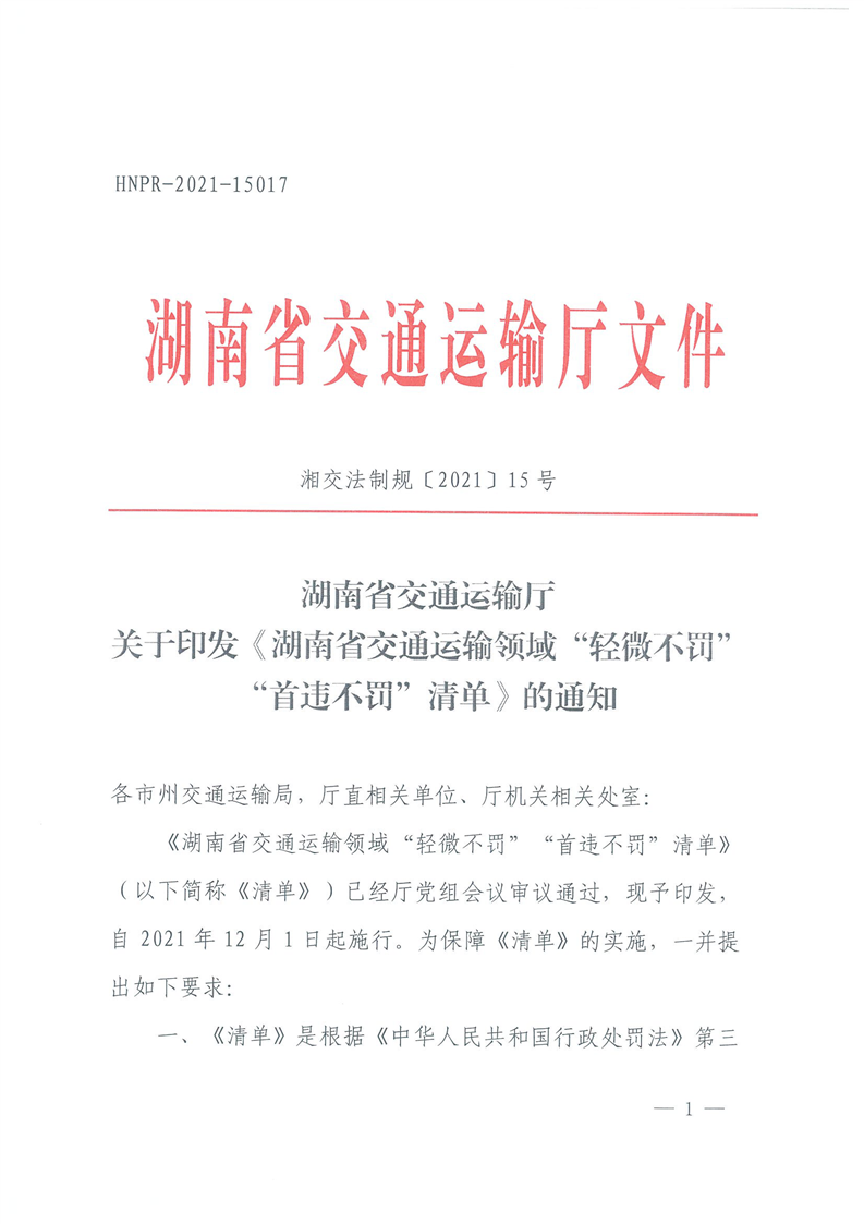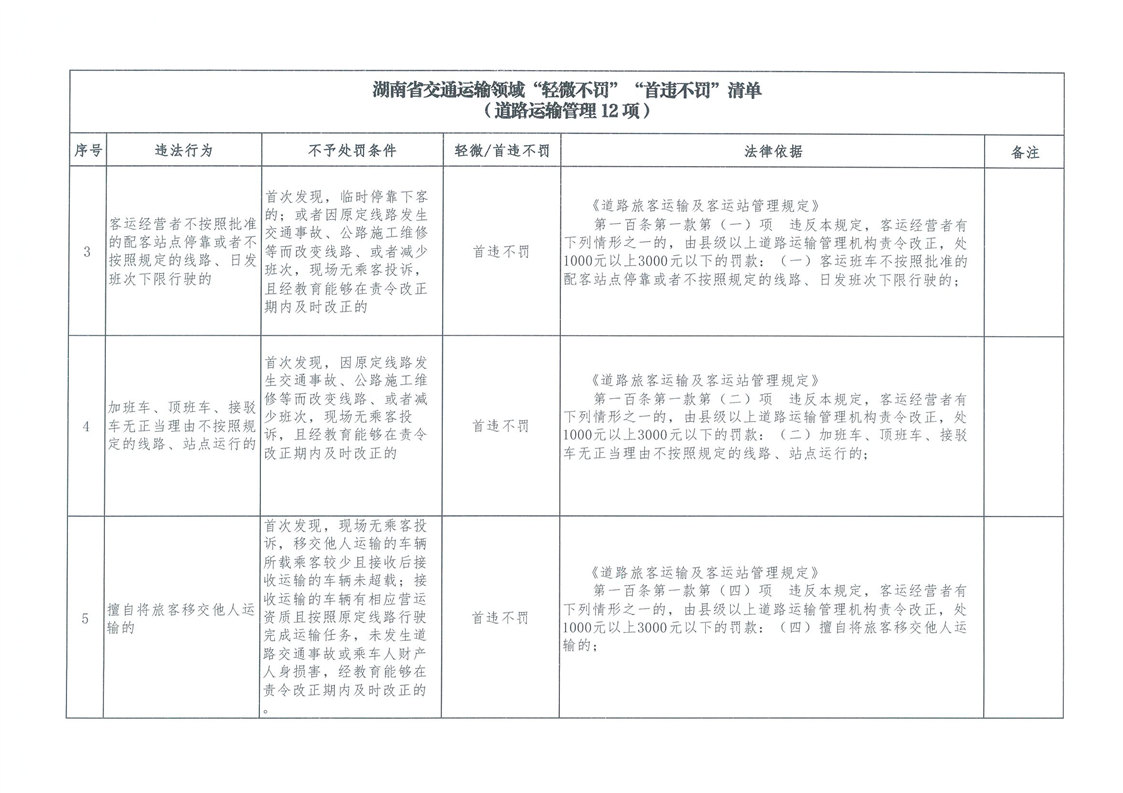 关于印发《湖南省交通运输领域“轻微不罚”“首违不罚”清单》的通知