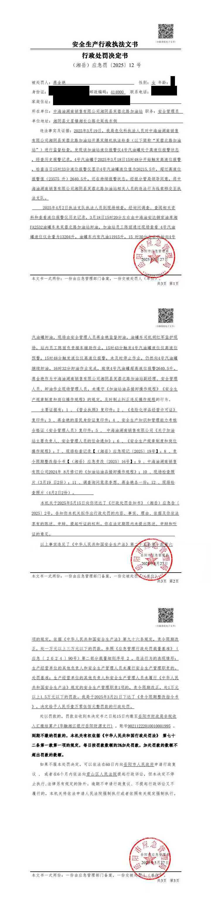 蒋金艳处罚决定书