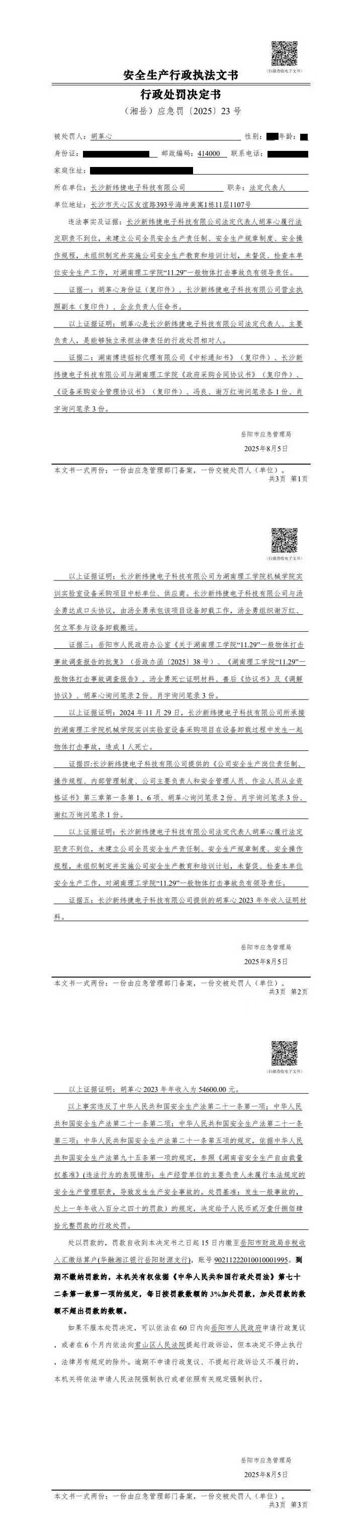 胡革心处罚决定书